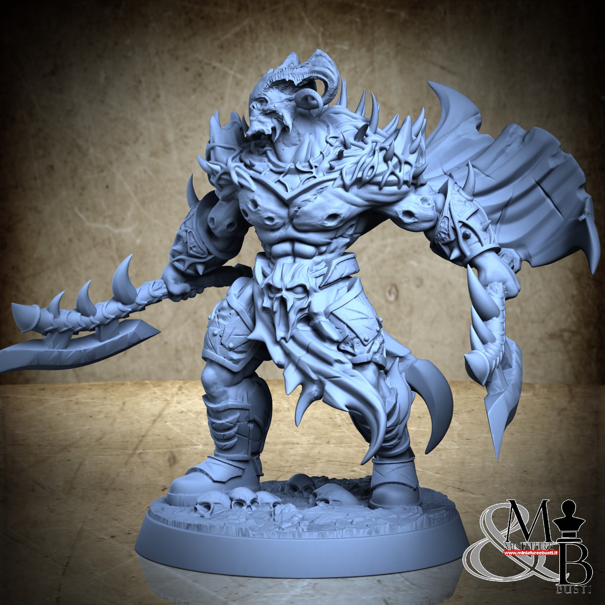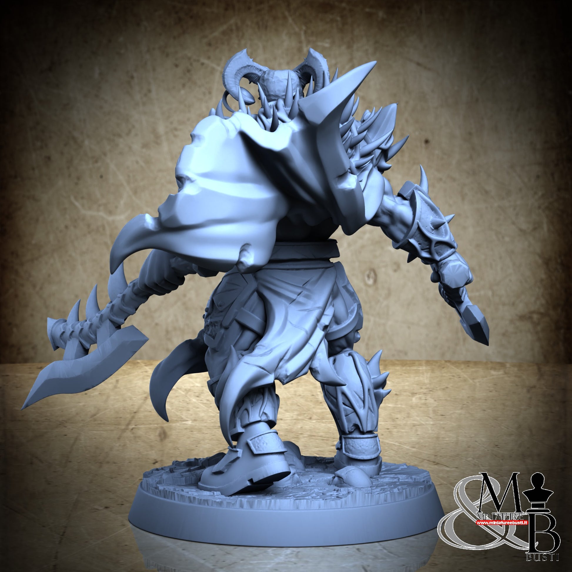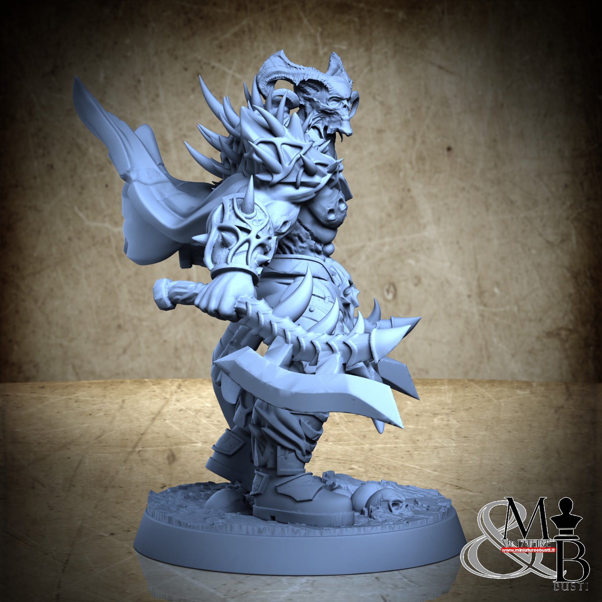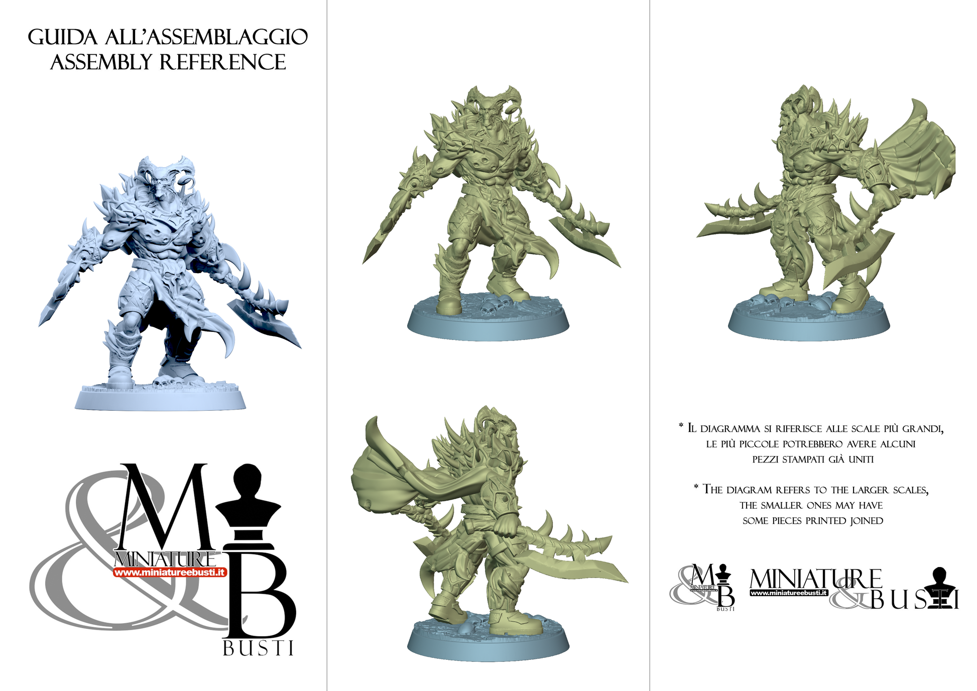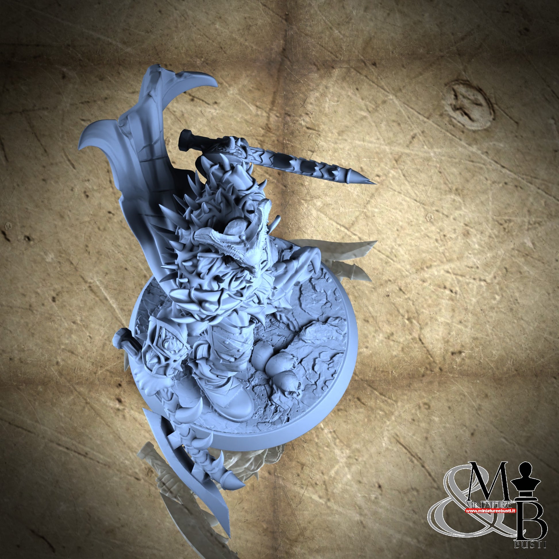 Questa è una MINIATURA. Le miniatura sono modelli pensati per i giochi di ruolo, ad esempio dungeons & Dragons, che poi ridimensioniamo in alto o in basso per le differenti scale. Di solito sono originariamente scolpiti per sistemi a 32mm (dove un uomo standard è alto 32mm dai piedi alla testa). Le proporzioni sono pensate tenendo in considerazione che verranno maneggiate spesso, quindi dettagli come spade e scudi sono particolarmente spessi. La miniatura viene venduta come appare nell'immagine, e dato che alcuni autori non aggiungono una base, se questa è assente nell'immagine significa che non verrà fornita con la miniatura.