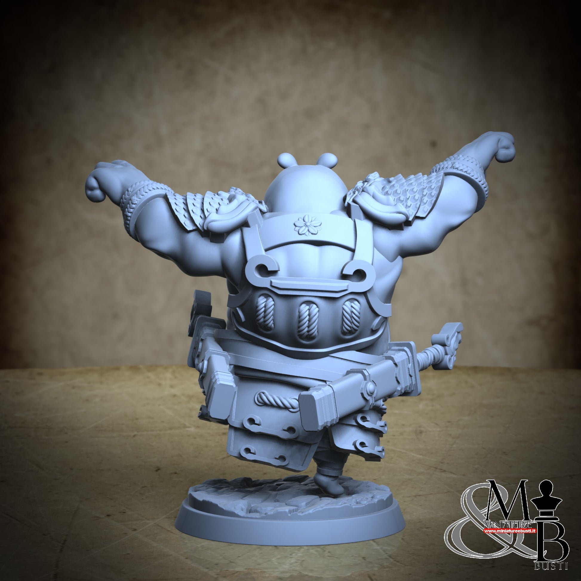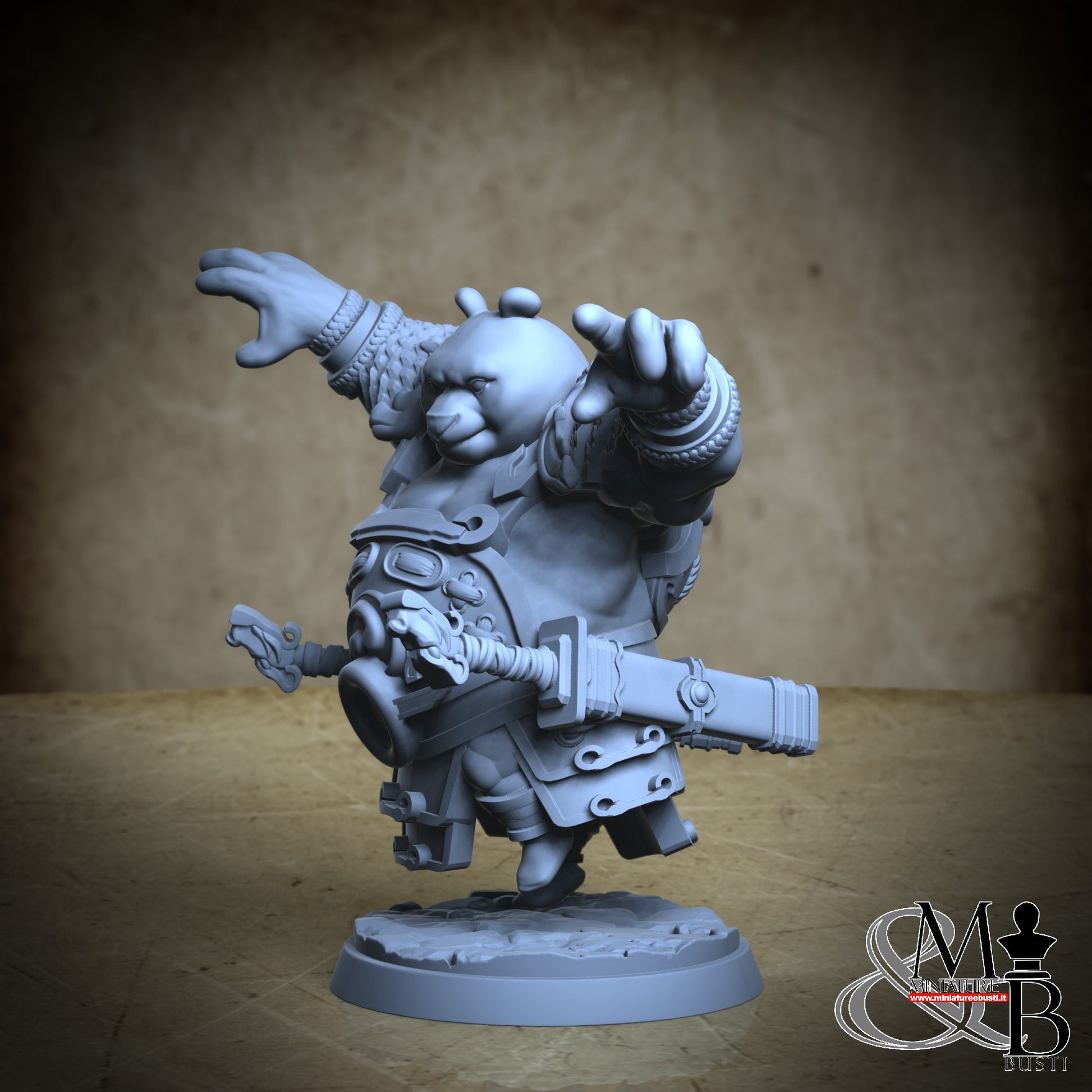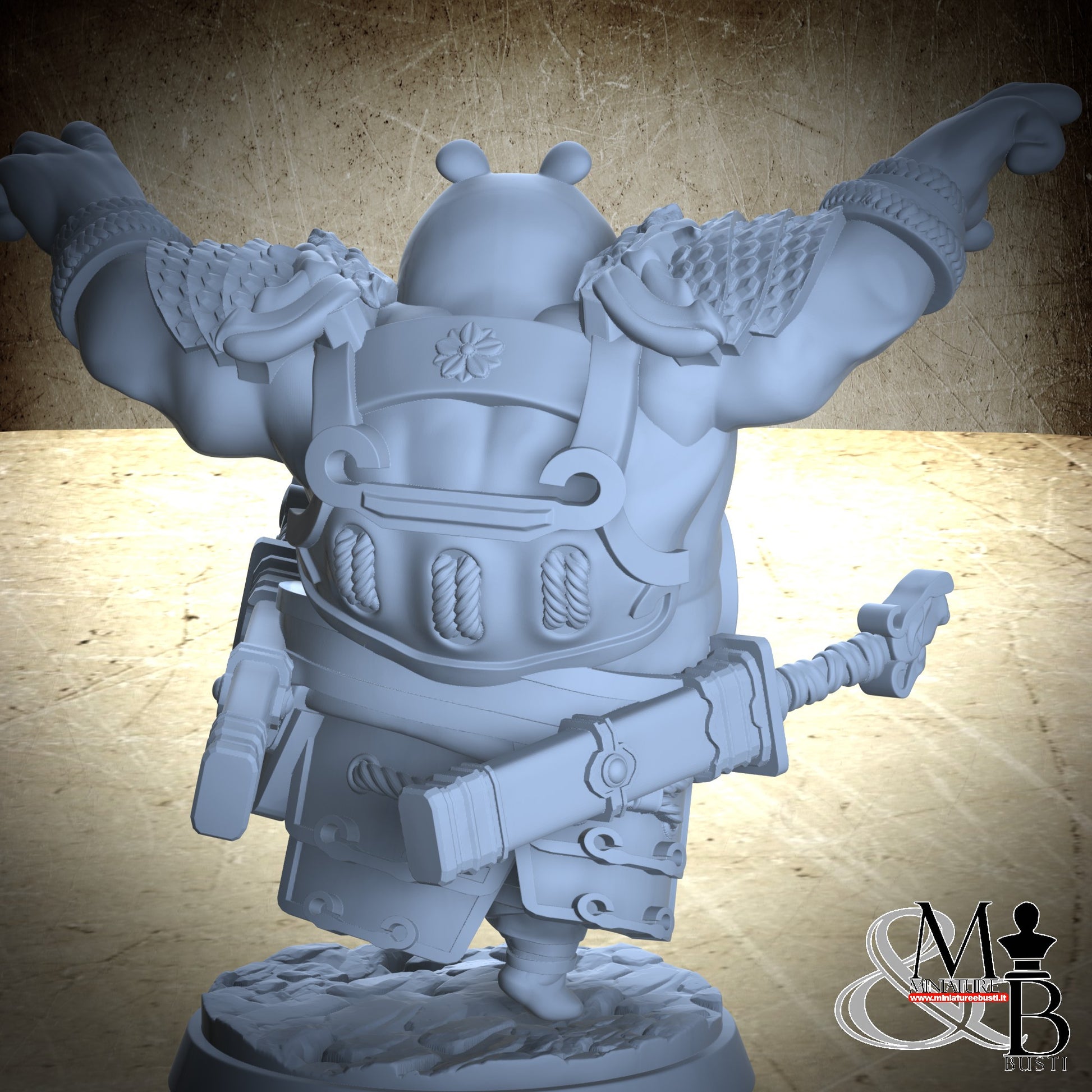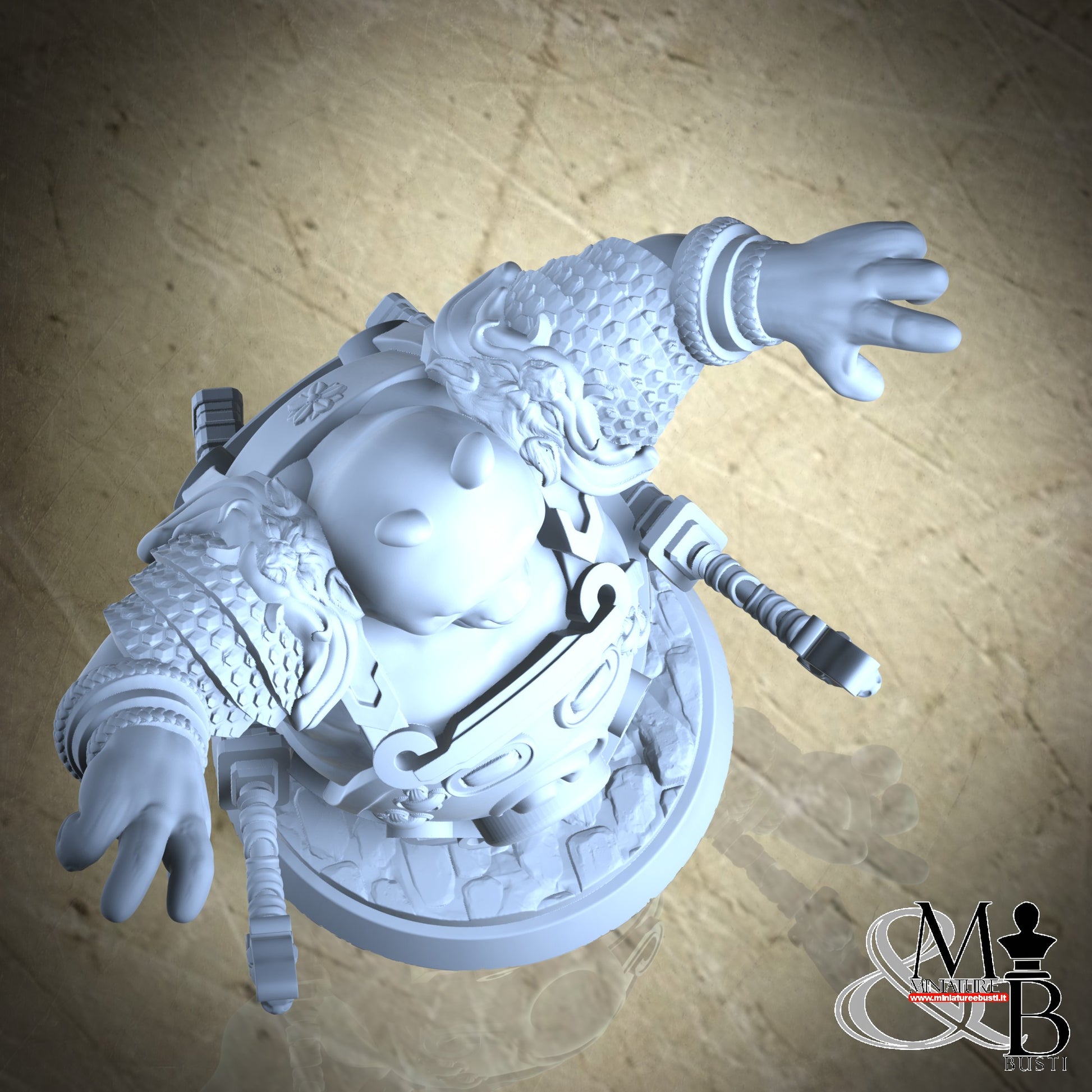 Questa è una MINIATURA. Le miniatura sono modelli pensati per i giochi di ruolo, ad esempio dungeons & Dragons, che poi ridimensioniamo in alto o in basso per le differenti scale. Di solito sono originariamente scolpiti per sistemi a 32mm (dove un uomo standard è alto 32mm dai piedi alla testa). Le proporzioni sono pensate tenendo in considerazione che verranno maneggiate spesso, quindi dettagli come spade e scudi sono particolarmente spessi. La miniatura viene venduta come appare nell'immagine, e dato che alcuni autori non aggiungono una base, se questa è assente nell'immagine significa che non verrà fornita con la miniatura.
