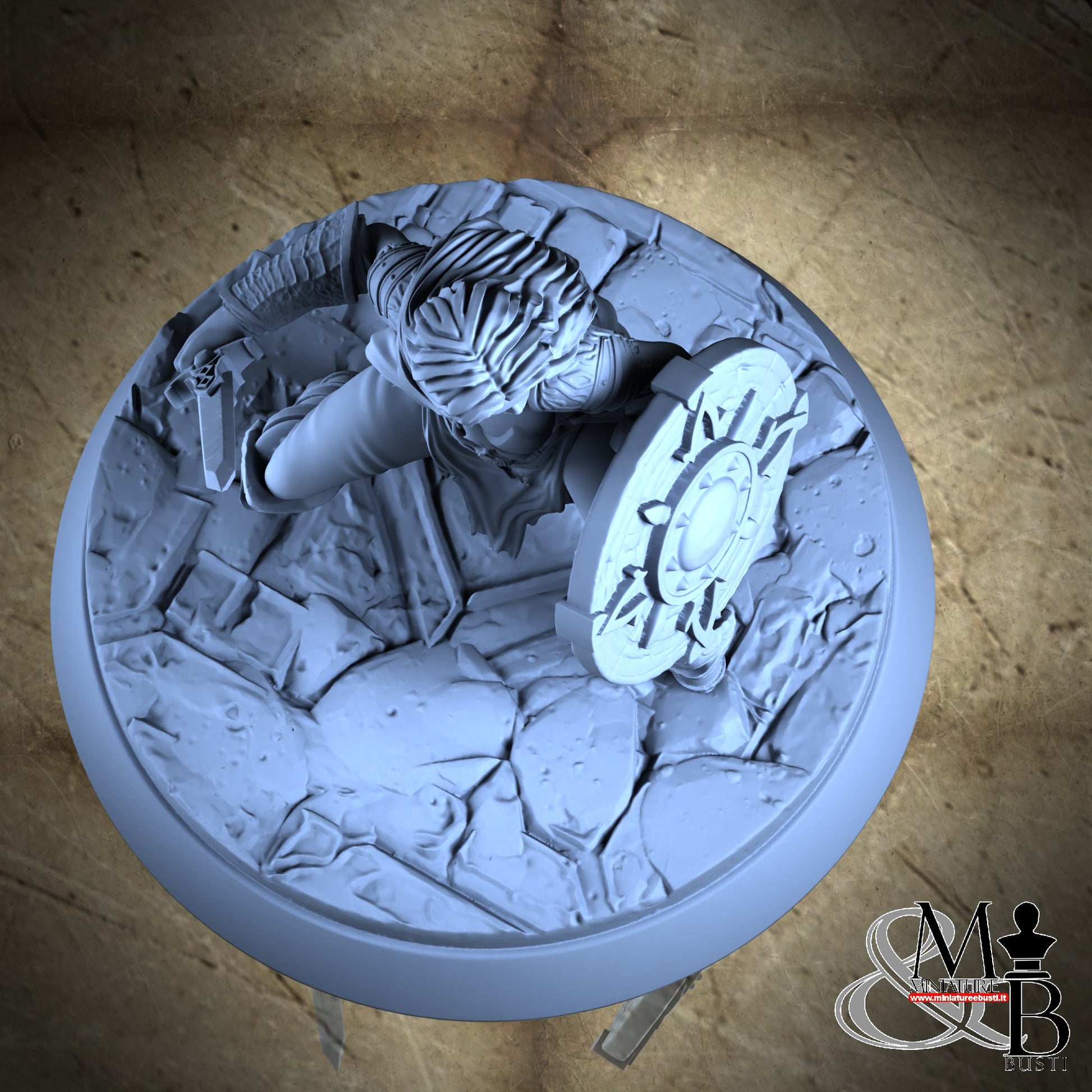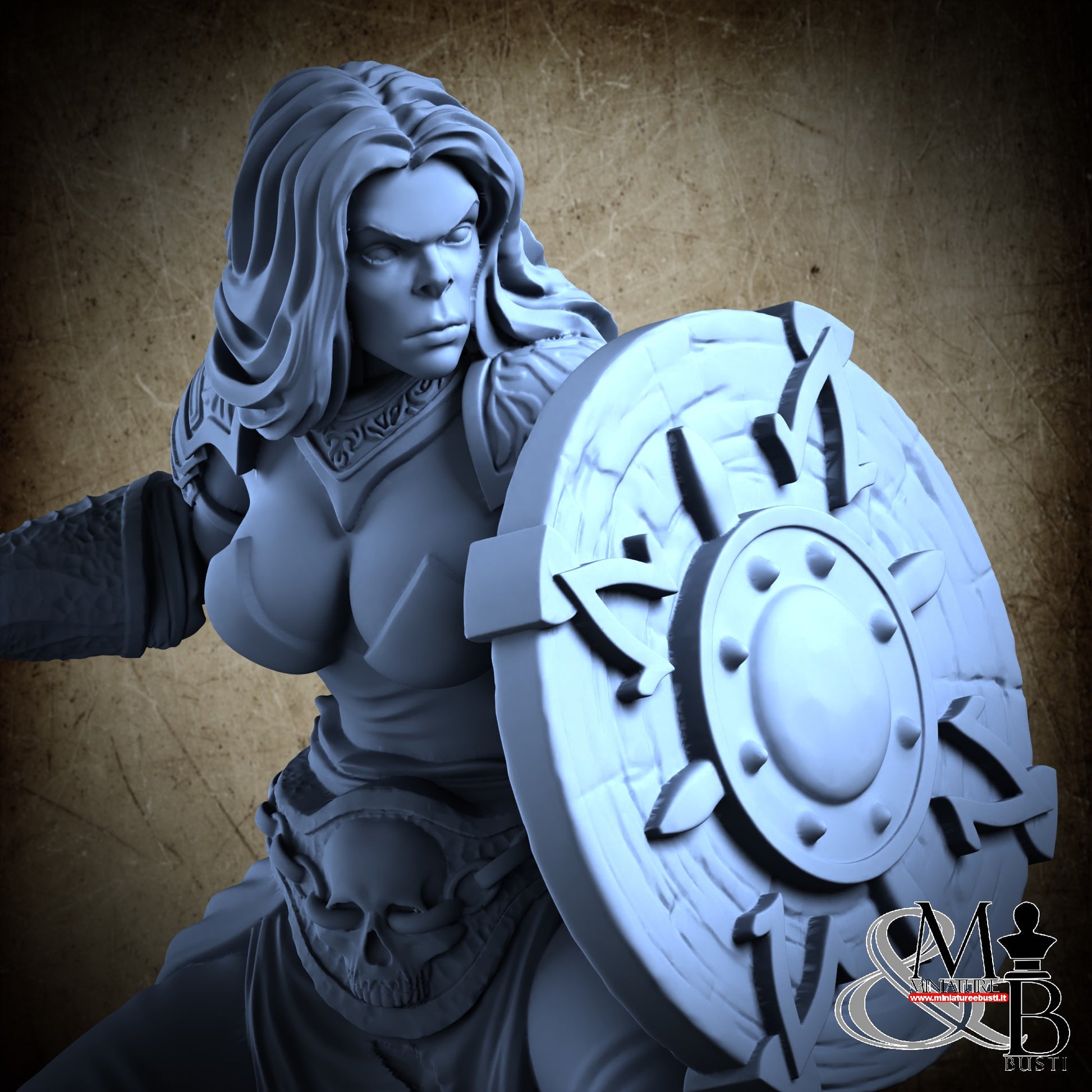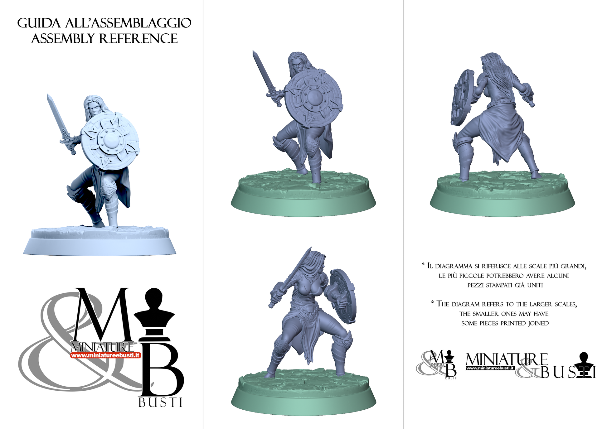 Questa è una MINIATURA. Le miniatura sono modelli pensati per i giochi di ruolo, ad esempio dungeons & Dragons, che poi ridimensioniamo in alto o in basso per le differenti scale. Di solito sono originariamente scolpiti per sistemi a 32mm (dove un uomo standard è alto 32mm dai piedi alla testa). Le proporzioni sono pensate tenendo in considerazione che verranno maneggiate spesso, quindi dettagli come spade e scudi sono particolarmente spessi. La miniatura viene venduta come appare nell'immagine, e dato che alcuni autori non aggiungono una base, se questa è assente nell'immagine significa che non verrà fornita con la miniatura.