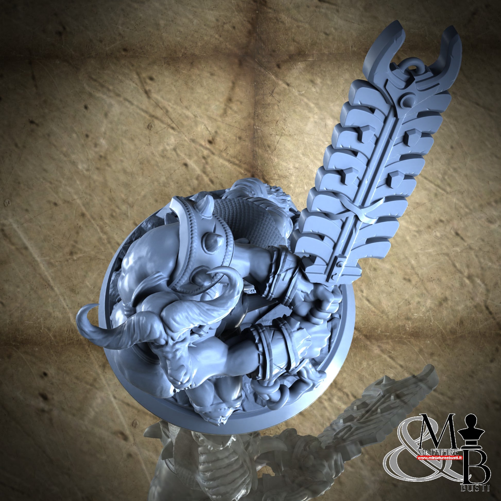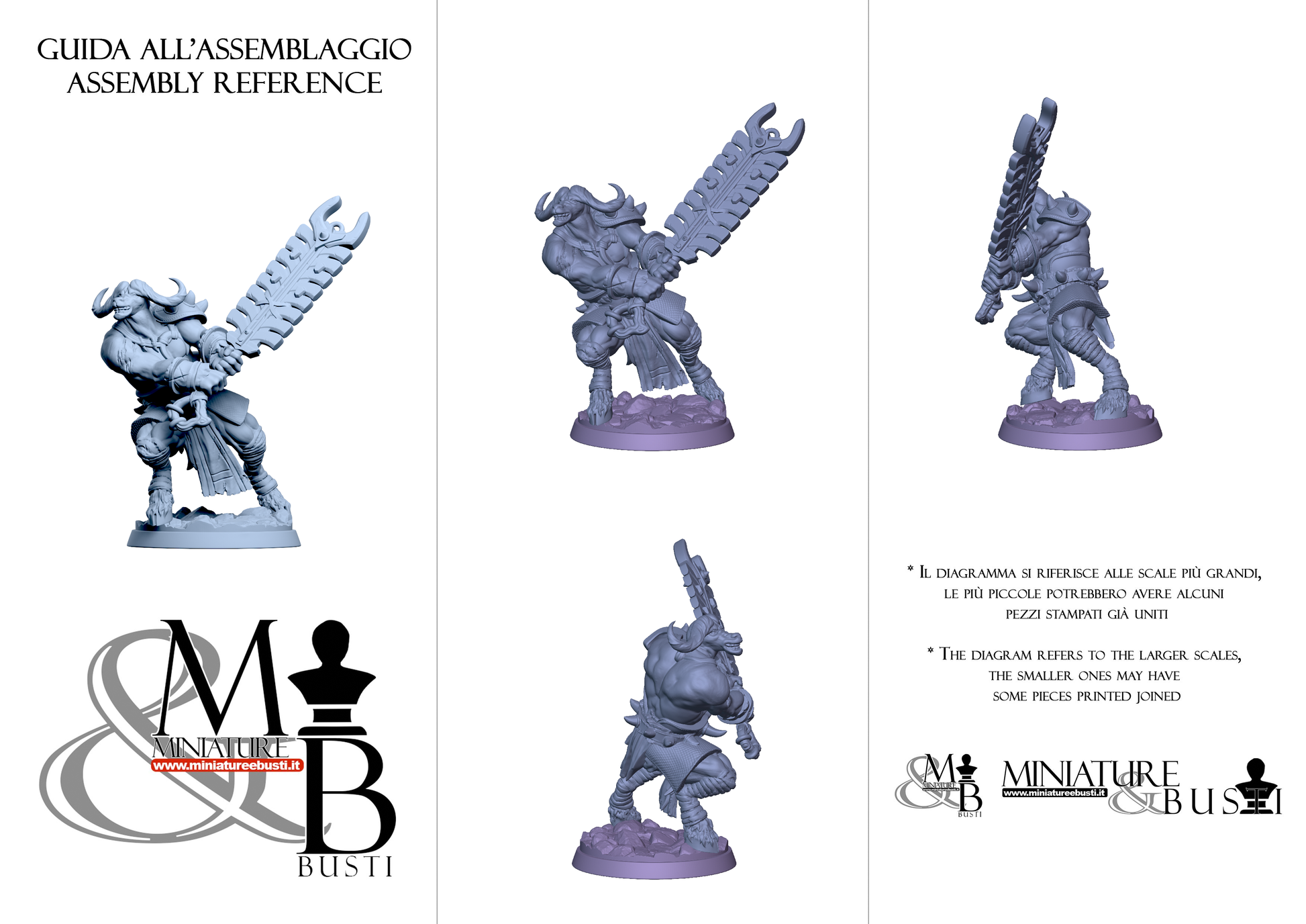 Questa è una MINIATURA. Le miniatura sono modelli pensati per i giochi di ruolo, ad esempio dungeons & Dragons, che poi ridimensioniamo in alto o in basso per le differenti scale. Di solito sono originariamente scolpiti per sistemi a 32mm (dove un uomo standard è alto 32mm dai piedi alla testa). Le proporzioni sono pensate tenendo in considerazione che verranno maneggiate spesso, quindi dettagli come spade e scudi sono particolarmente spessi. La miniatura viene venduta come appare nell'immagine, e dato che alcuni autori non aggiungono una base, se questa è assente nell'immagine significa che non verrà fornita con la miniatura.