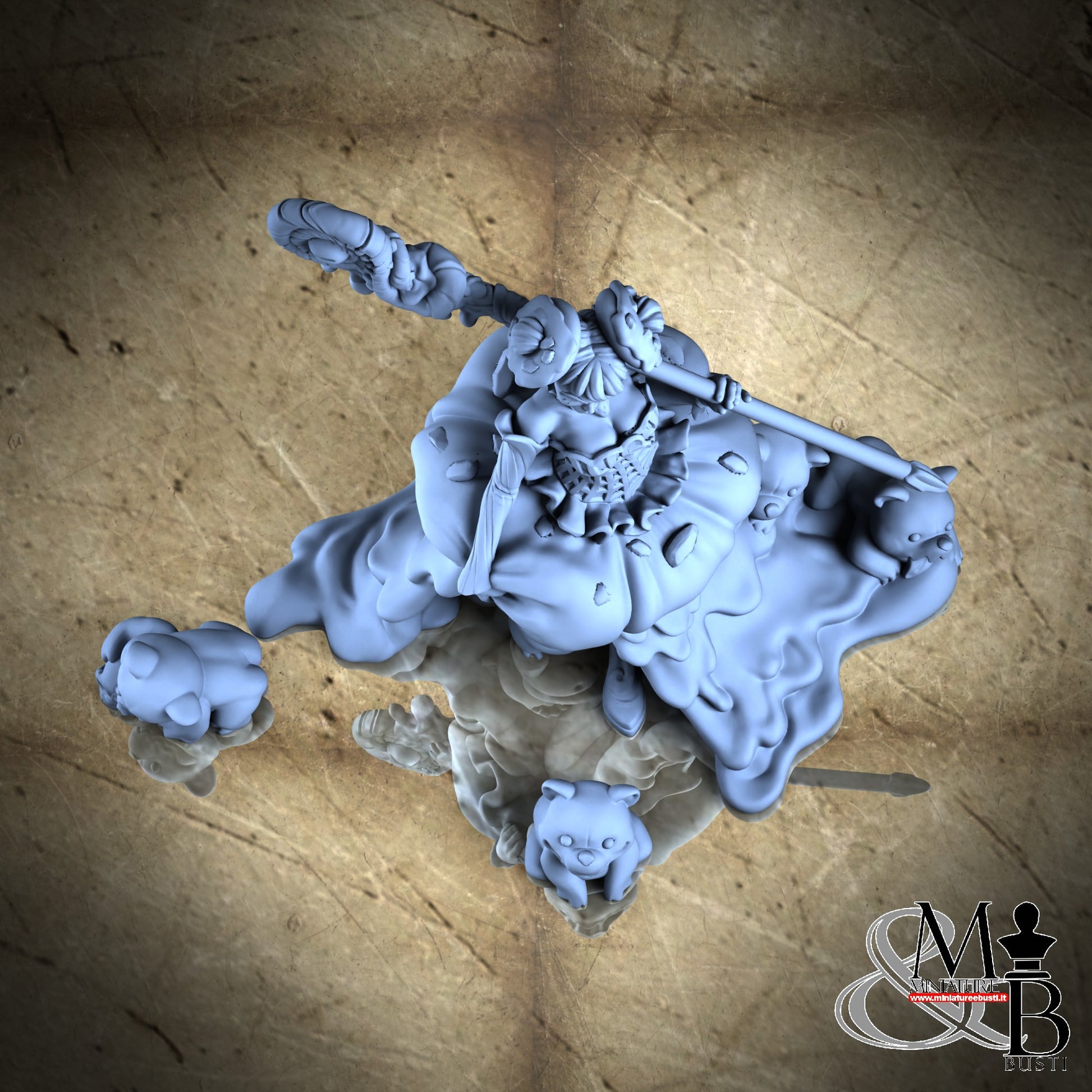 Questa è una MINIATURA. Le miniatura sono modelli pensati per i giochi di ruolo, ad esempio dungeons & Dragons, che poi ridimensioniamo in alto o in basso per le differenti scale. Di solito sono originariamente scolpiti per sistemi a 32mm (dove un uomo standard è alto 32mm dai piedi alla testa). Le proporzioni sono pensate tenendo in considerazione che verranno maneggiate spesso, quindi dettagli come spade e scudi sono particolarmente spessi. La miniatura viene venduta come appare nell'immagine, e dato che alcuni autori non aggiungono una base, se questa è assente nell'immagine significa che non verrà fornita con la miniatura.