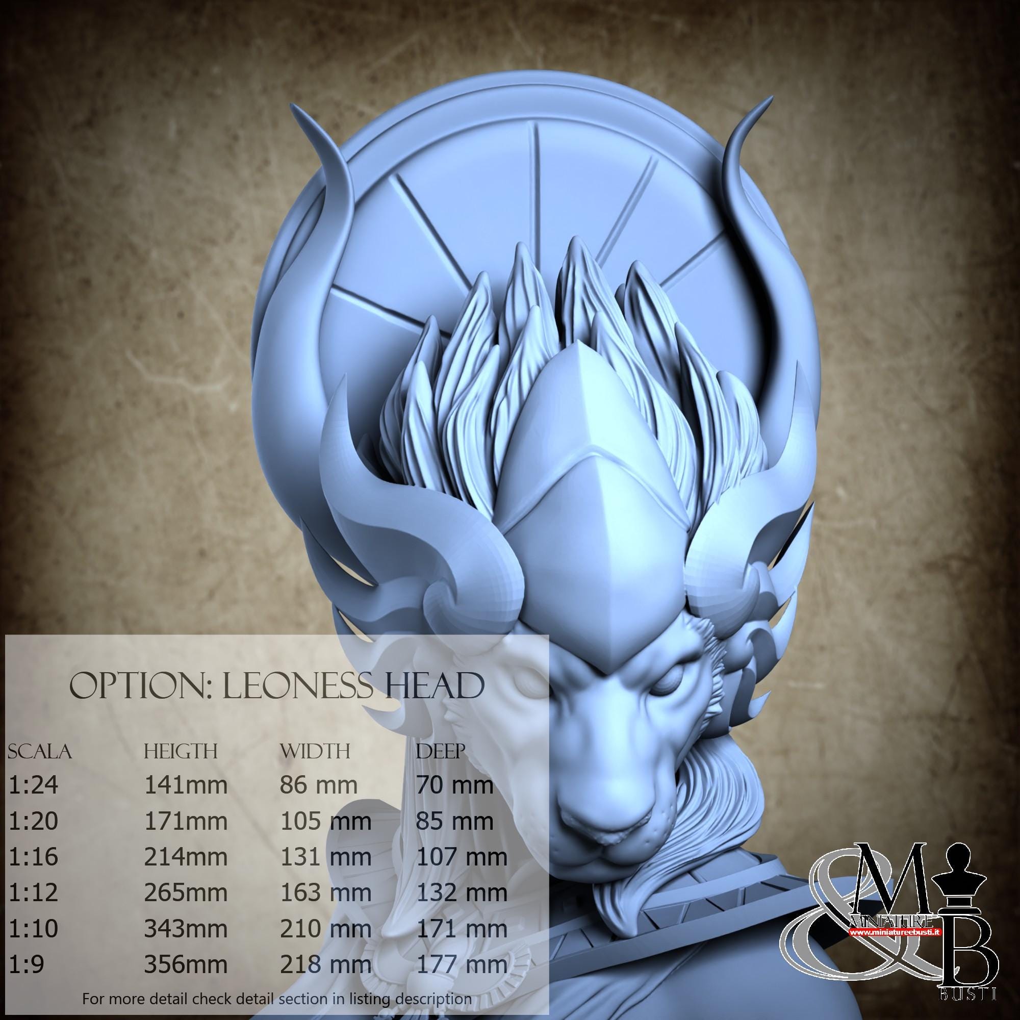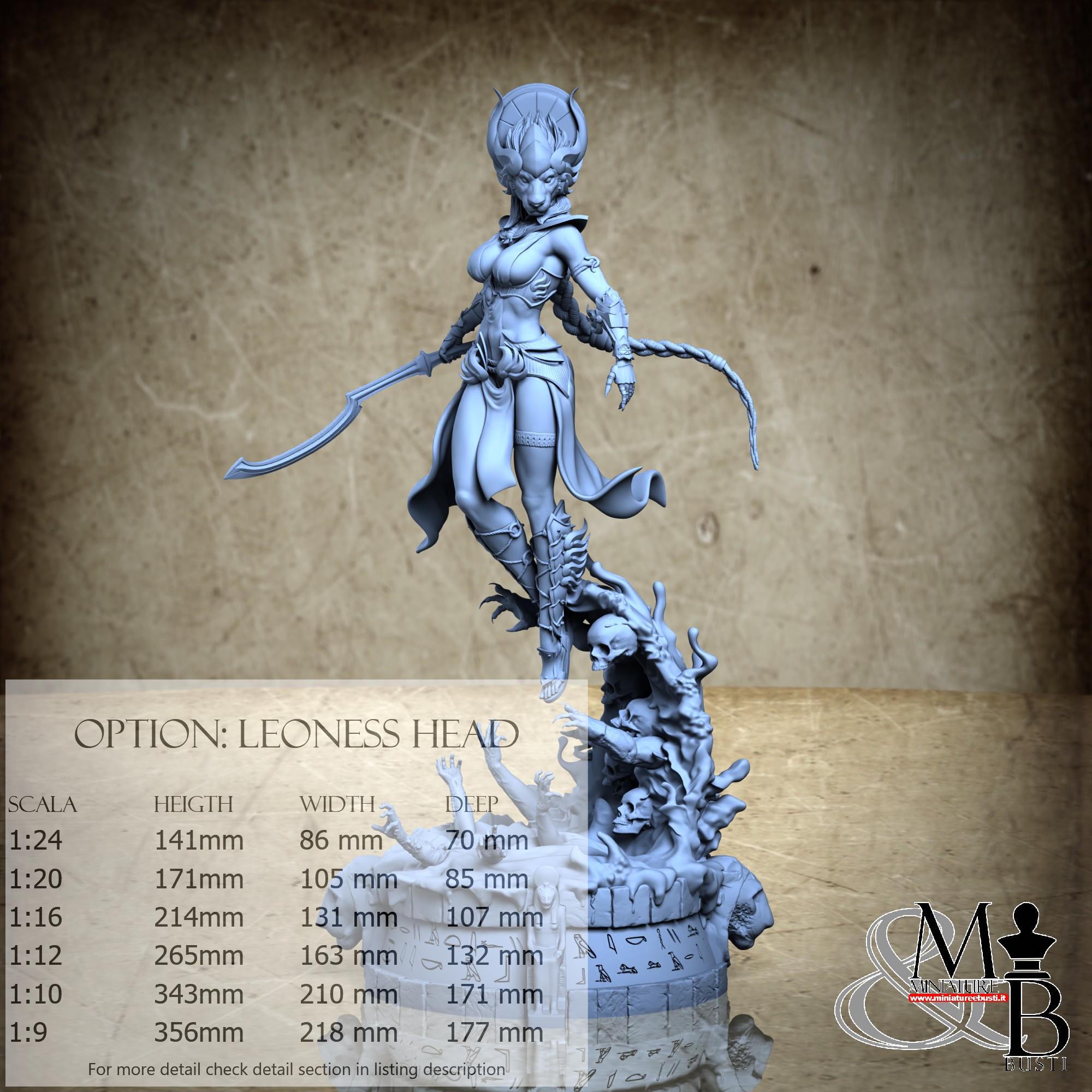 Variante Testa umana e leonina senza base, disponibile nelle seguenti scale e costi: