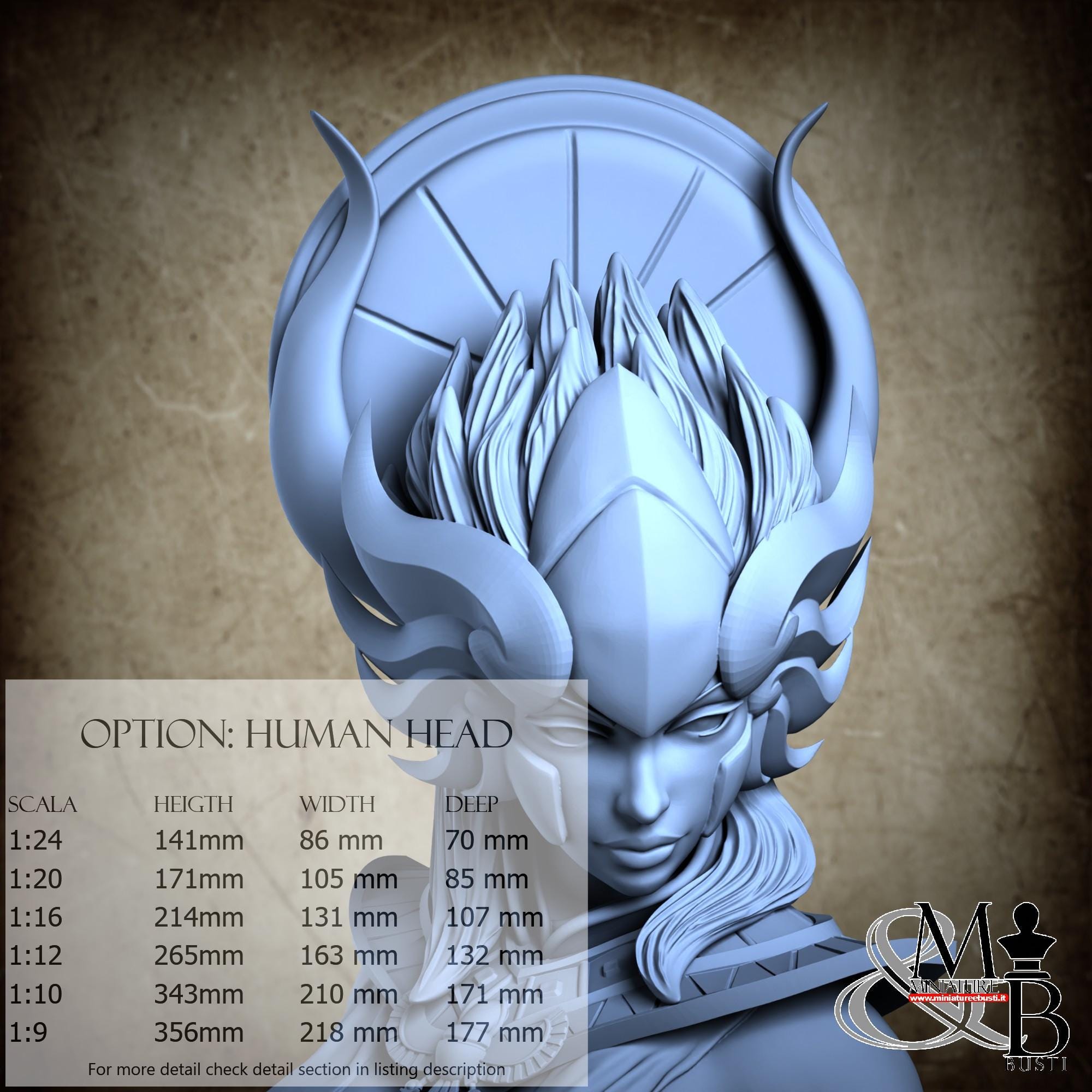 Variante Solo testa umana senza base, disponibile nelle seguenti scale e costi: