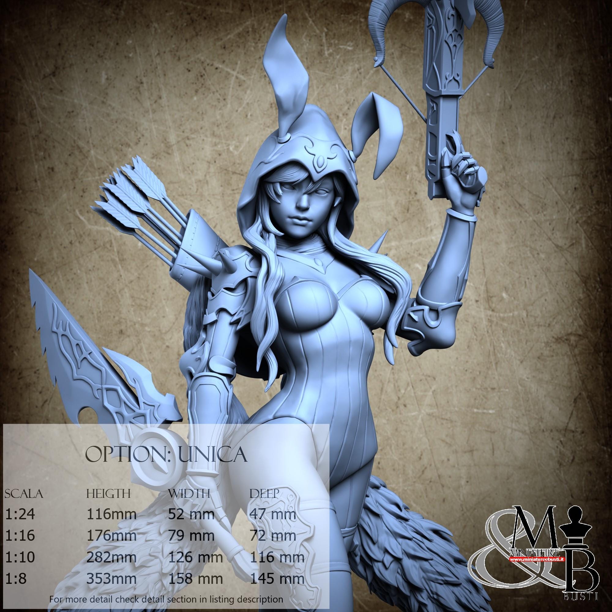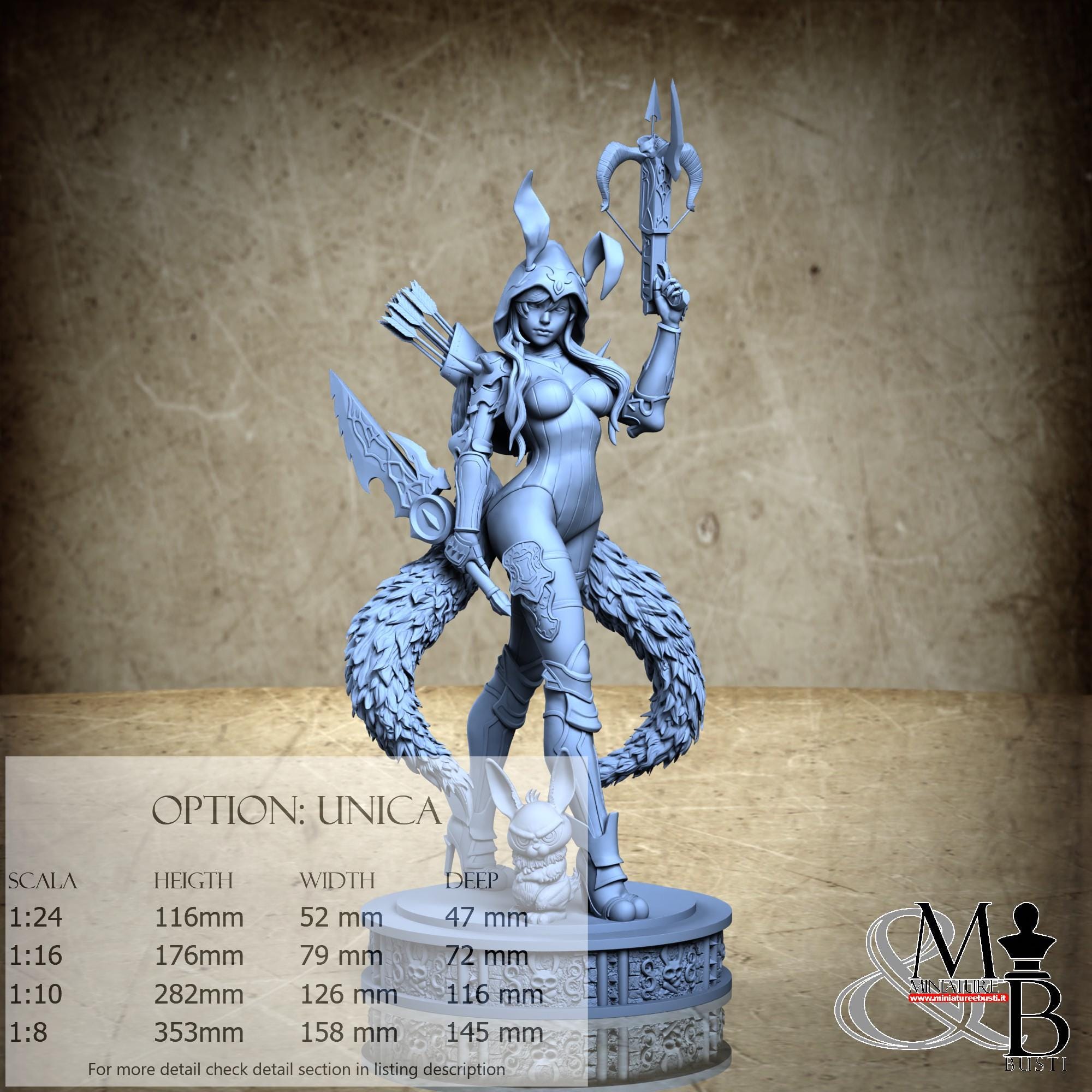 - Rabbit (1 piece) in Resin: Height: 22 mm, Width: 11 mm, Depth: 8 mm