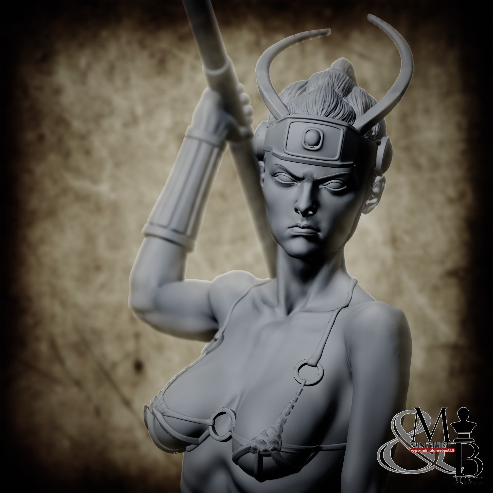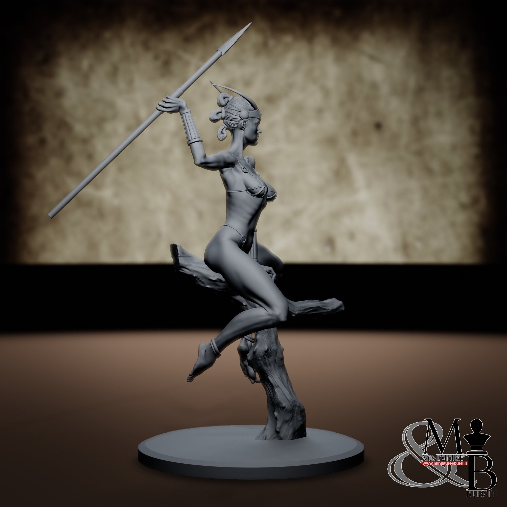 - Huntress (4 pieces) in Resin: Height: 145 mm, Width: 70 mm, Depth: 91 mm