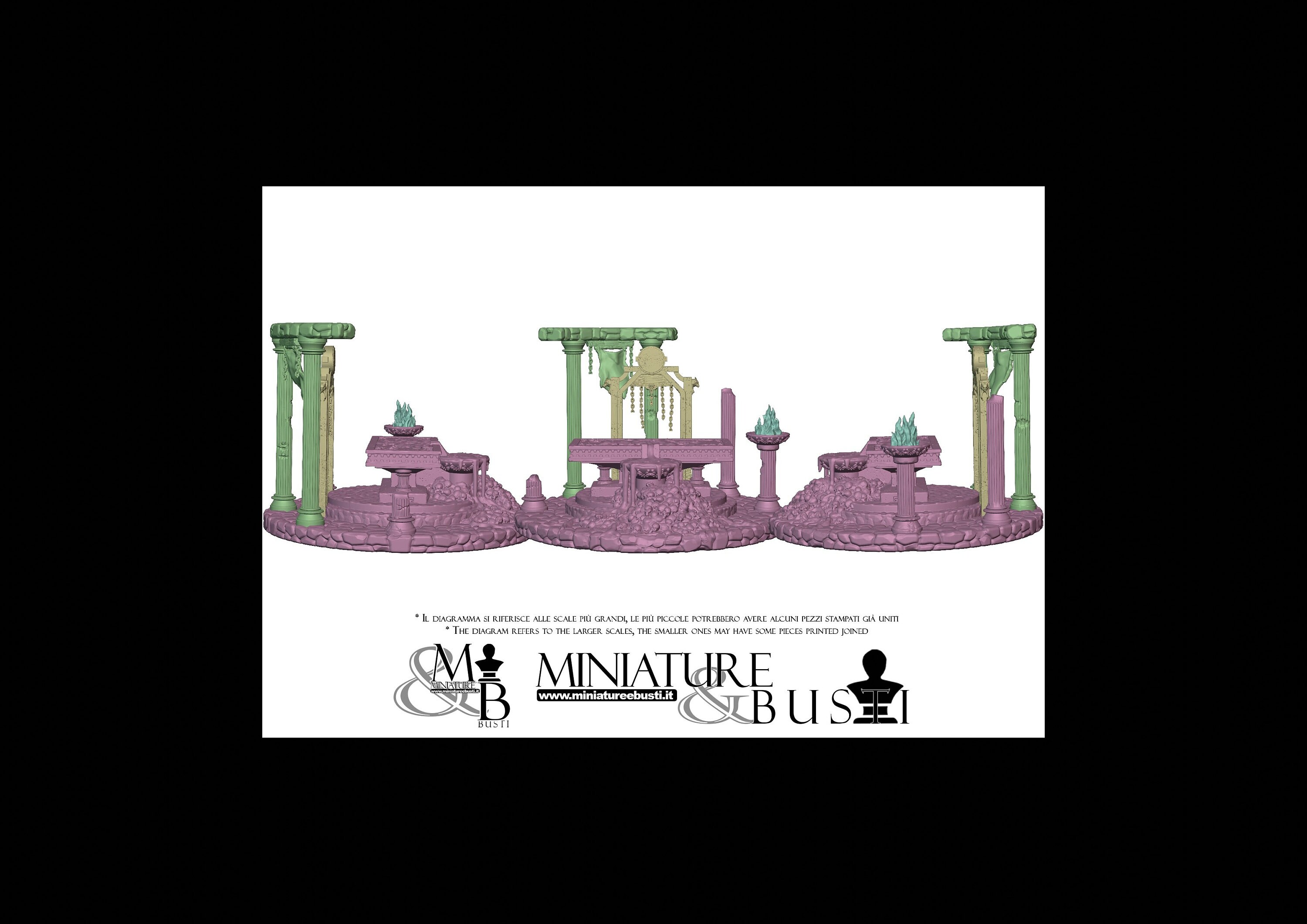 - Altar (4 pieces) in Resin: Height: 69 mm, Width: 96 mm, Depth: 95 mm