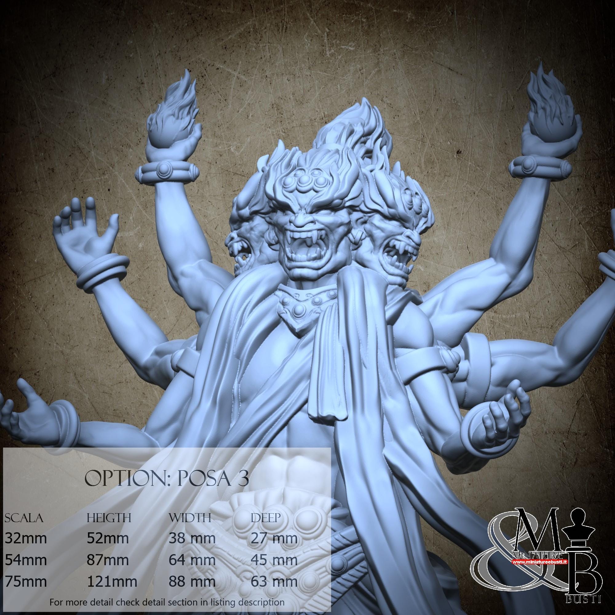 - Asura (1 piece) in Resin: Height: 52 mm, Width: 42 mm, Depth: 39 mm
