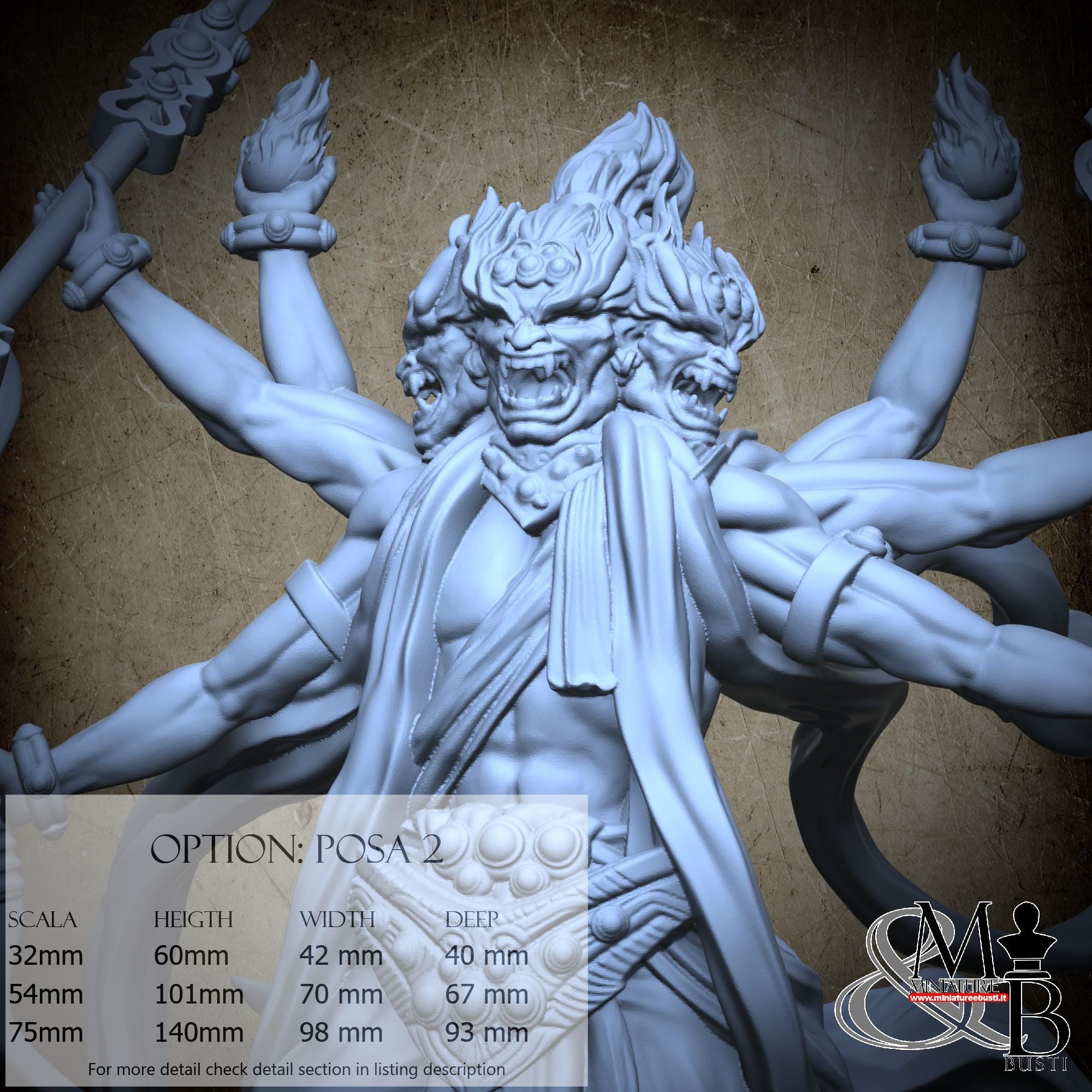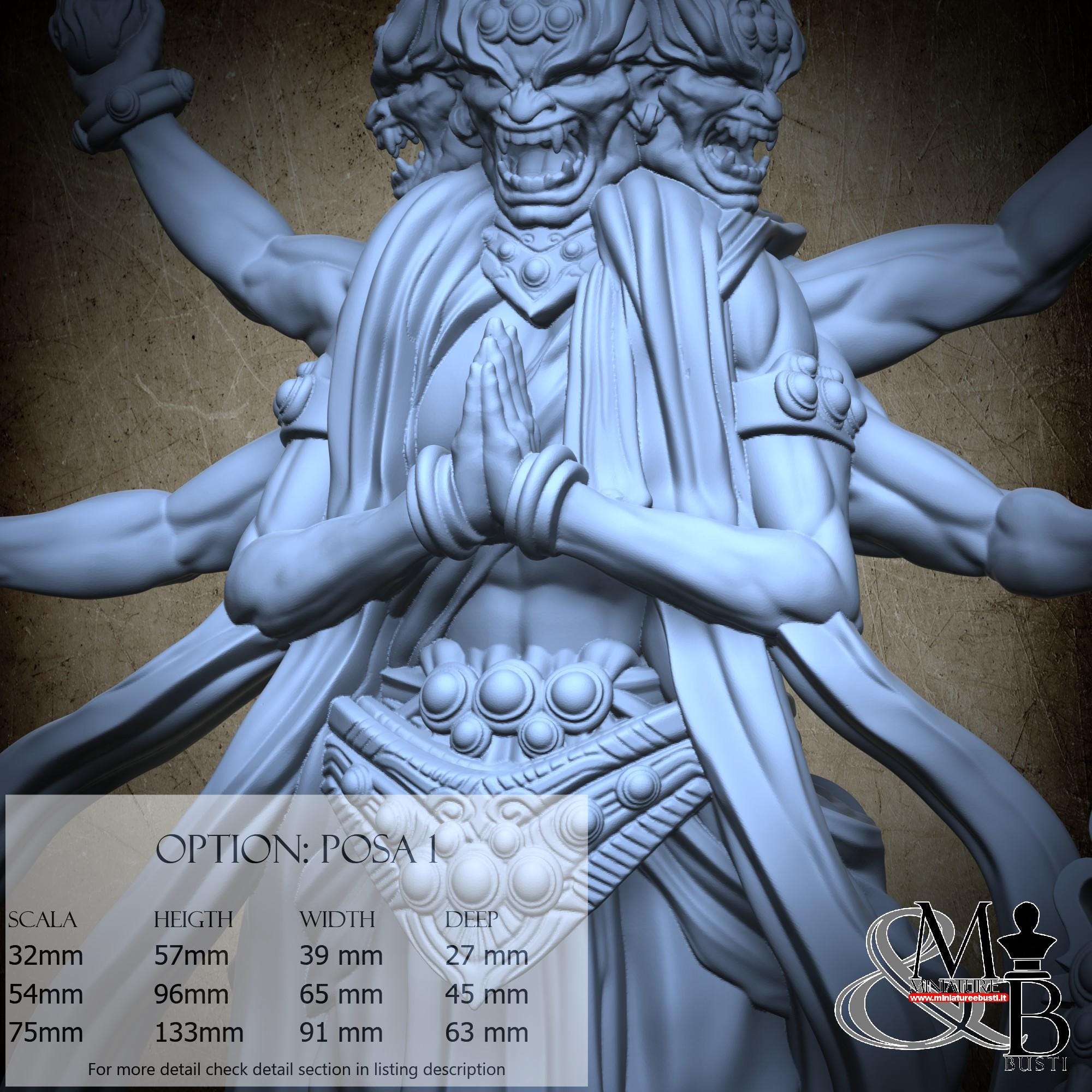 - Asura (1 piece) in Resin: Height: 44 mm, Width: 38 mm, Depth: 16 mm