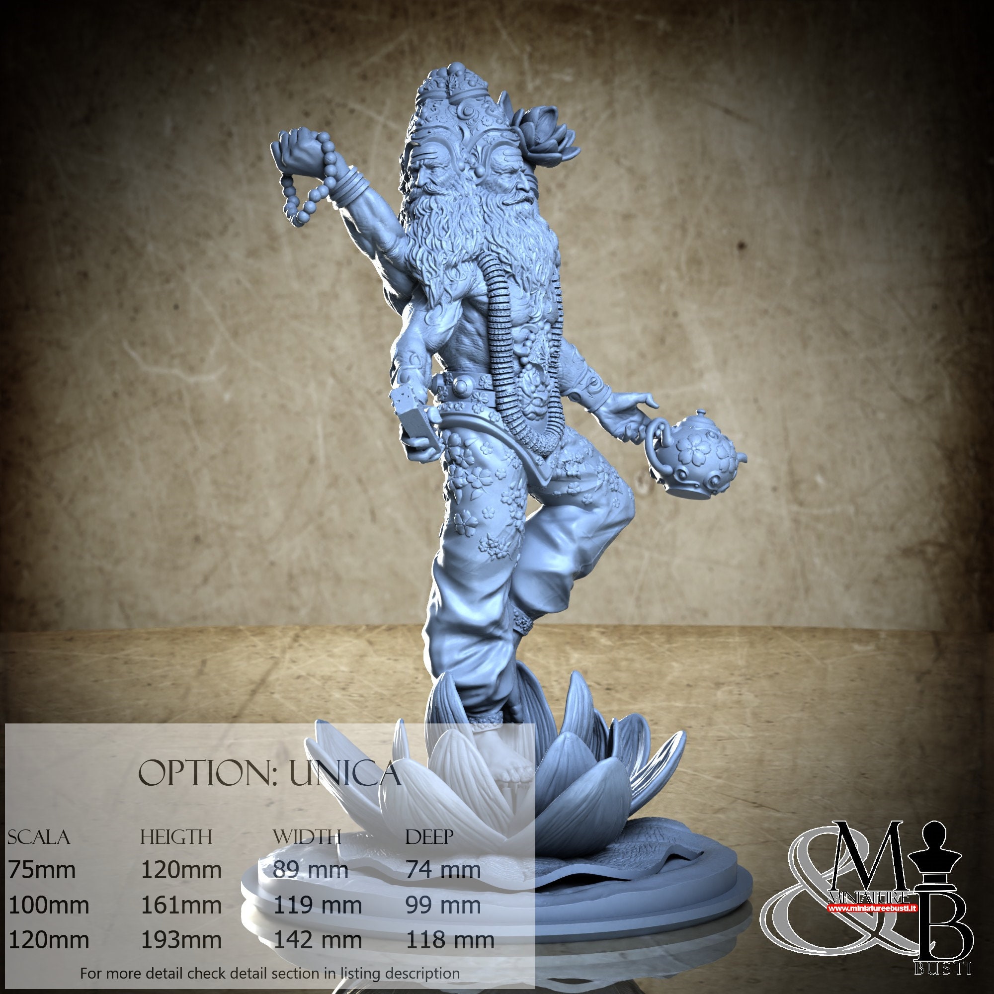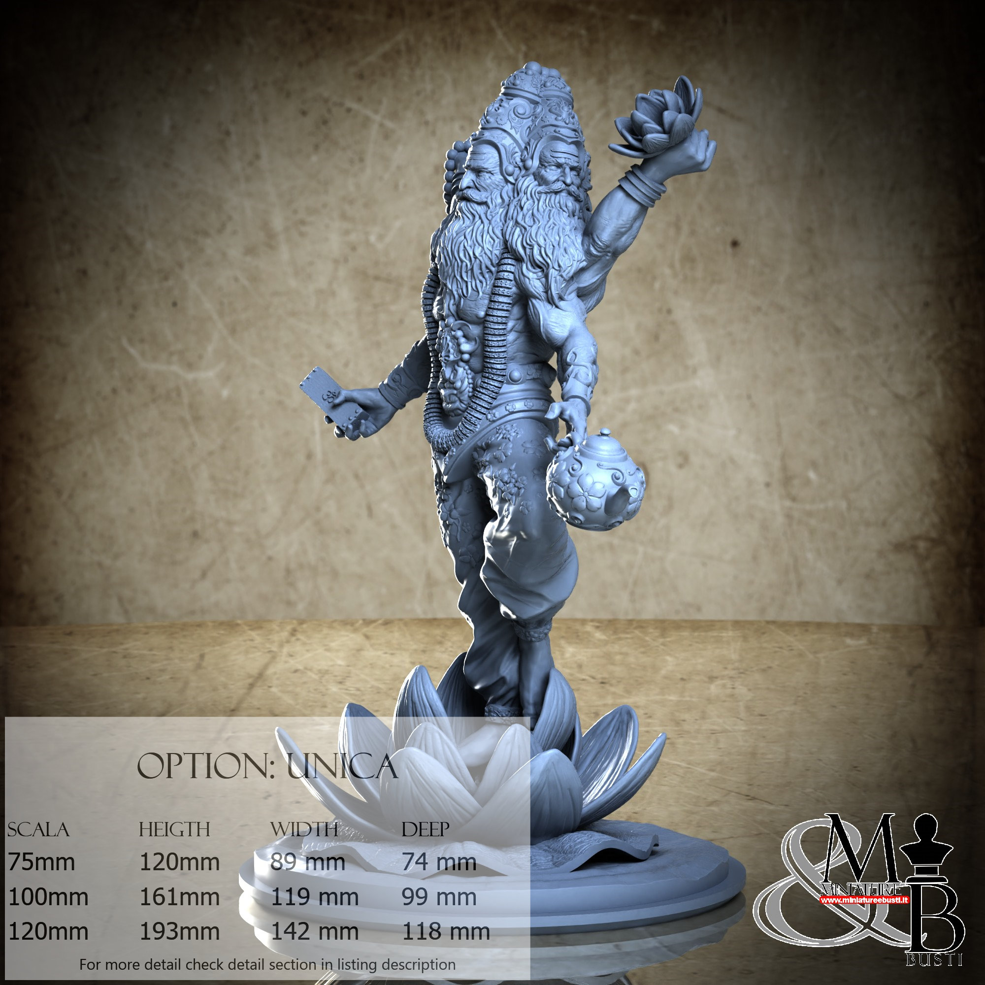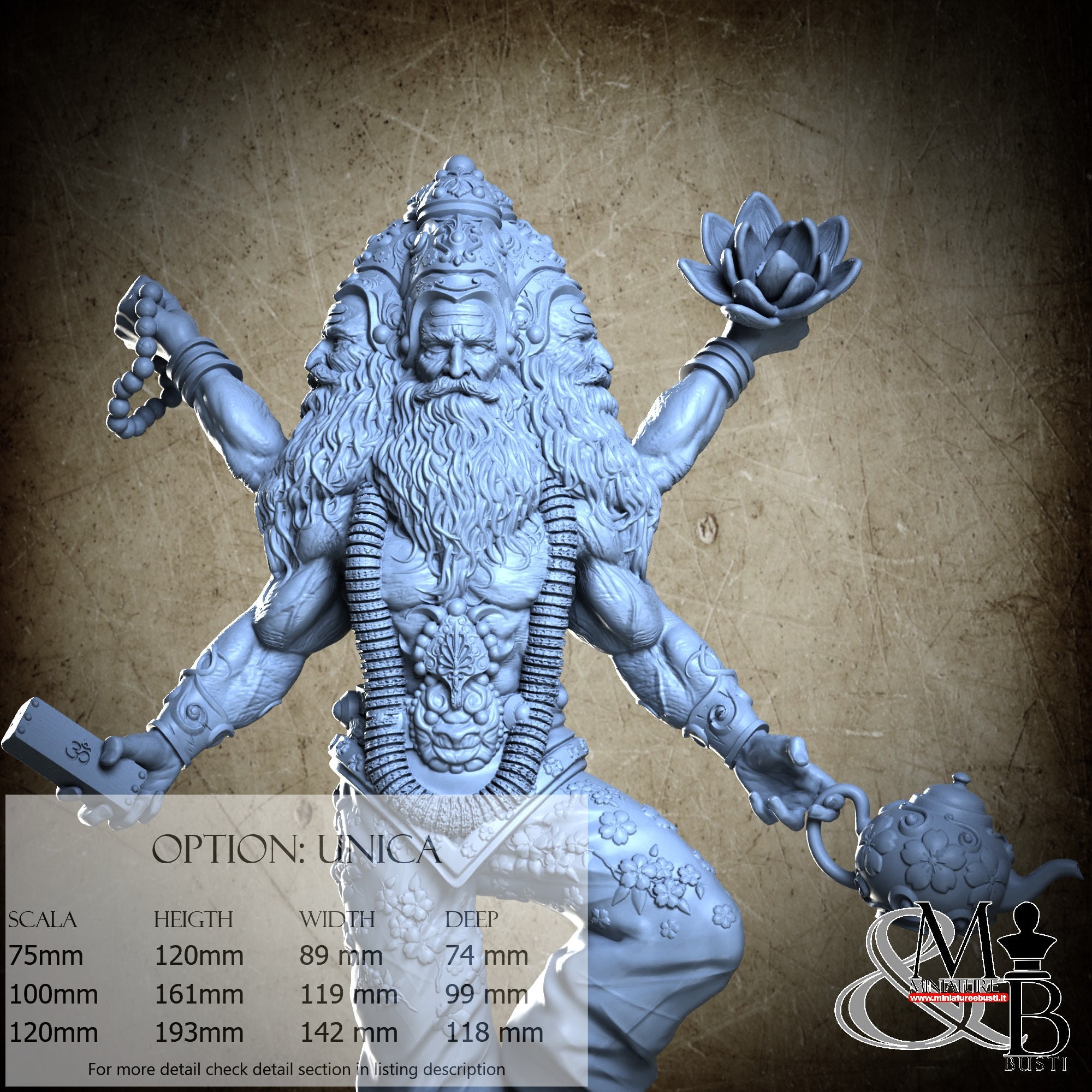 - Brahma (1 piece) in Resin: Height: 138 mm, Width: 119 mm, Depth: 48 mm