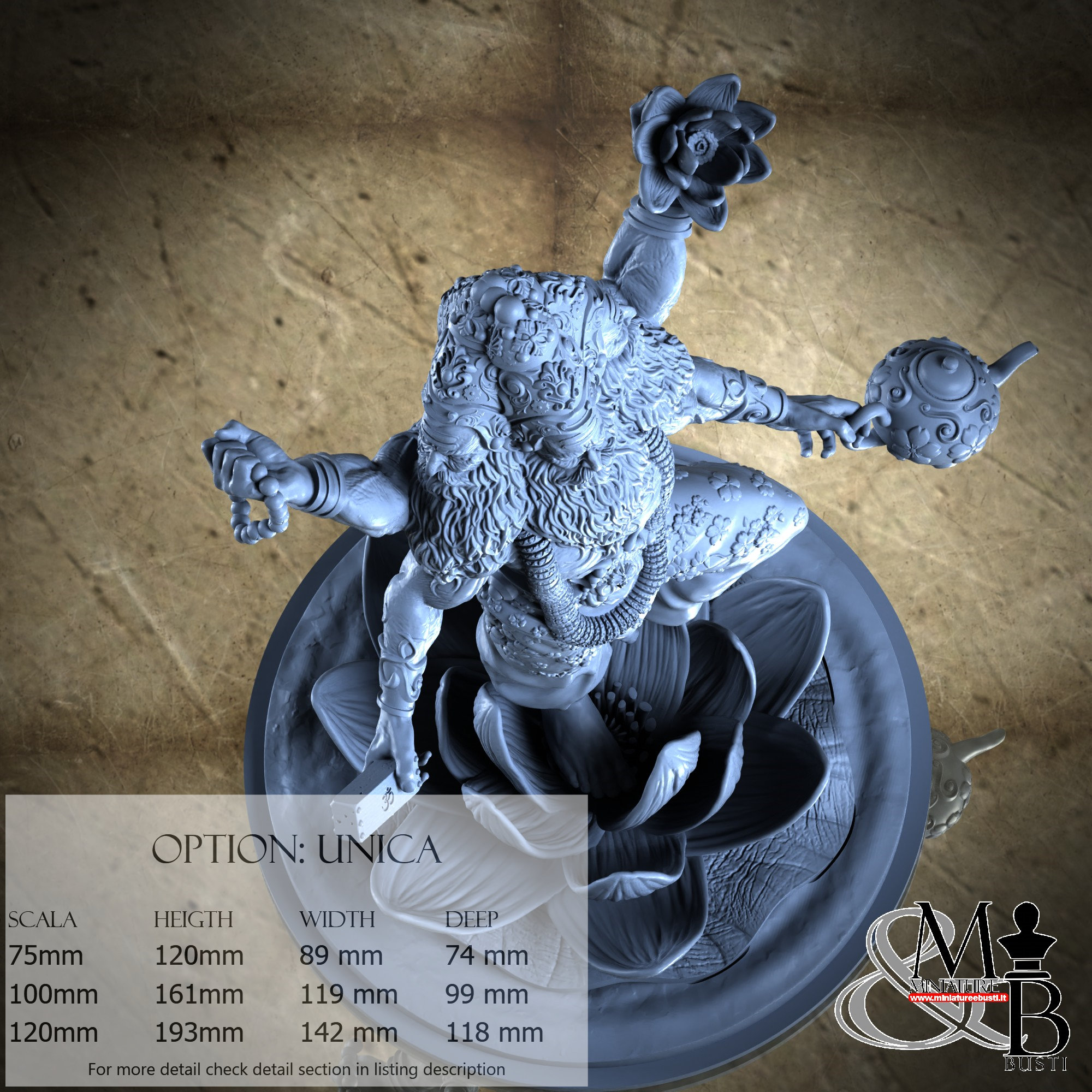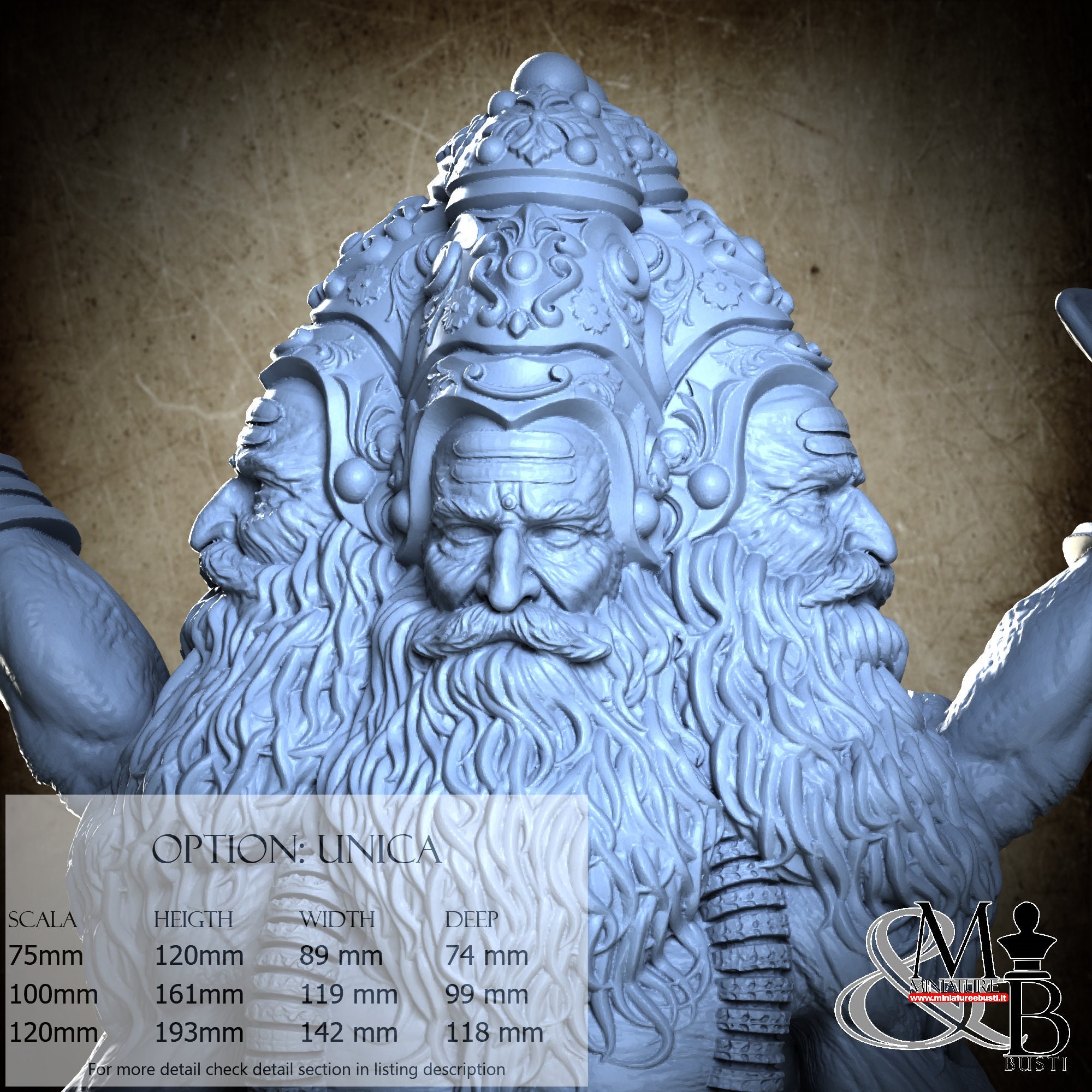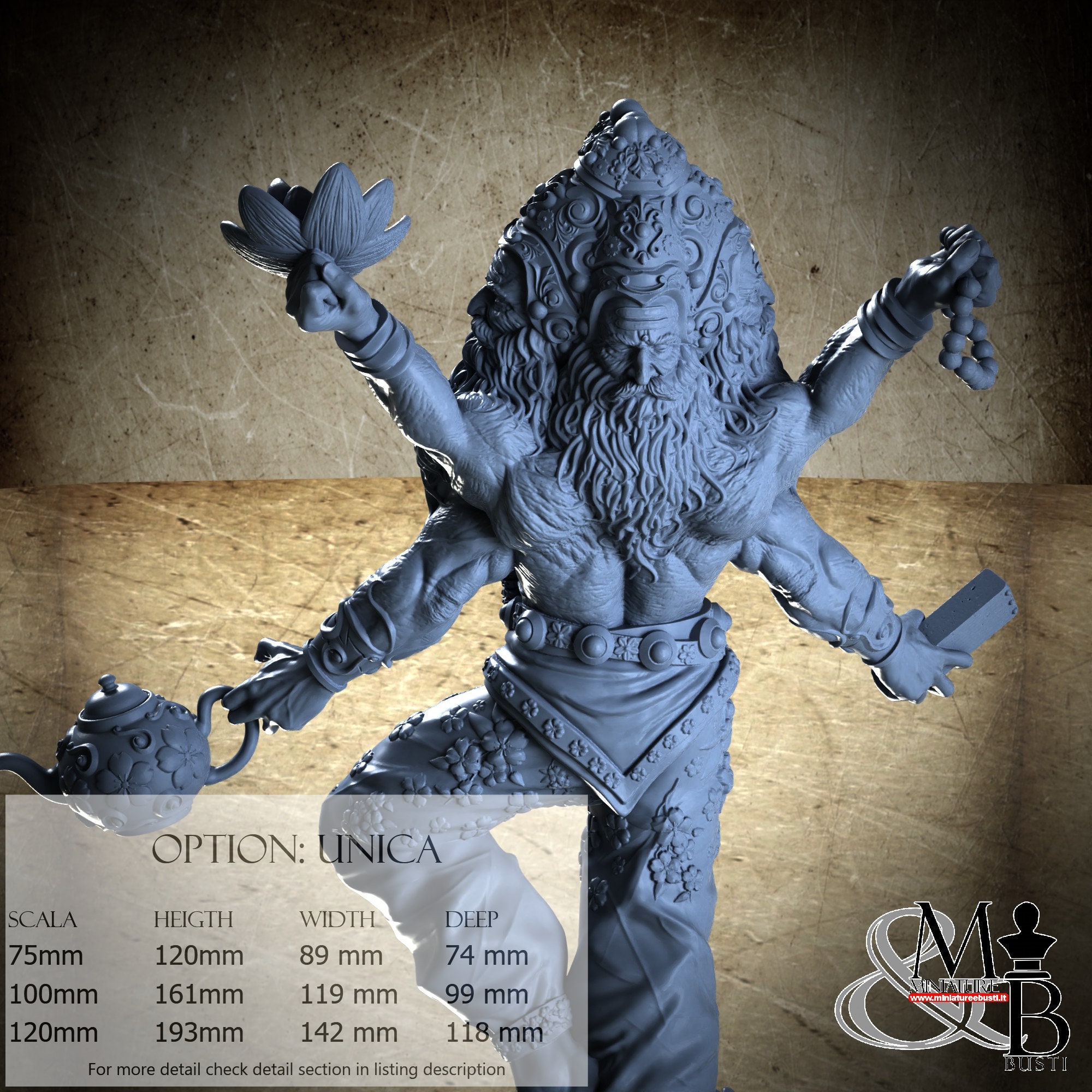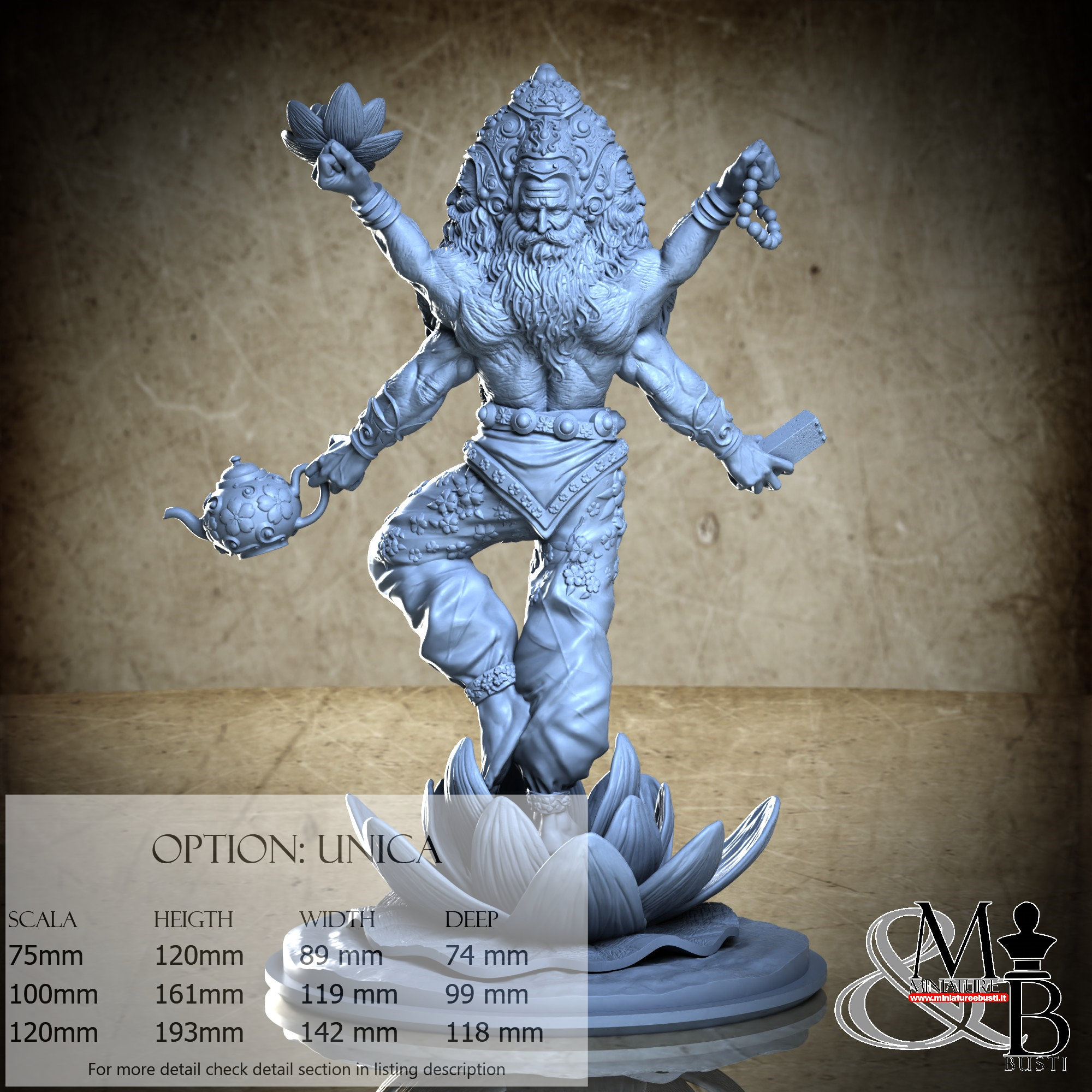 - Brahma (1 piece) in Resin: Height: 138 mm, Width: 119 mm, Depth: 48 mm