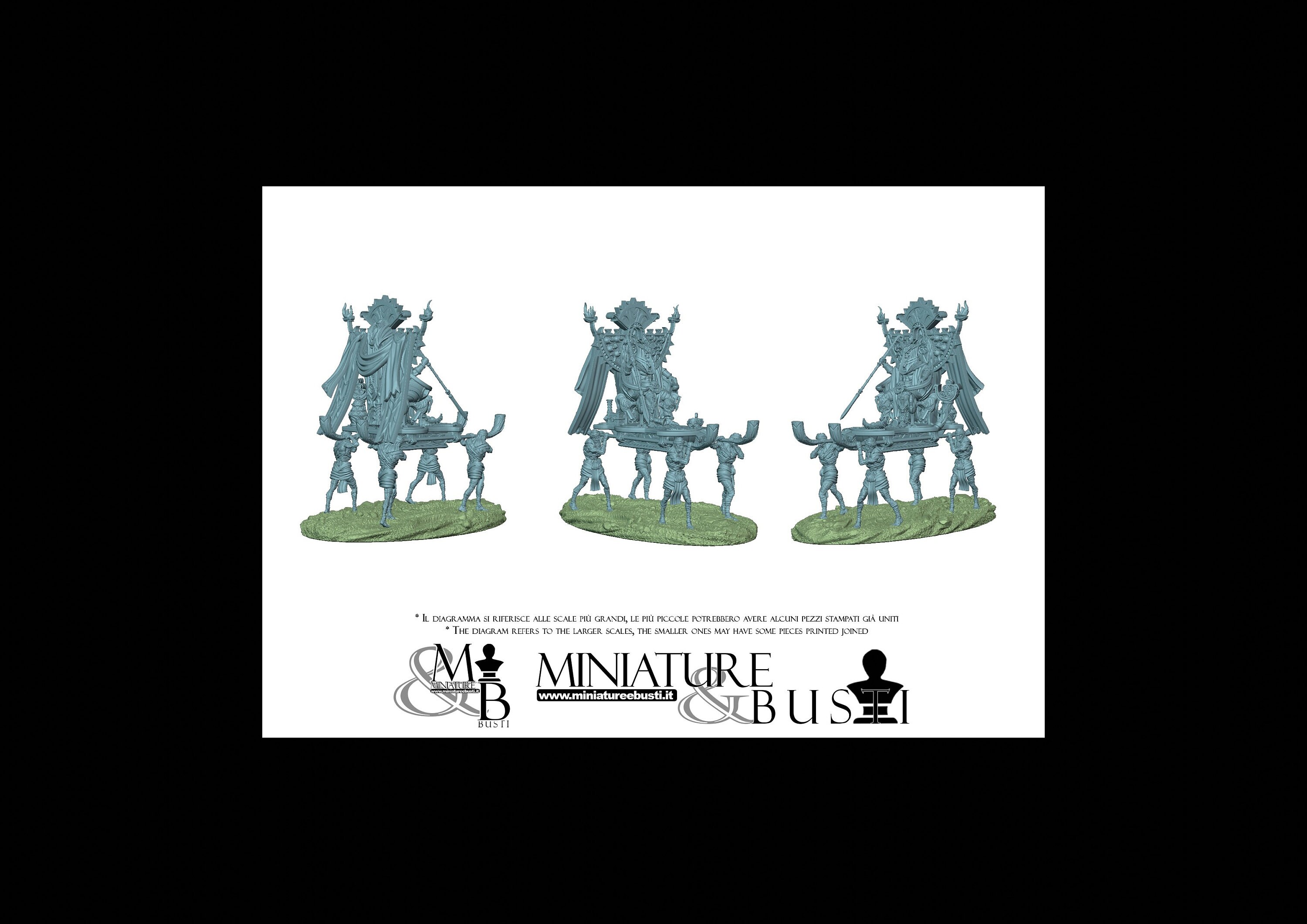 - Mummy Lord with sedan chair and servants (1 piece) in Resin: Height: 75 mm, Width: 46 mm, Depth: 70 mm