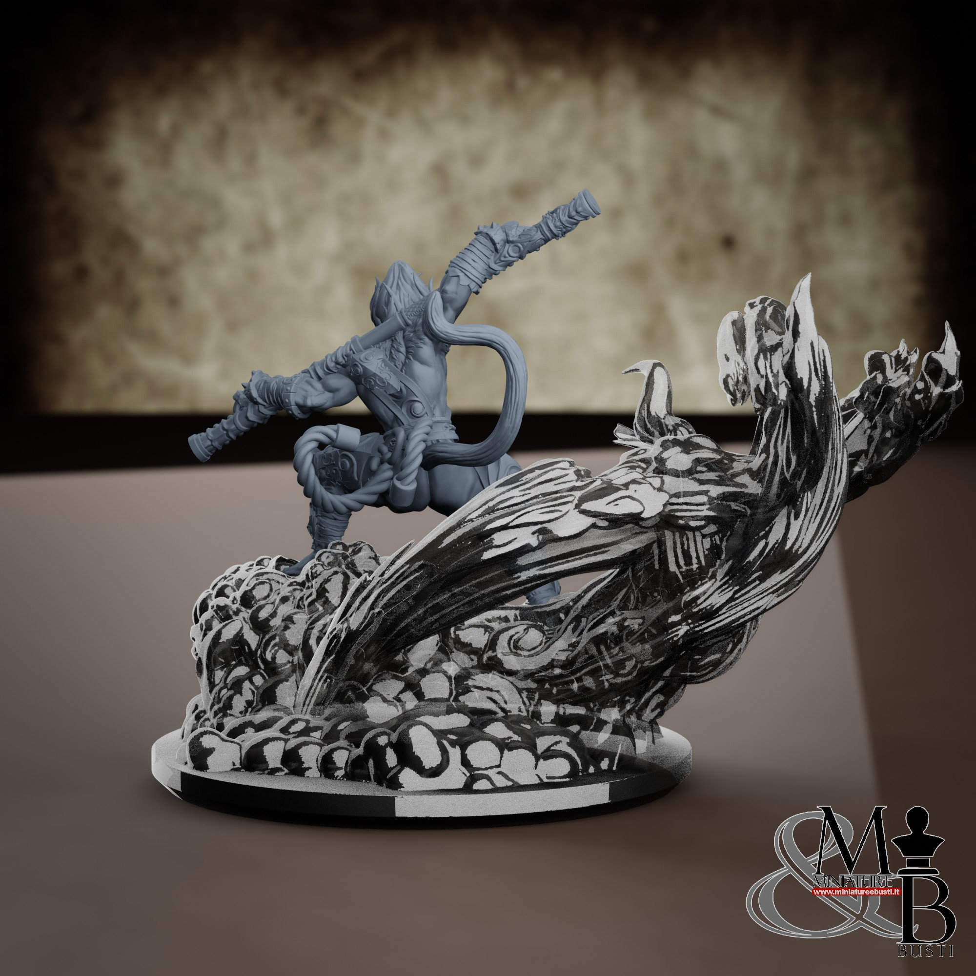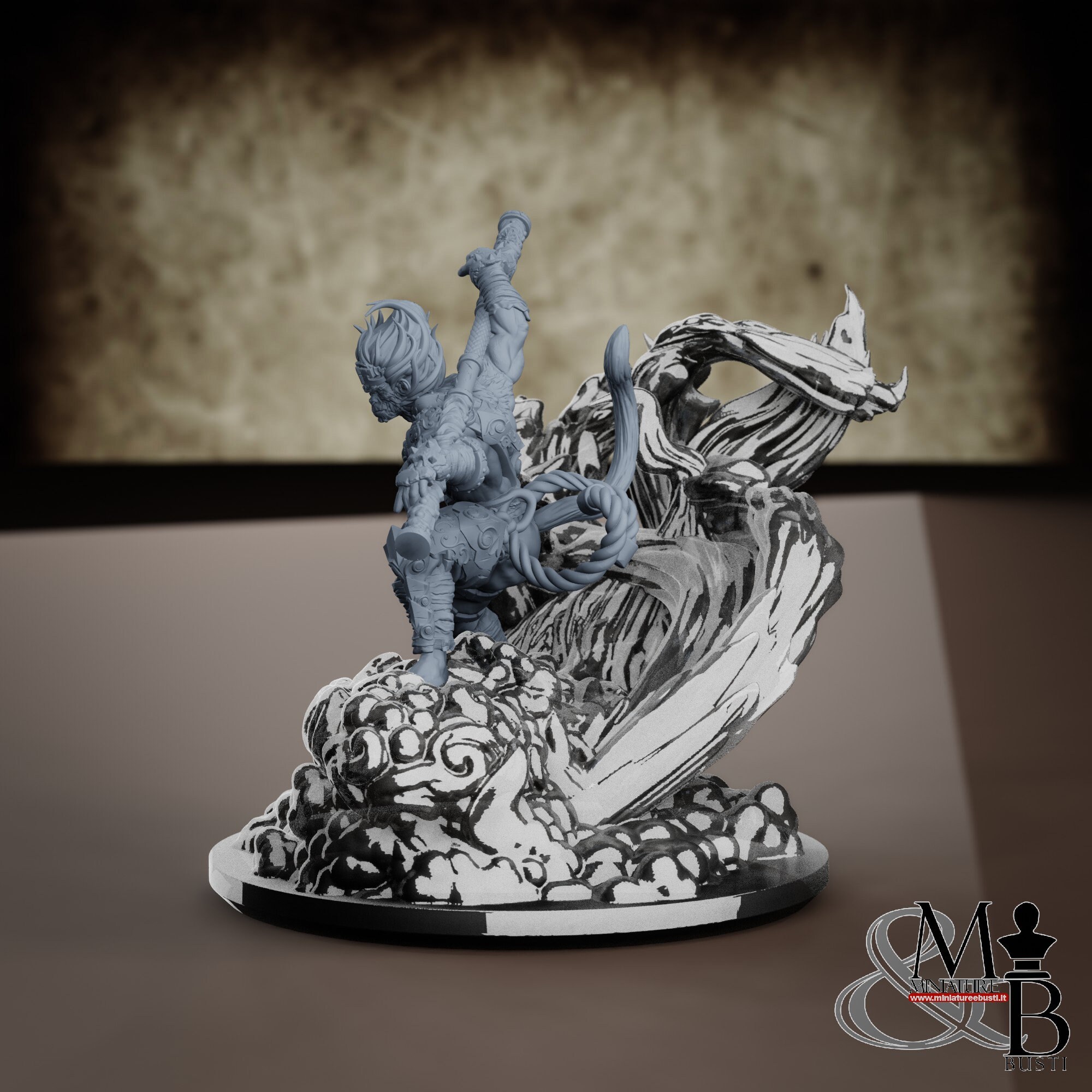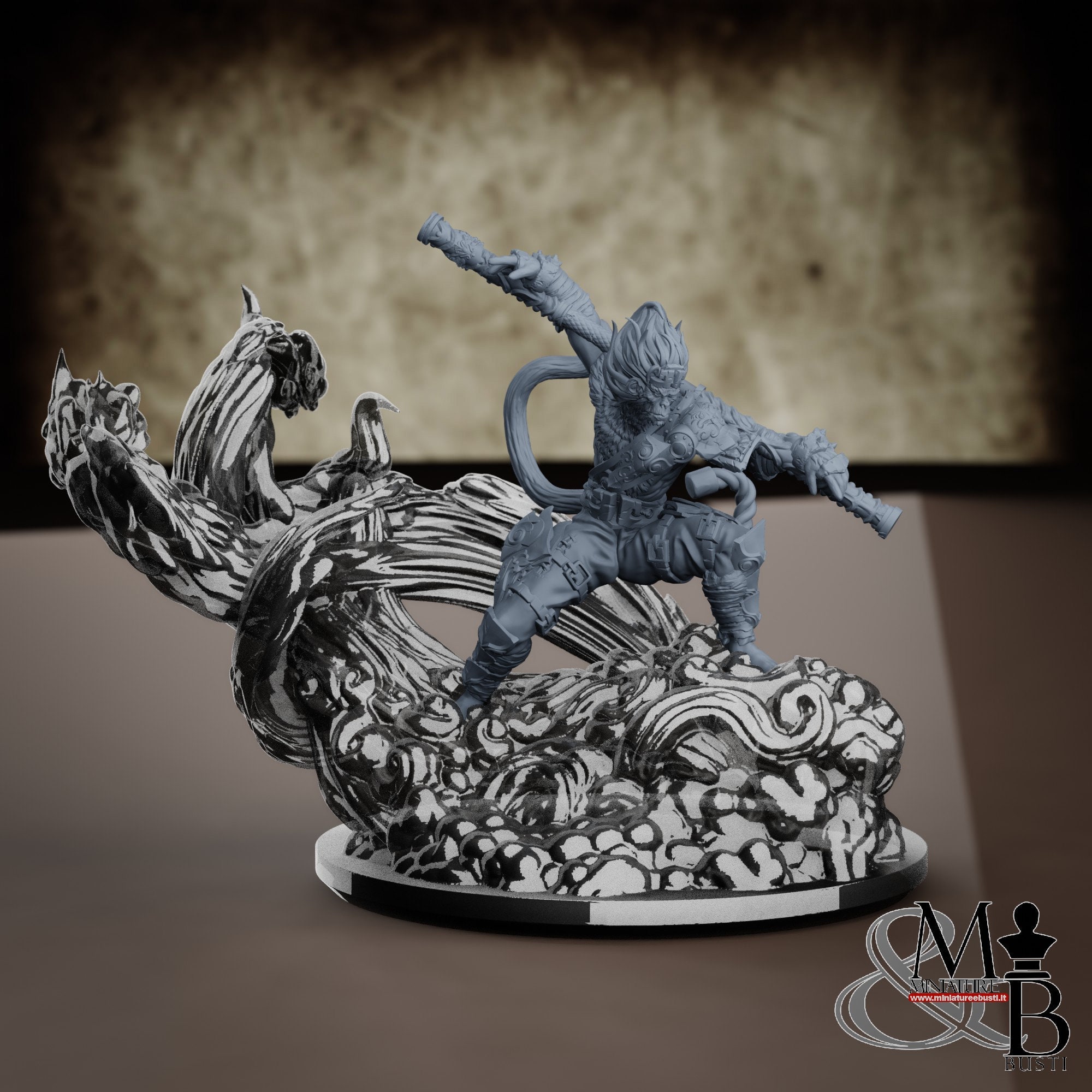 - Sun Wukong (1 piece) in Resin: Height: 69 mm, Width: 64 mm, Depth: 37 mm