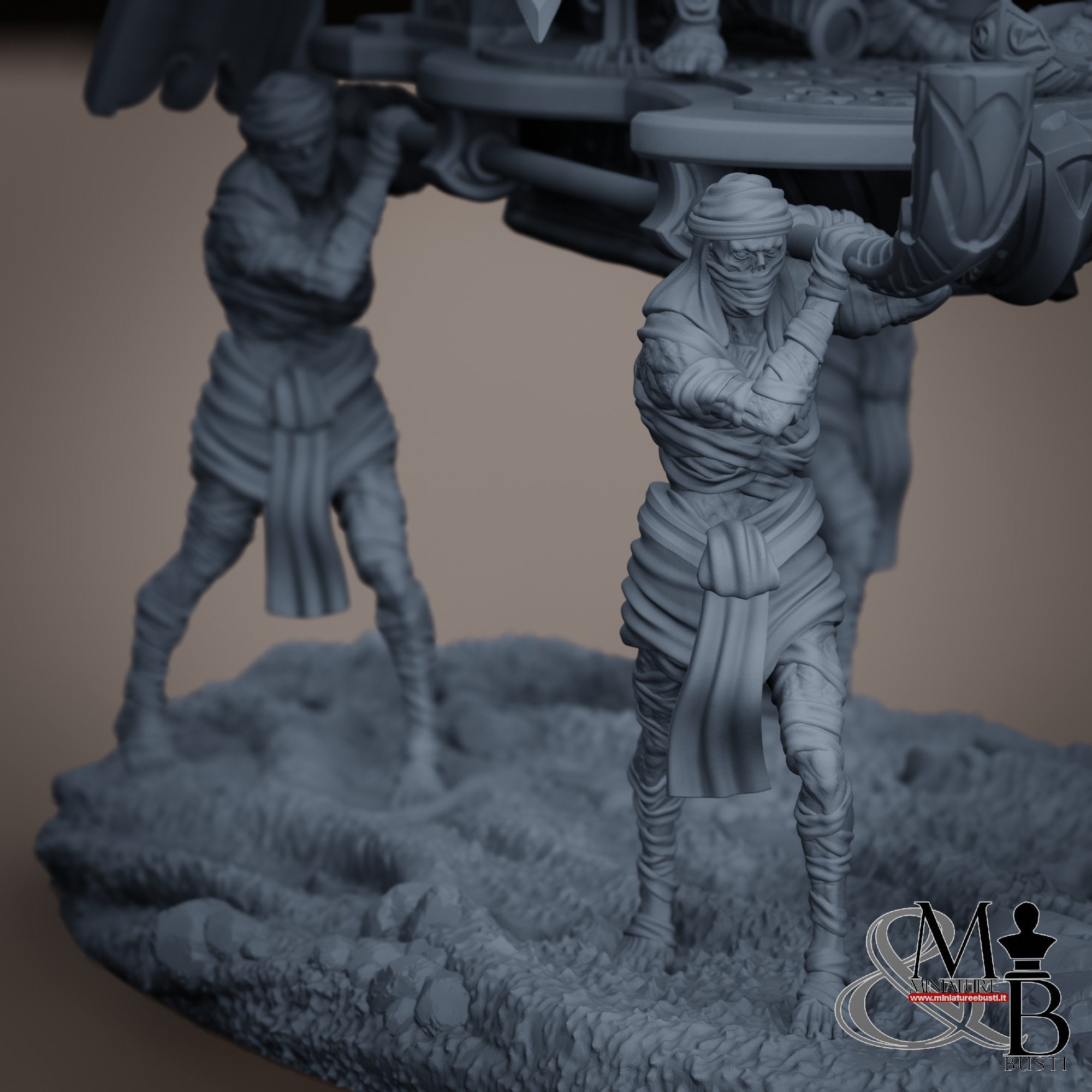 - Mummy Lord with sedan chair and servants (1 piece) in Resin: Height: 126 mm, Width: 77 mm, Depth: 118 mm