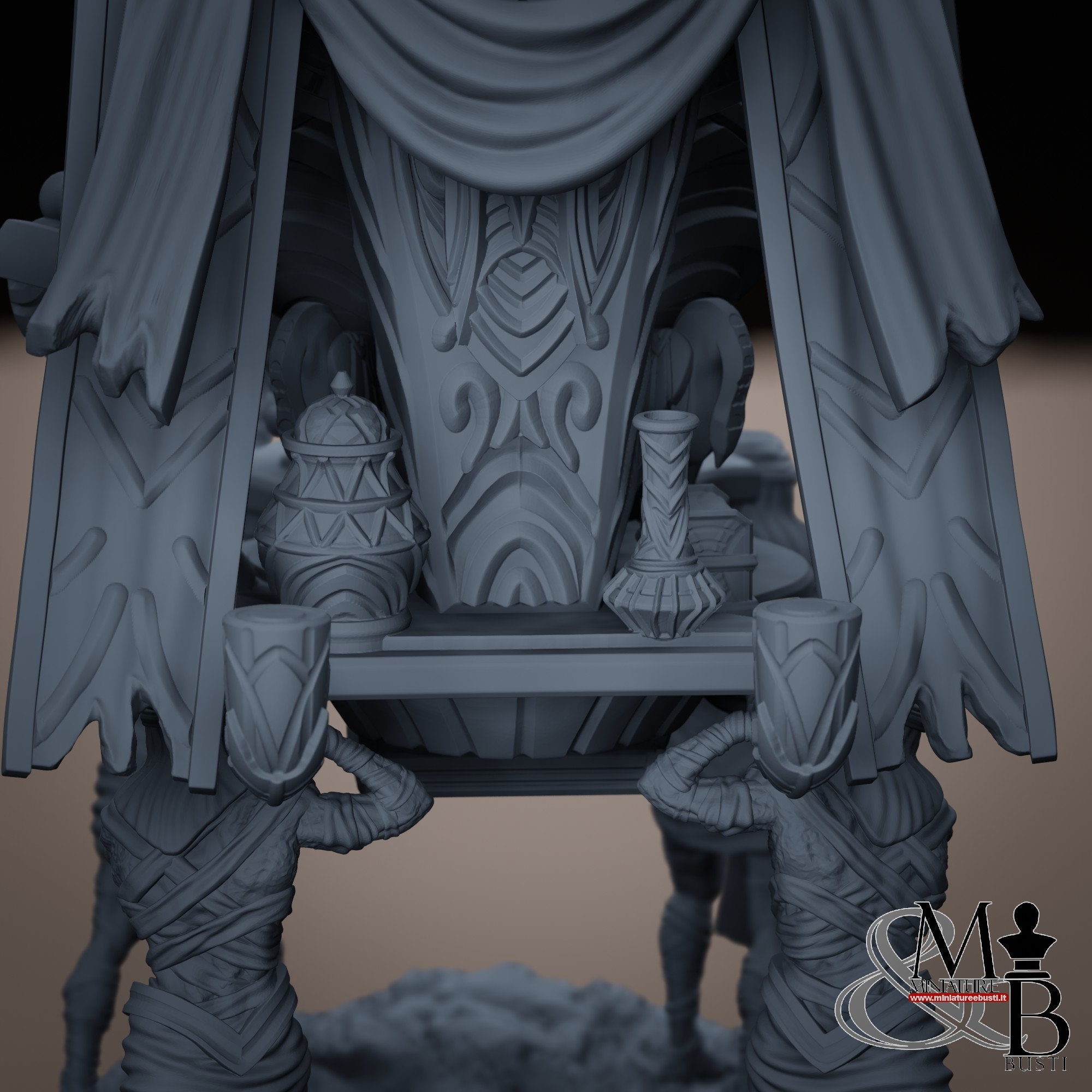 Mummy Lord, carried in a litter by 4 blindfolded servants.