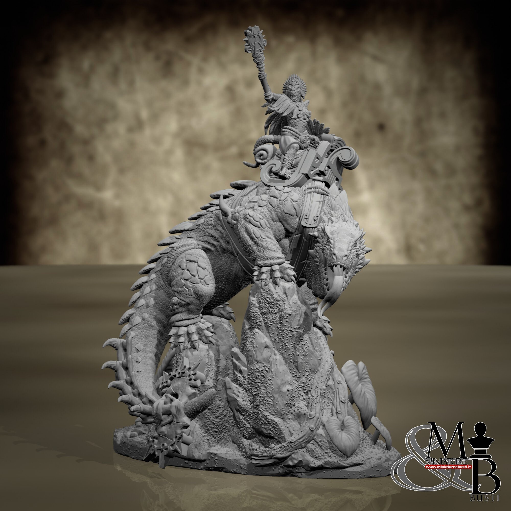 Reptilian rider of the creatures called "Mato". The scale refers to the rider; see below for actual diorama measurements.