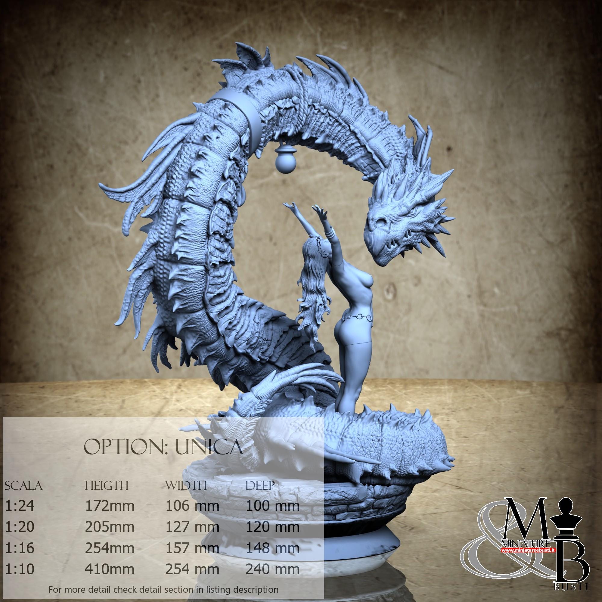 - Dragon (7 pieces) in Resin: Height: 135 mm, Width: 106 mm, Depth: 100 mm