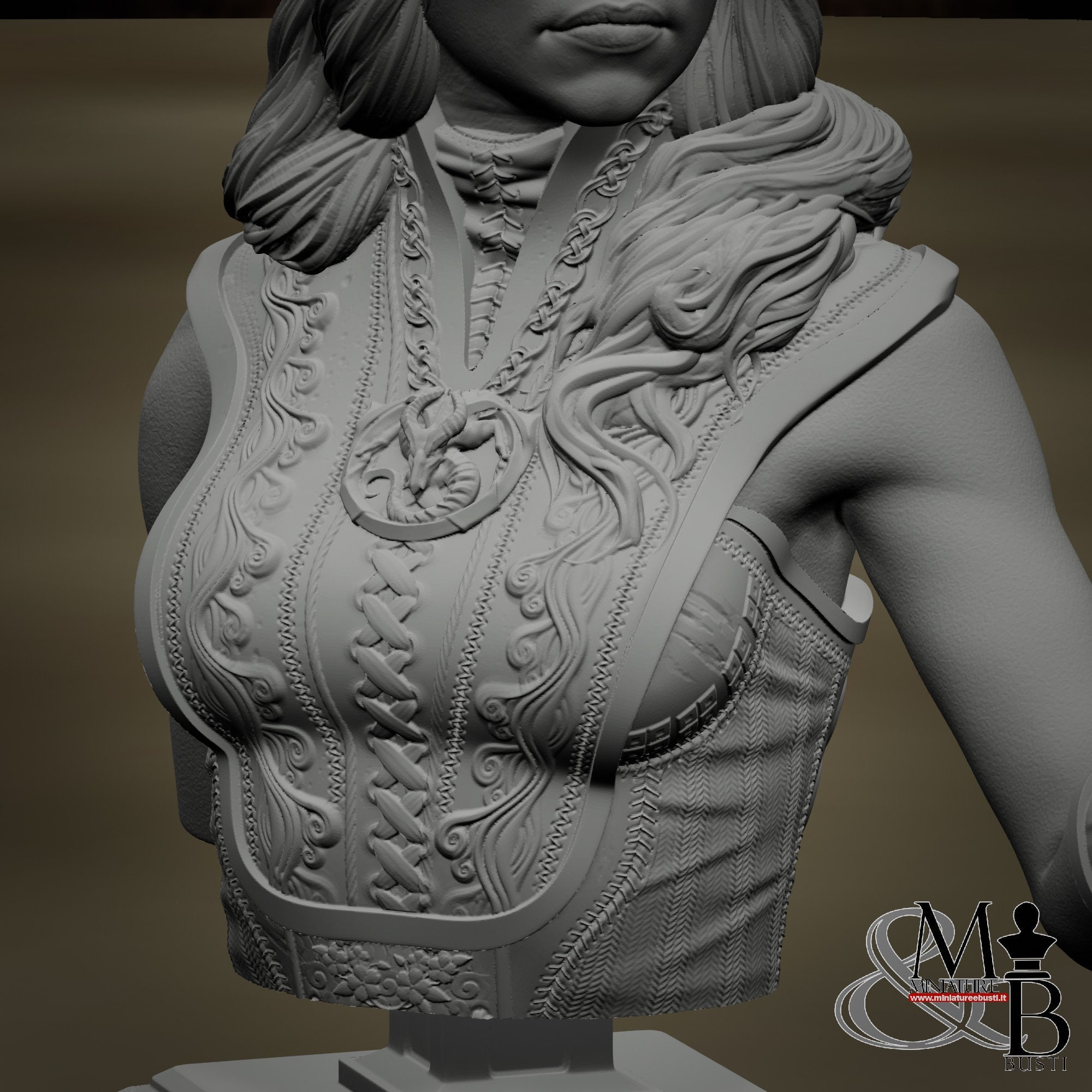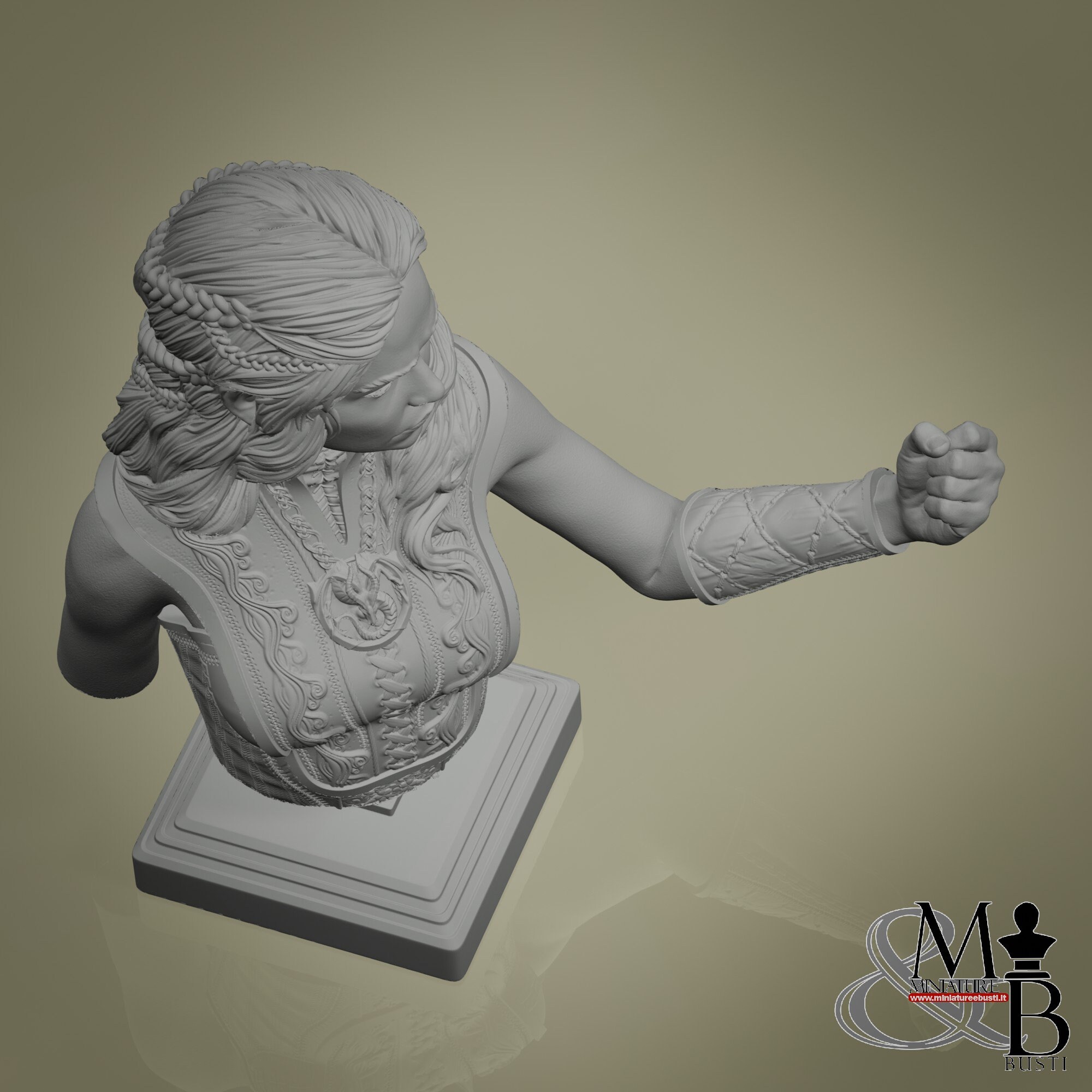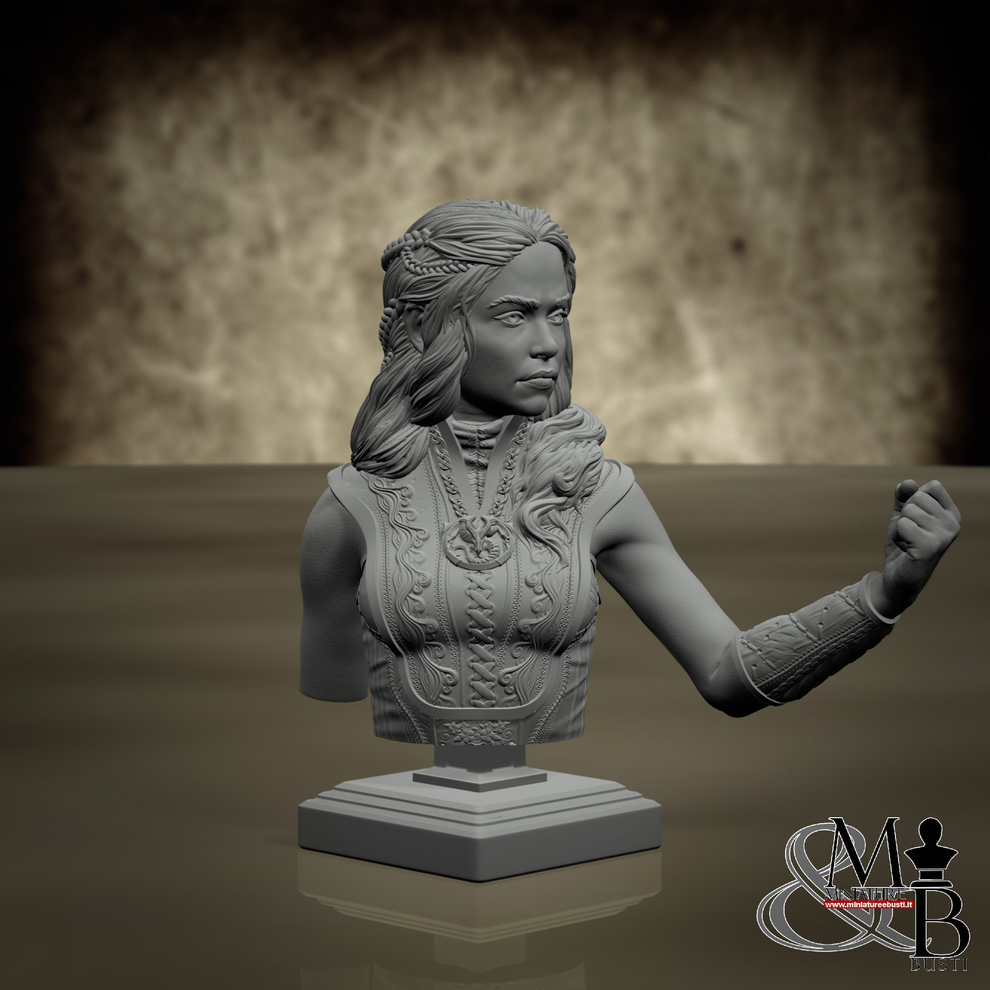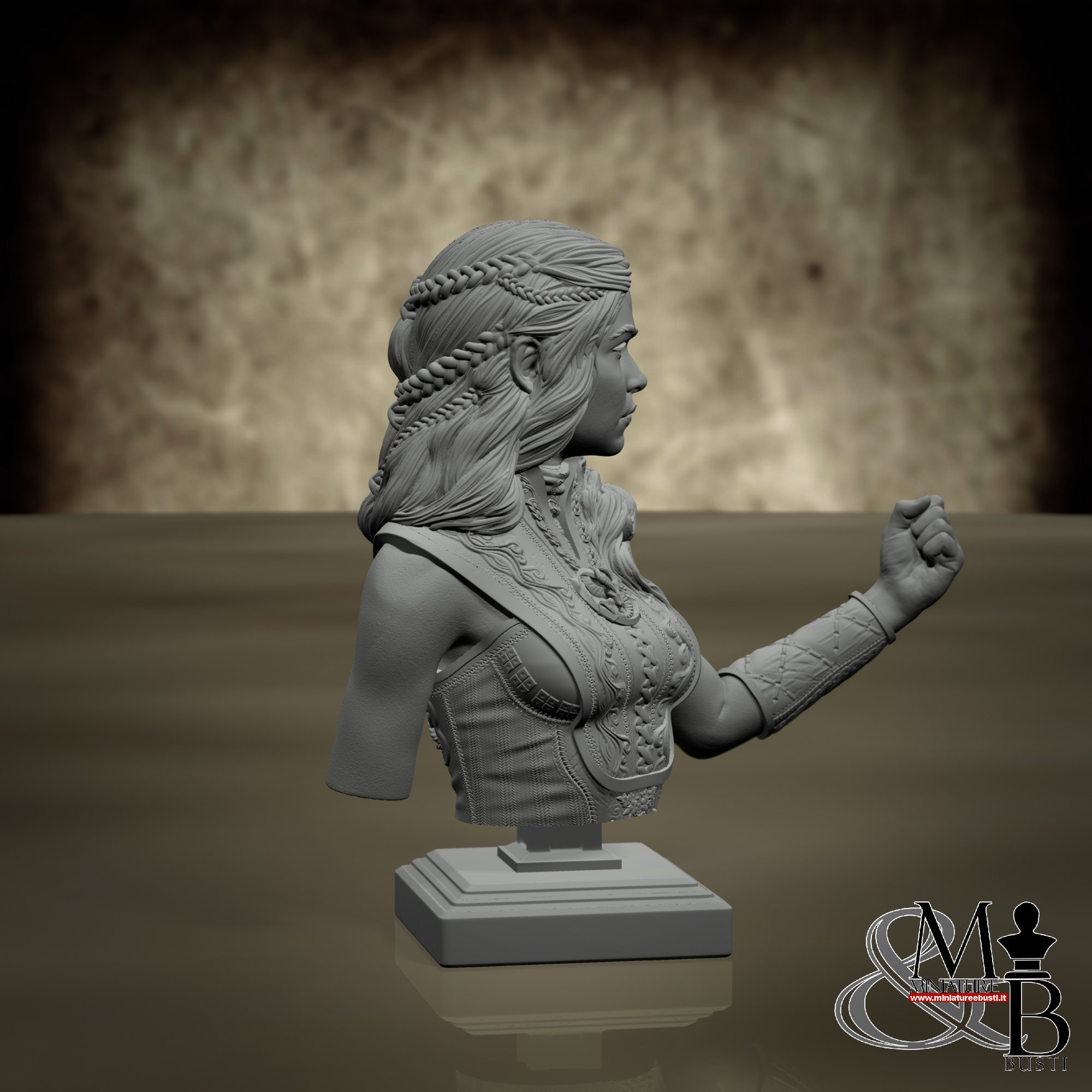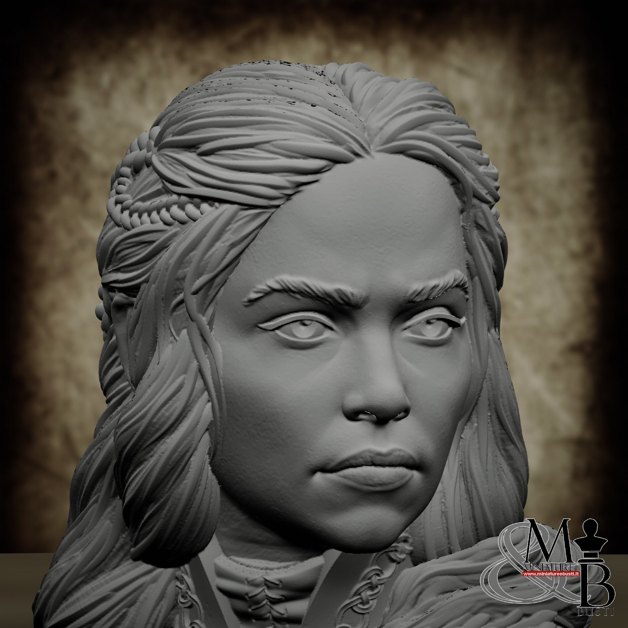 - Bust (1 piece) in Resin: Height: 65 mm, Width: 65 mm, Depth: 37 mm