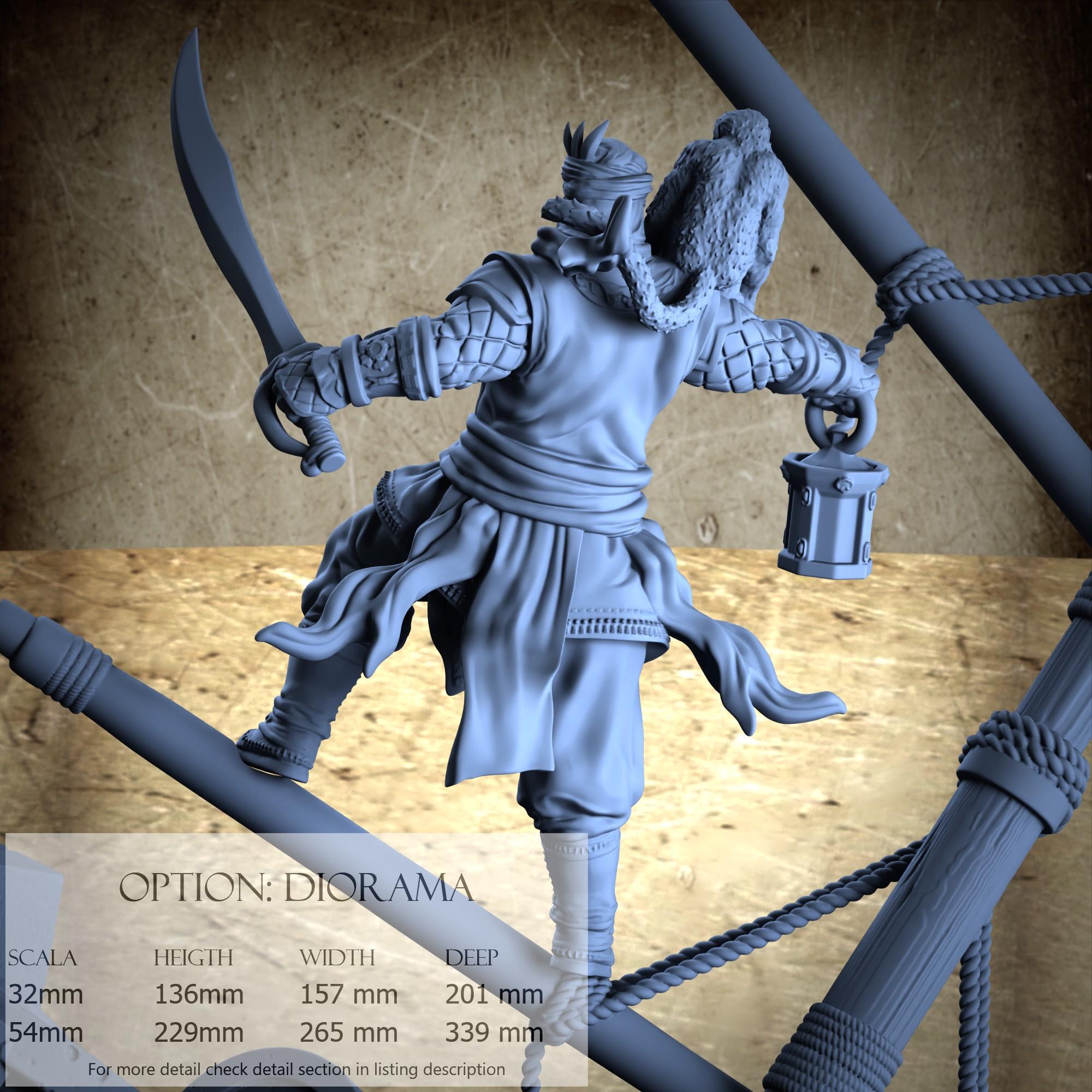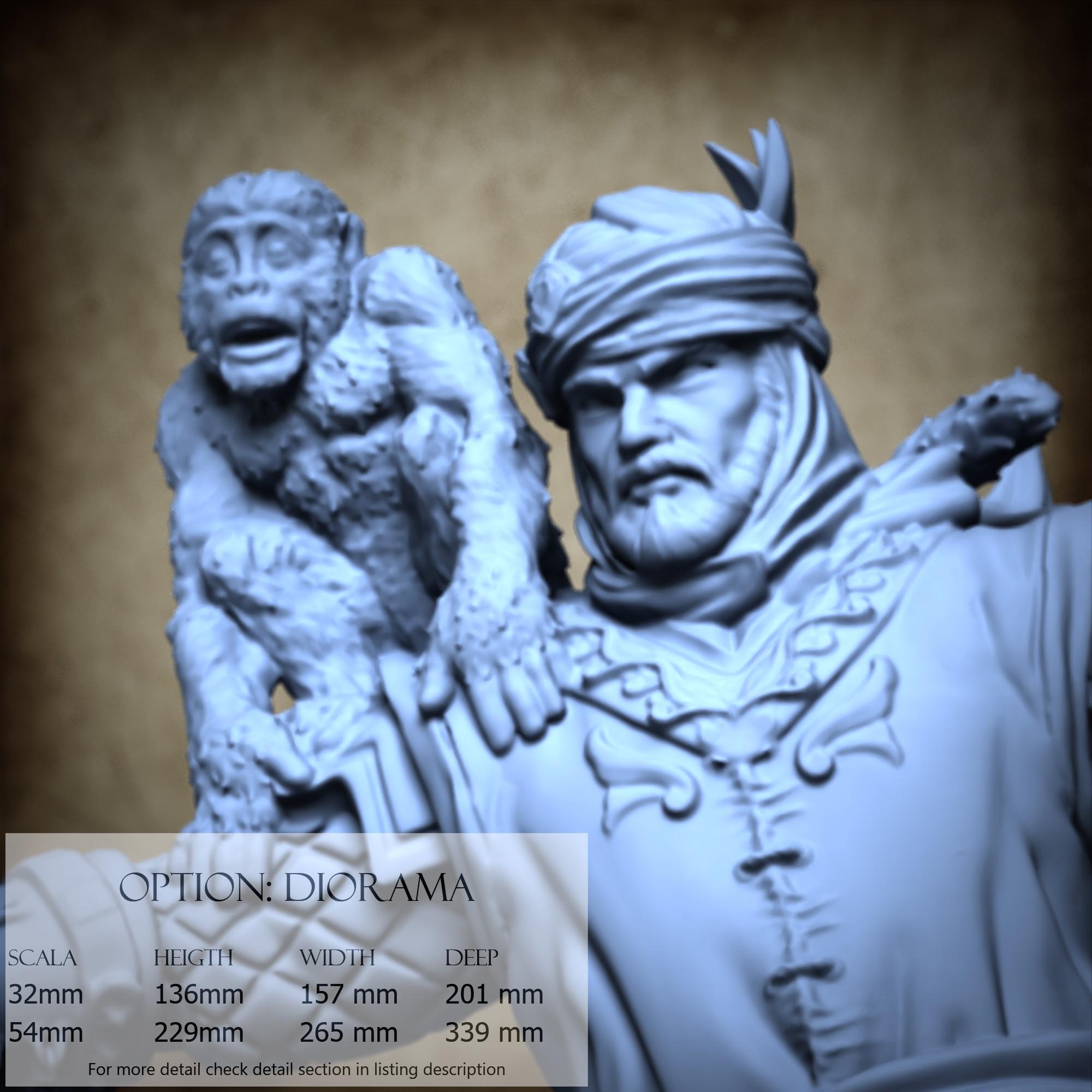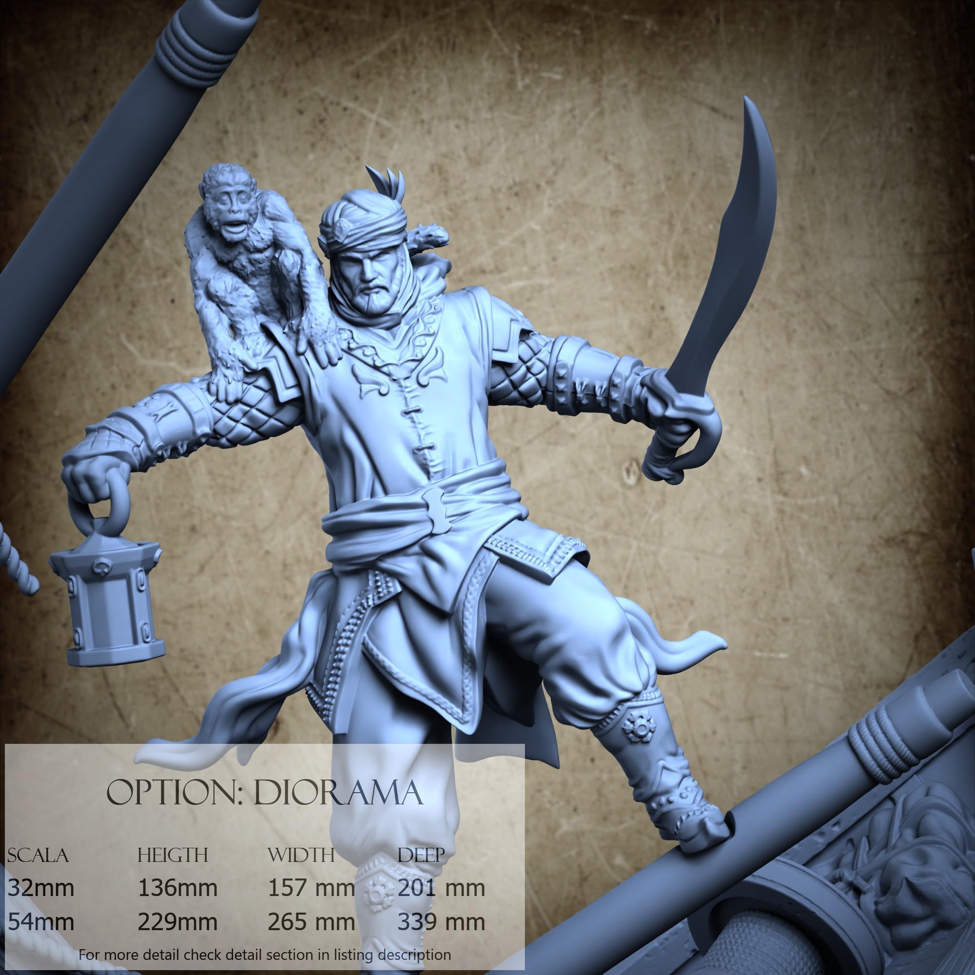 - Sinbad (1 piece) in Resin: Height: 72 mm, Width: 43 mm, Depth: 52 mm