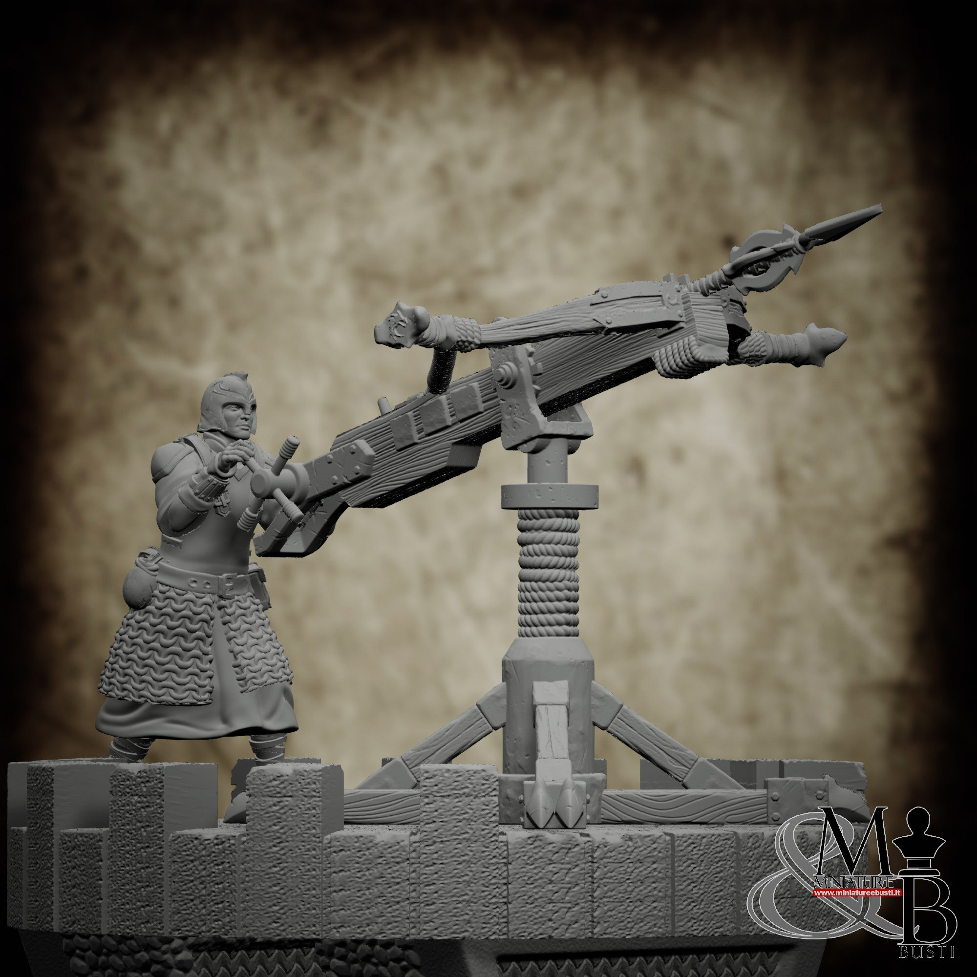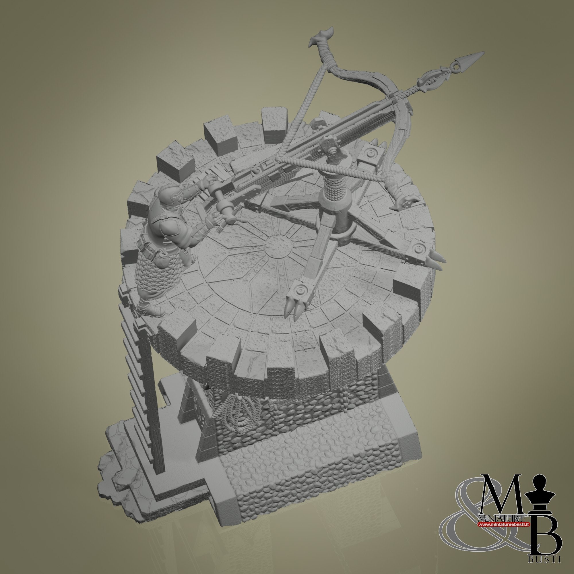 - Crossbow (1 piece) in Resin: Height: 45 mm, Width: 46 mm, Depth: 62 mm
