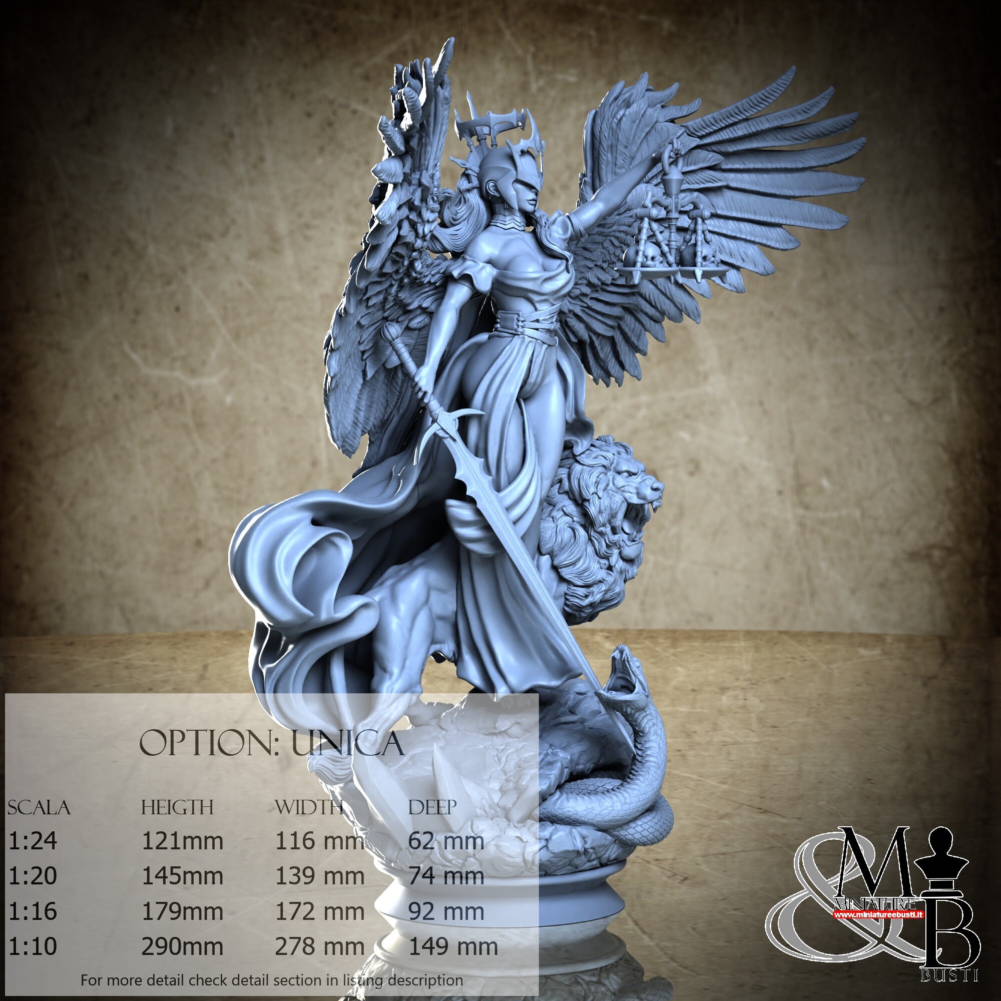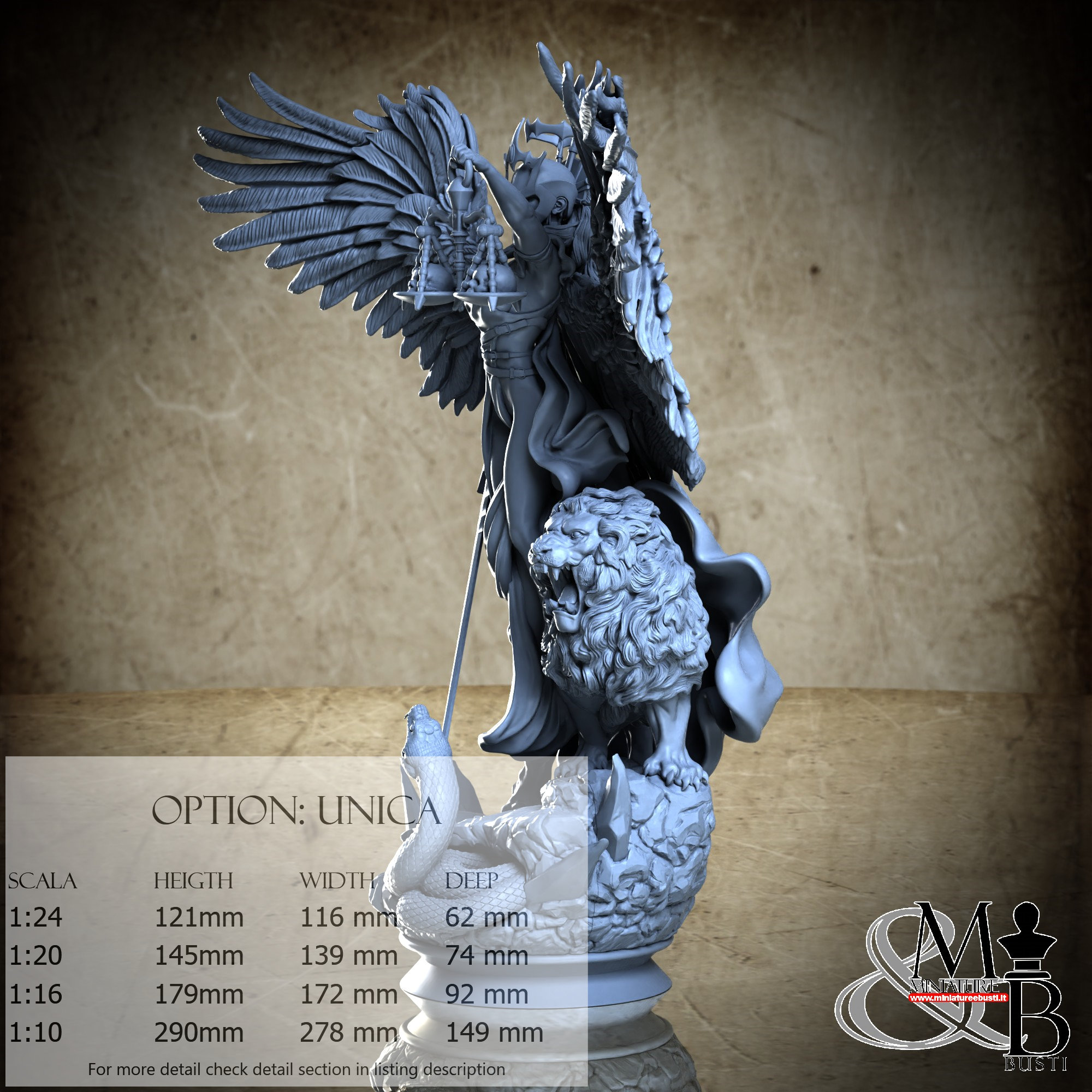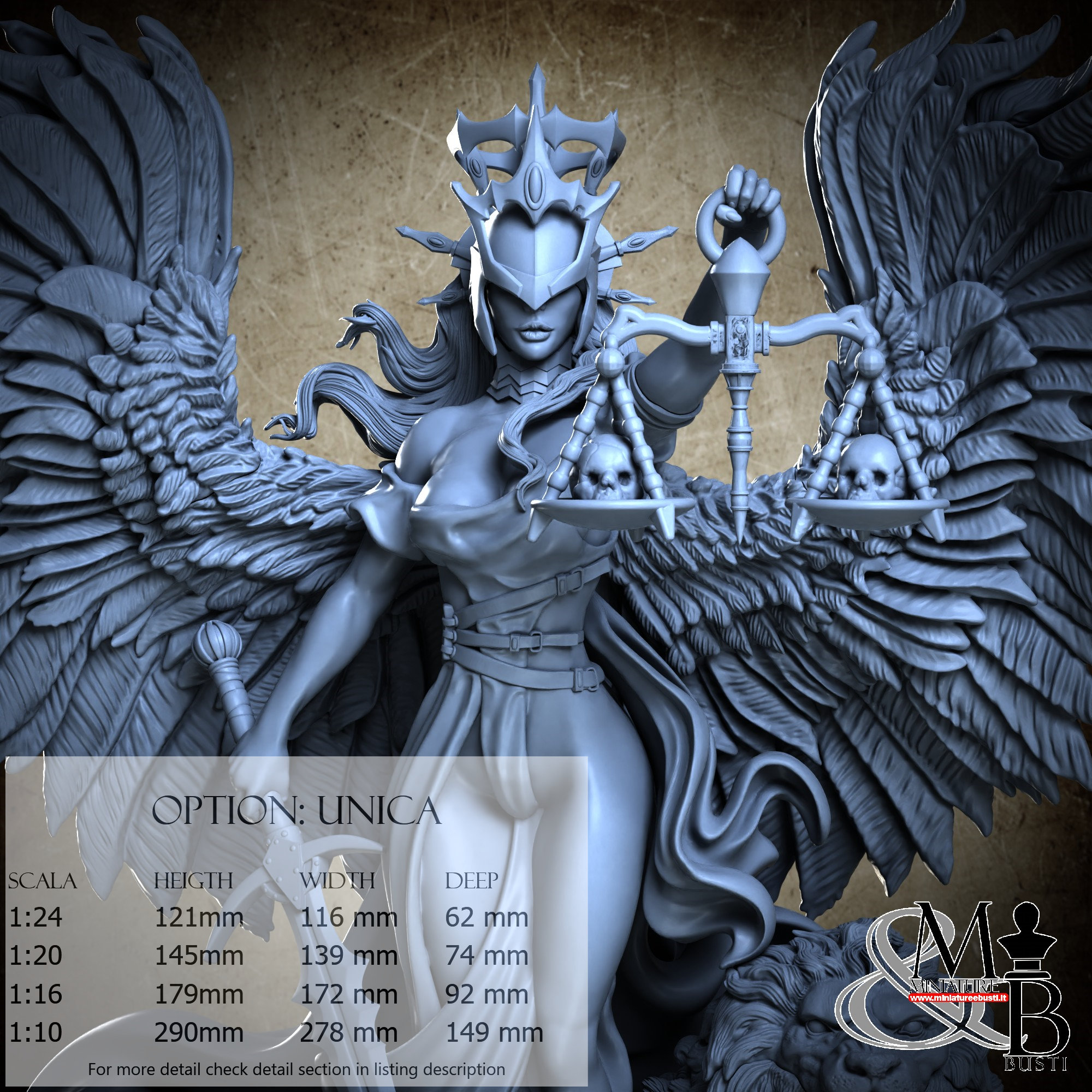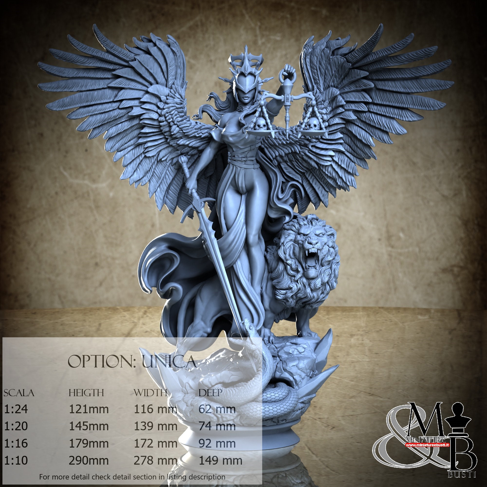 - Justice (20 pieces) in Resin: Height: 99 mm, Width: 116 mm, Depth: 62 mm