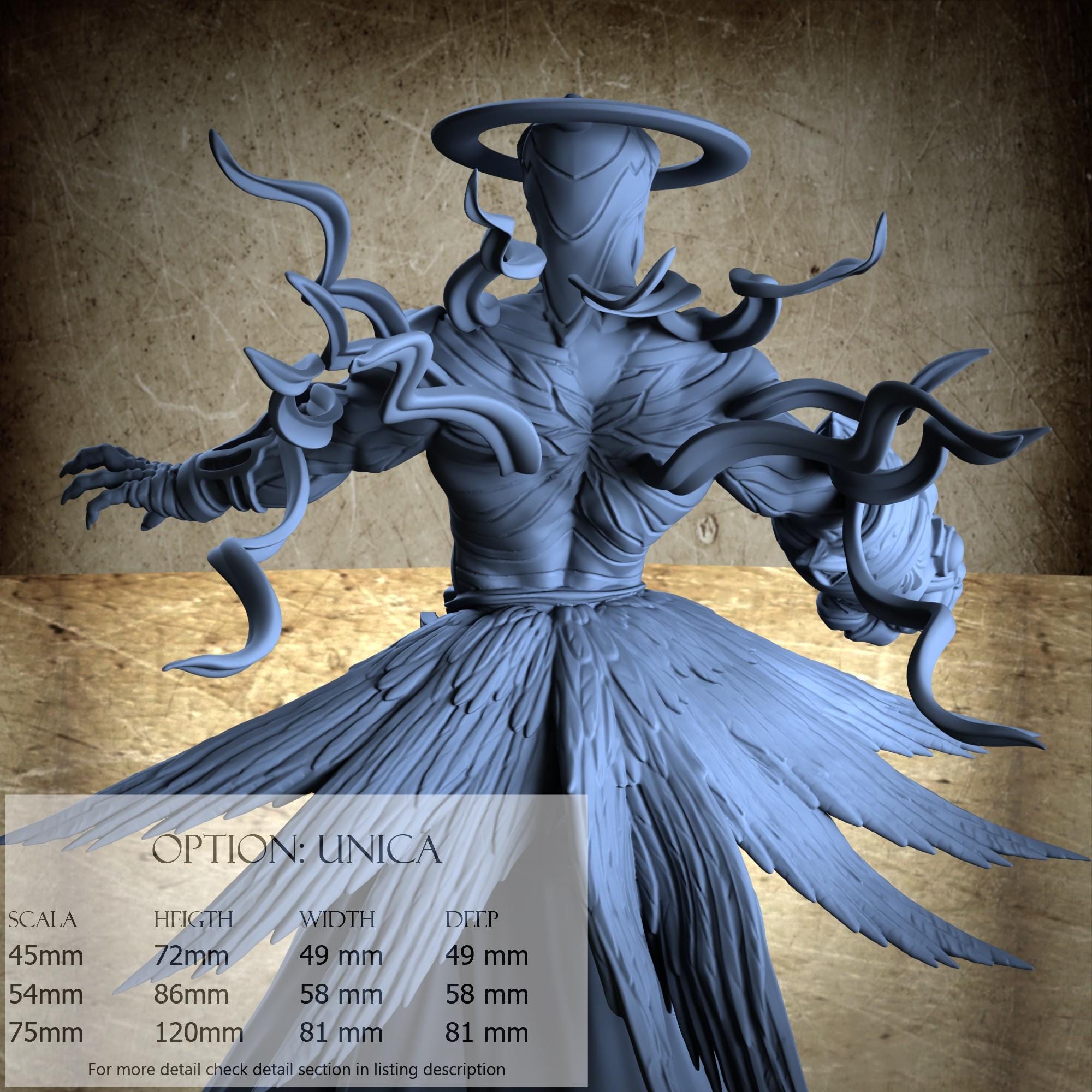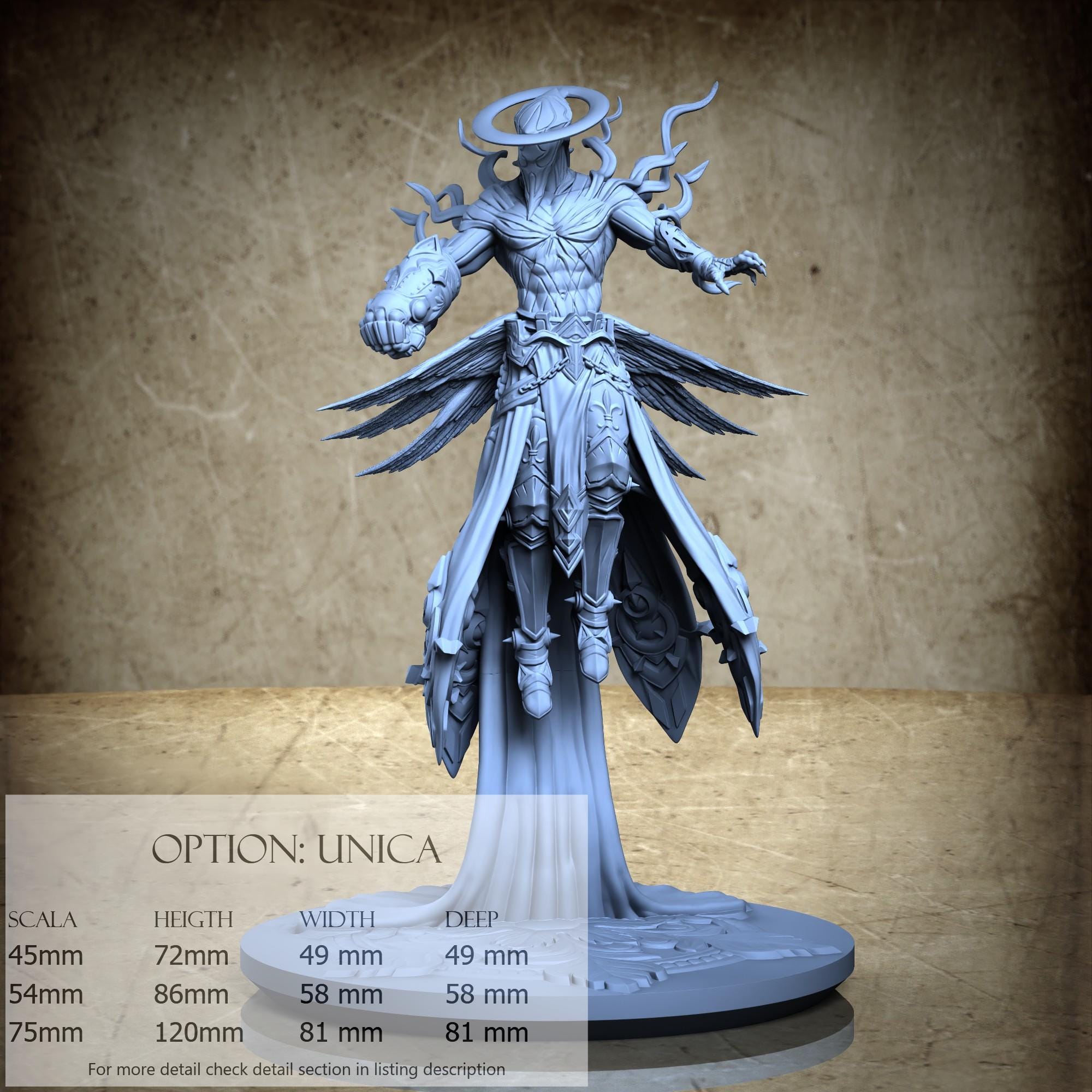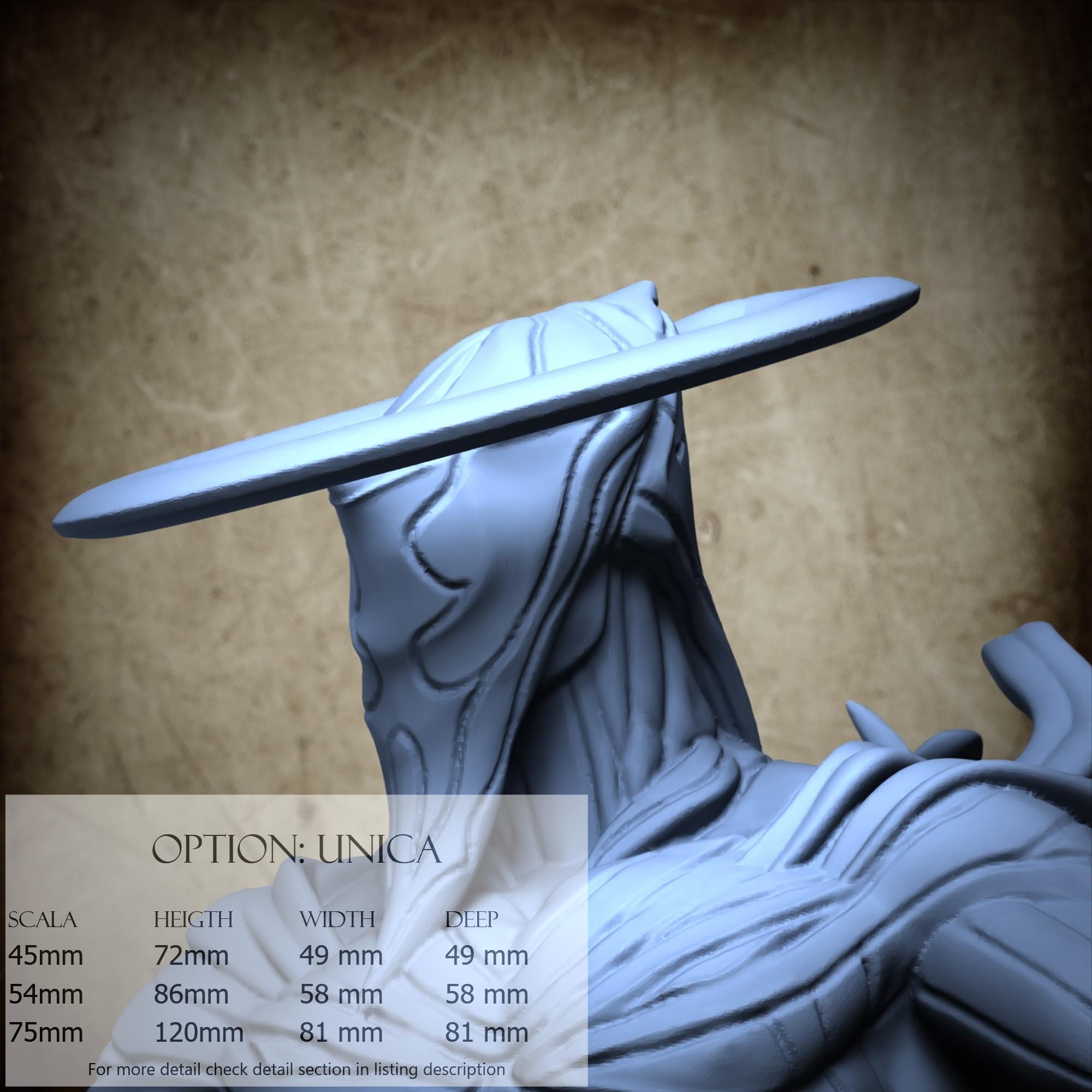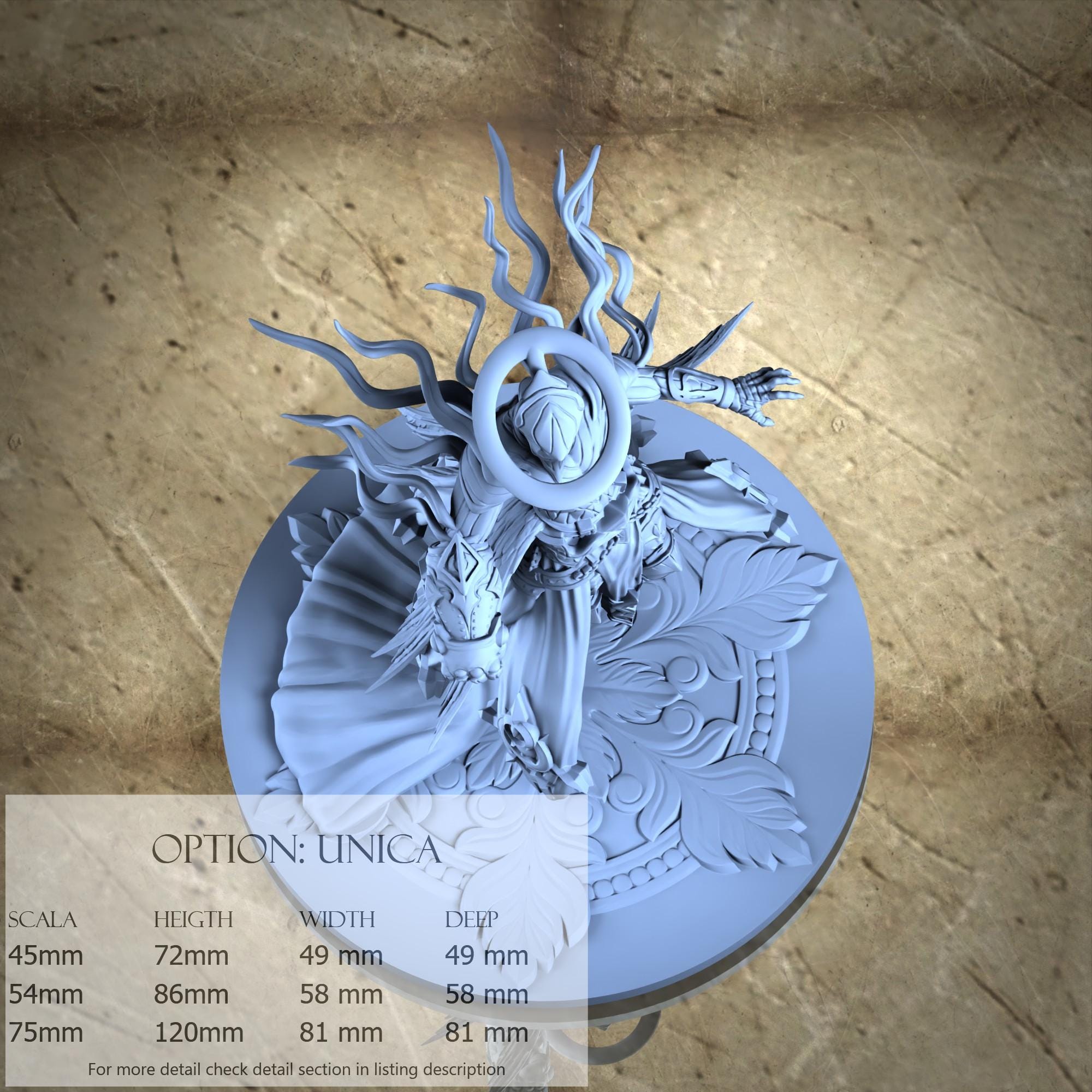 - Base (1 piece) in Resin: Height: 41 mm, Width: 81 mm, Depth: 81 mm