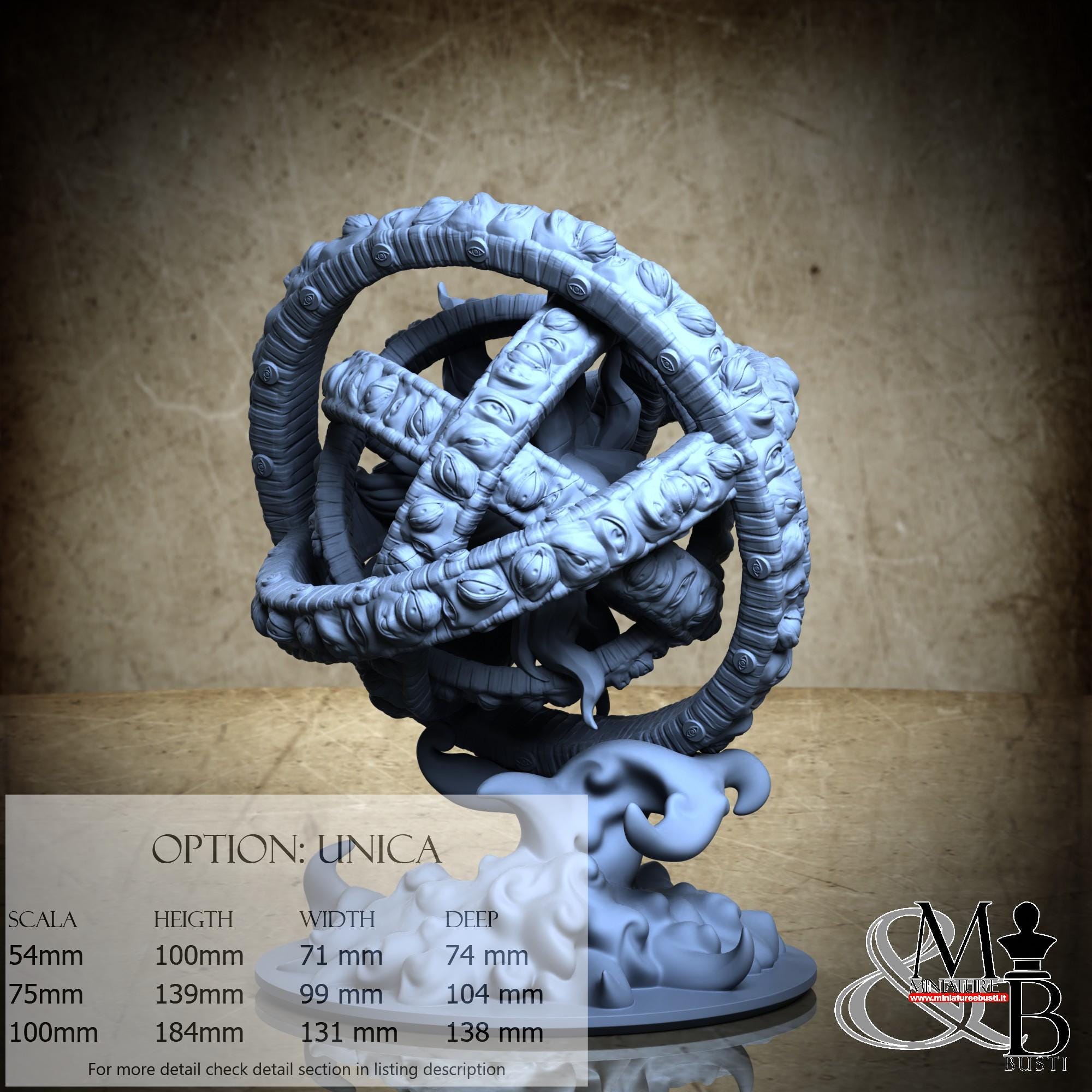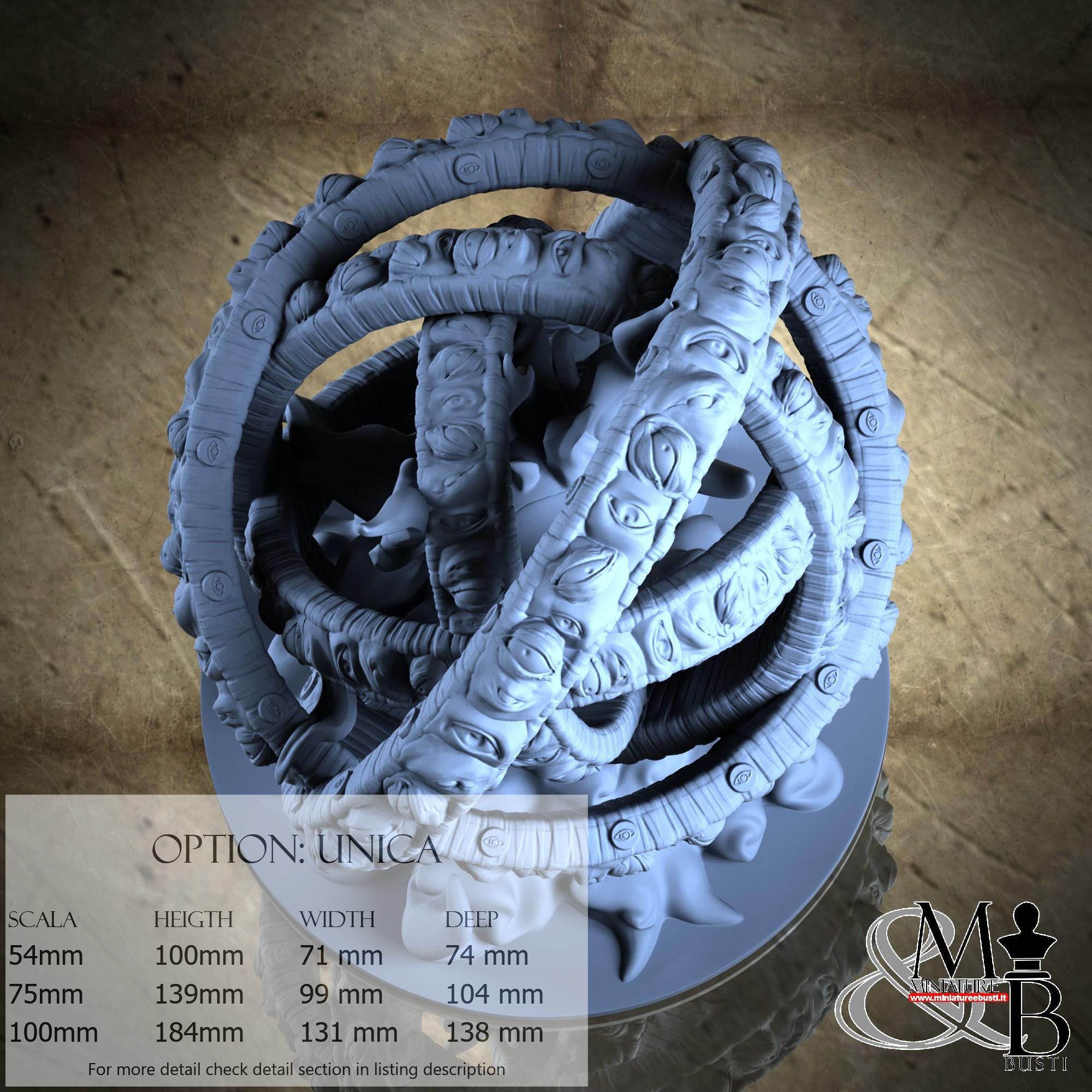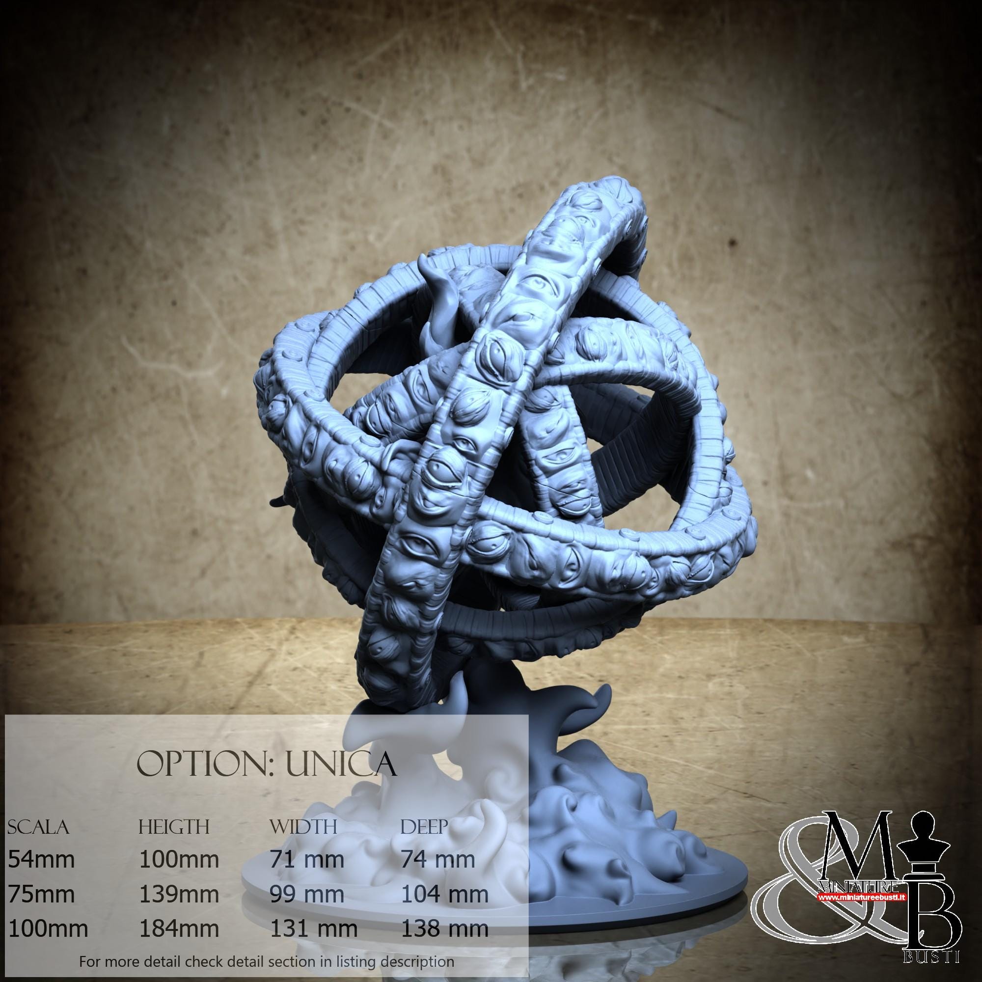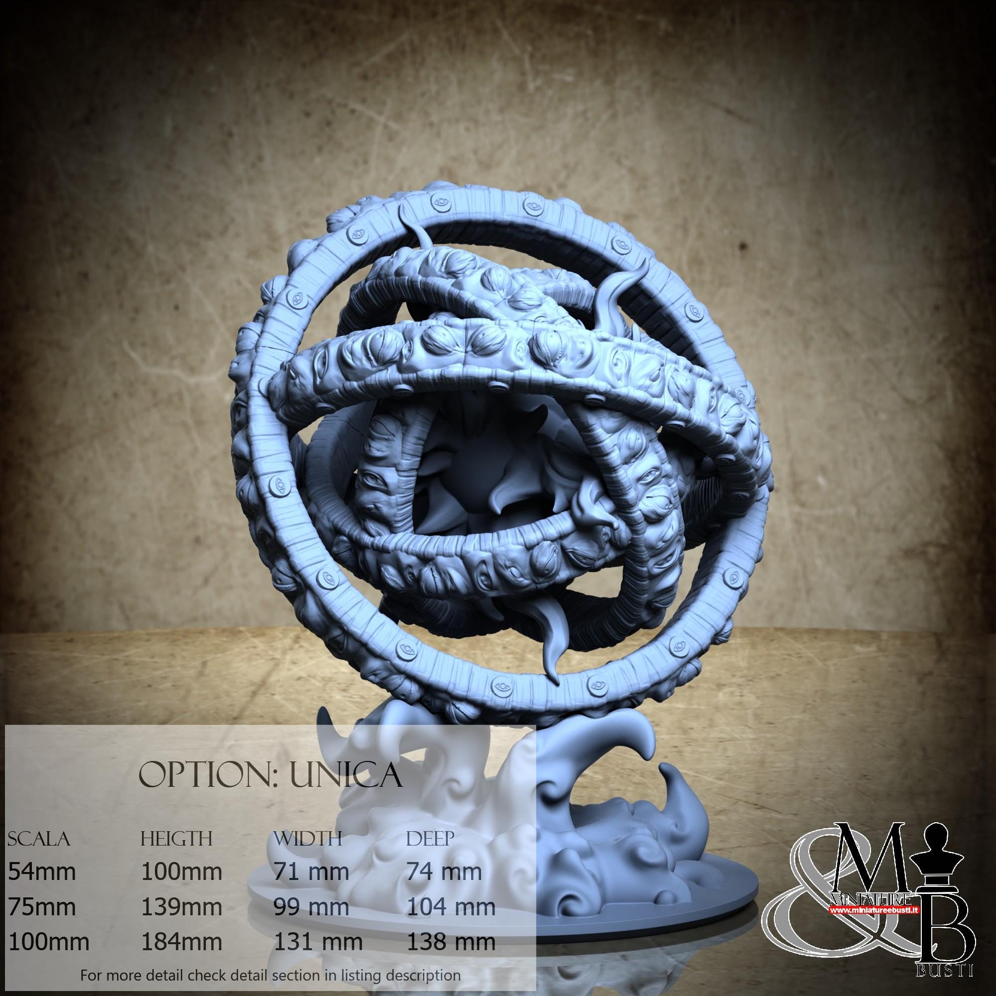 - Ophanim (2 pieces) in Resin: Height: 105 mm, Width: 93 mm, Depth: 104 mm