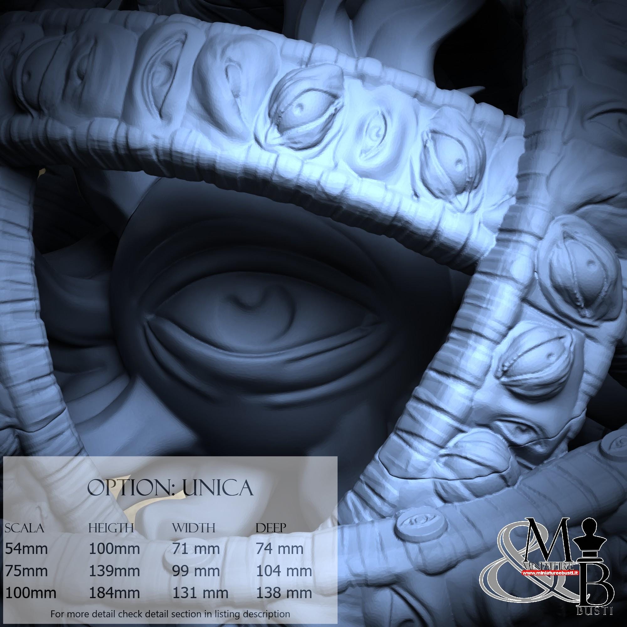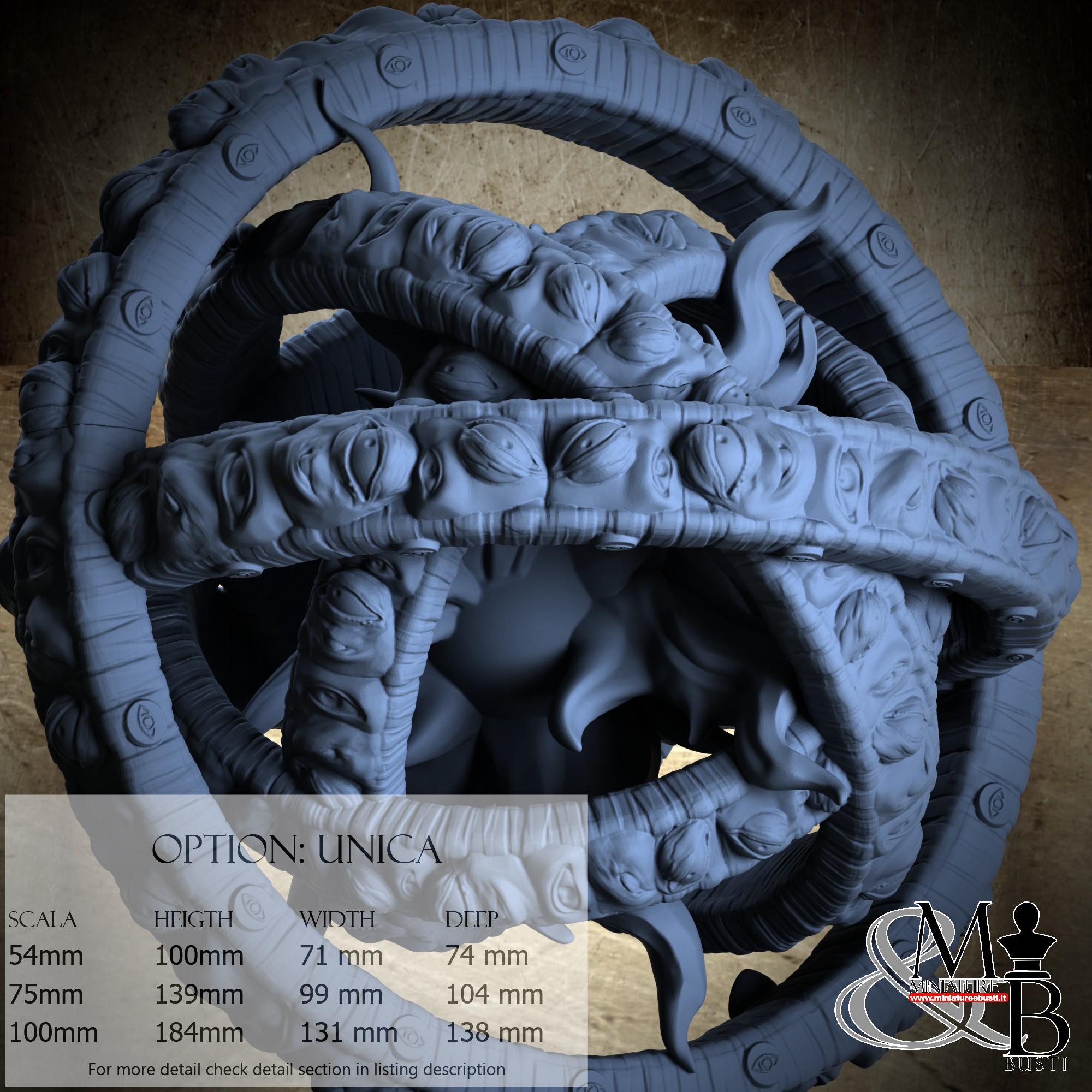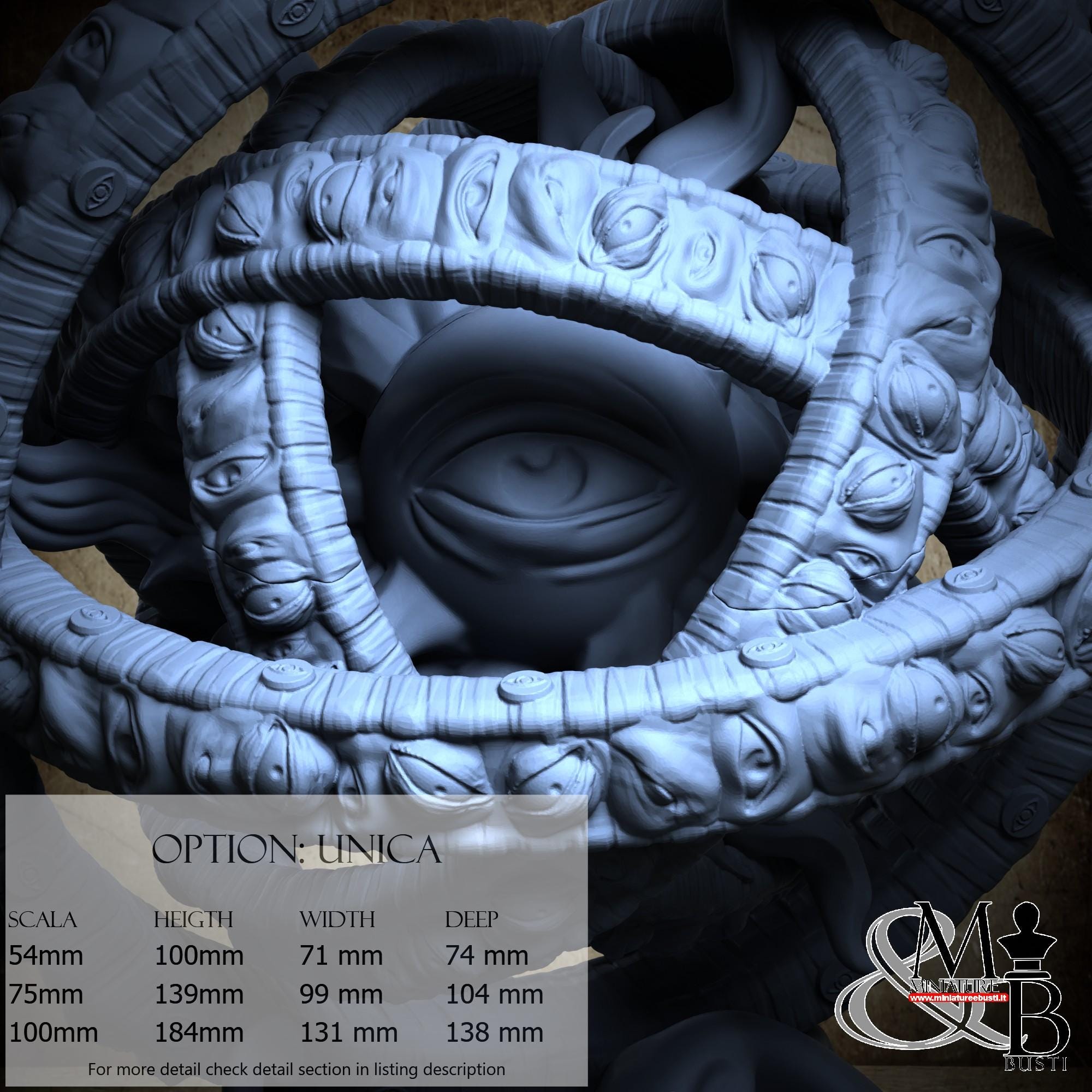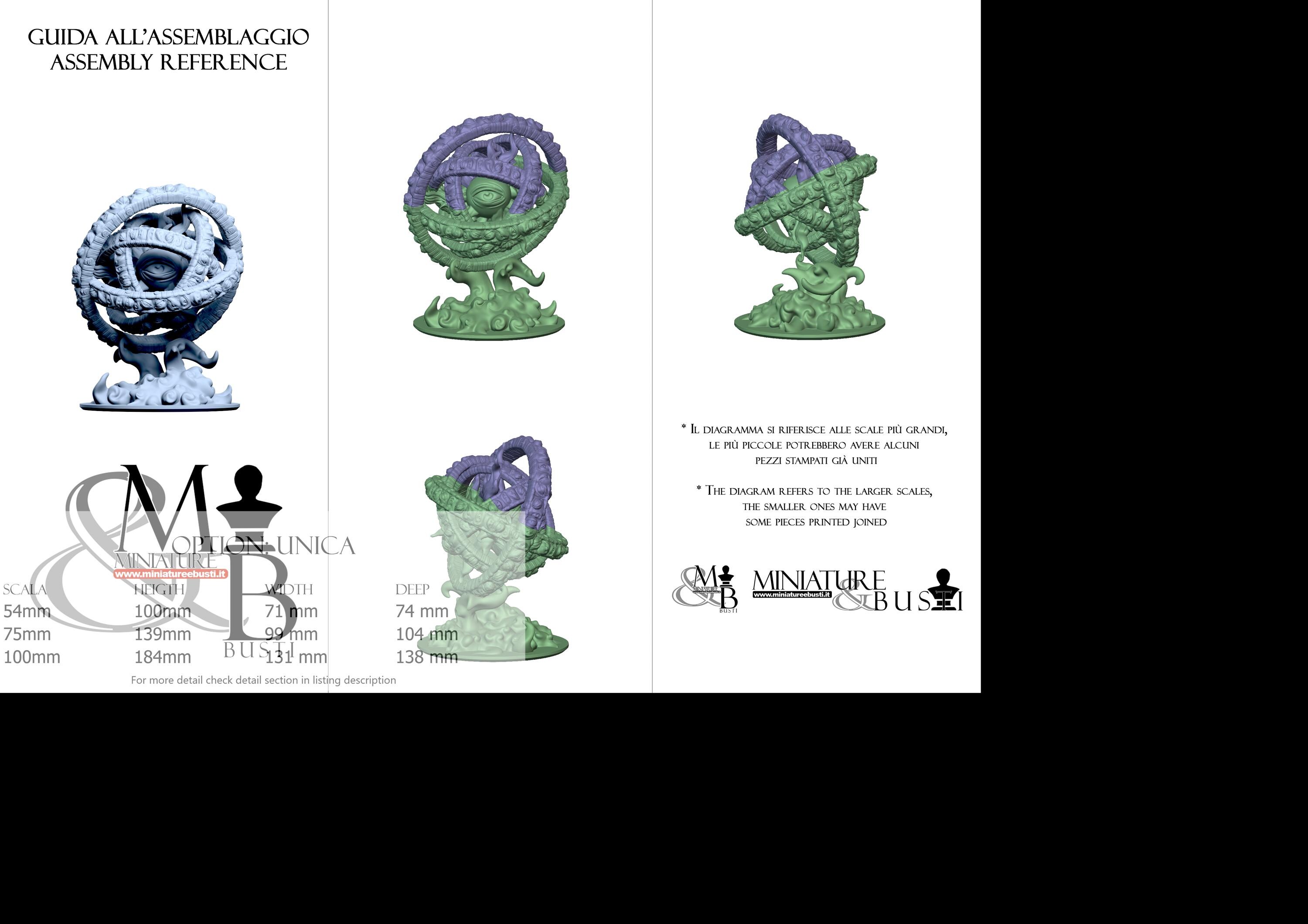 - Ophanim (2 pieces) in Resin: Height: 105 mm, Width: 93 mm, Depth: 104 mm