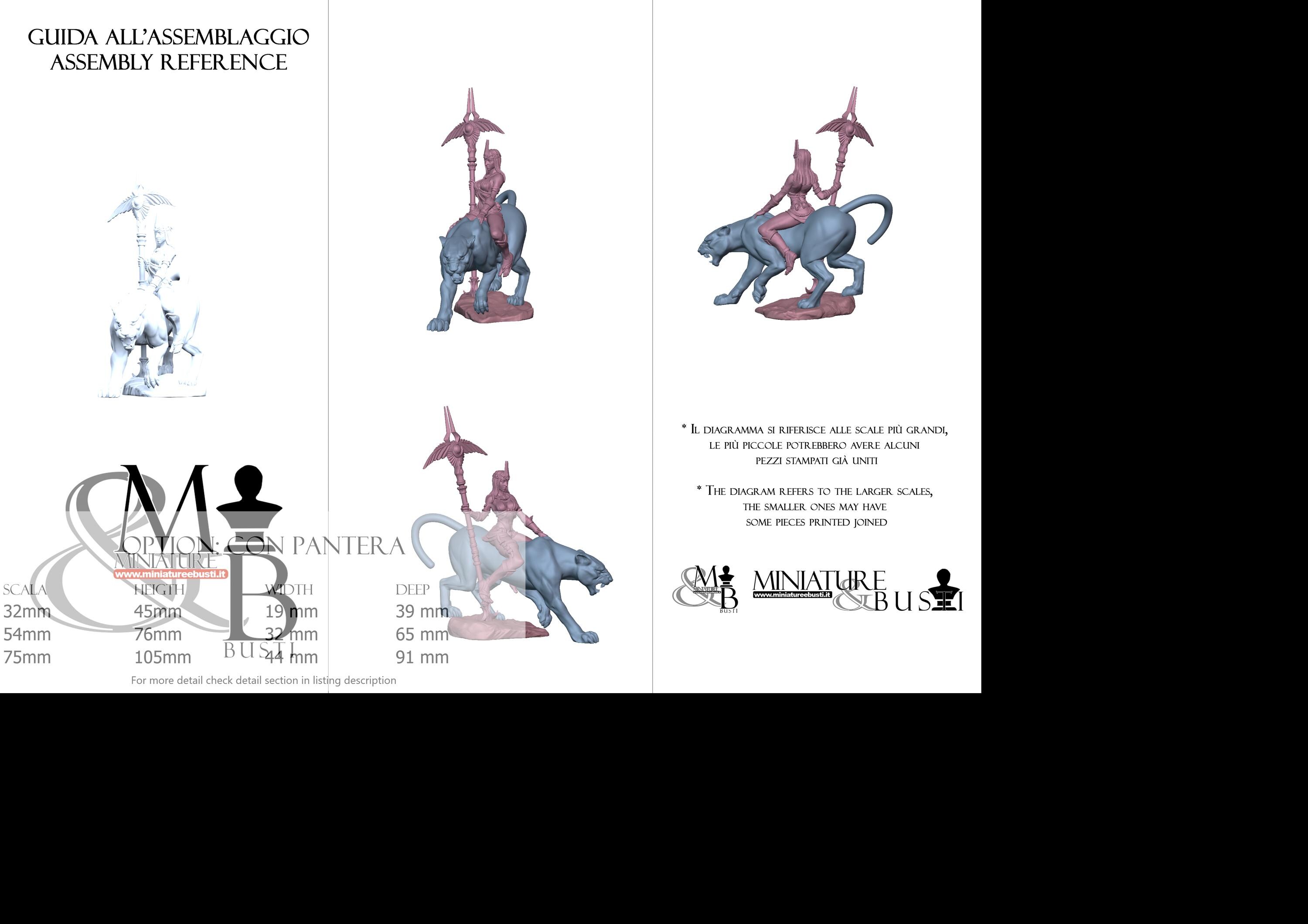 - Panther (1 piece) in Resin: Height: 39 mm, Width: 19 mm, Depth: 23 mm