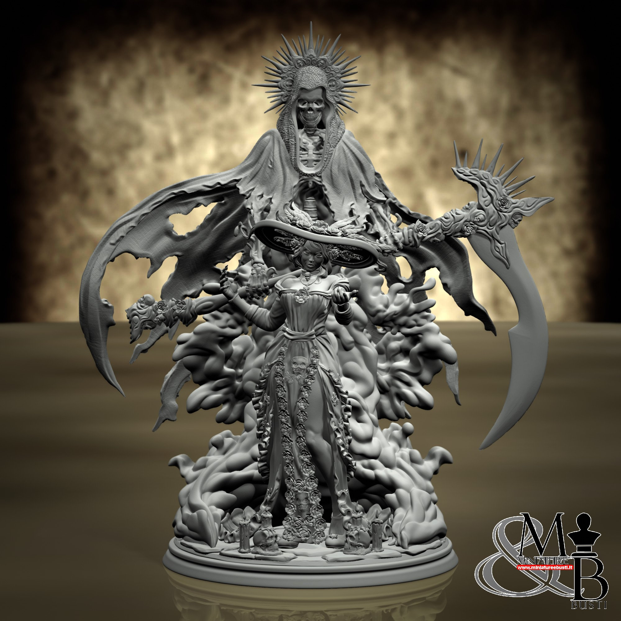 - Death (4 pieces) in Resin: Height: 143 mm, Width: 132 mm, Depth: 76 mm