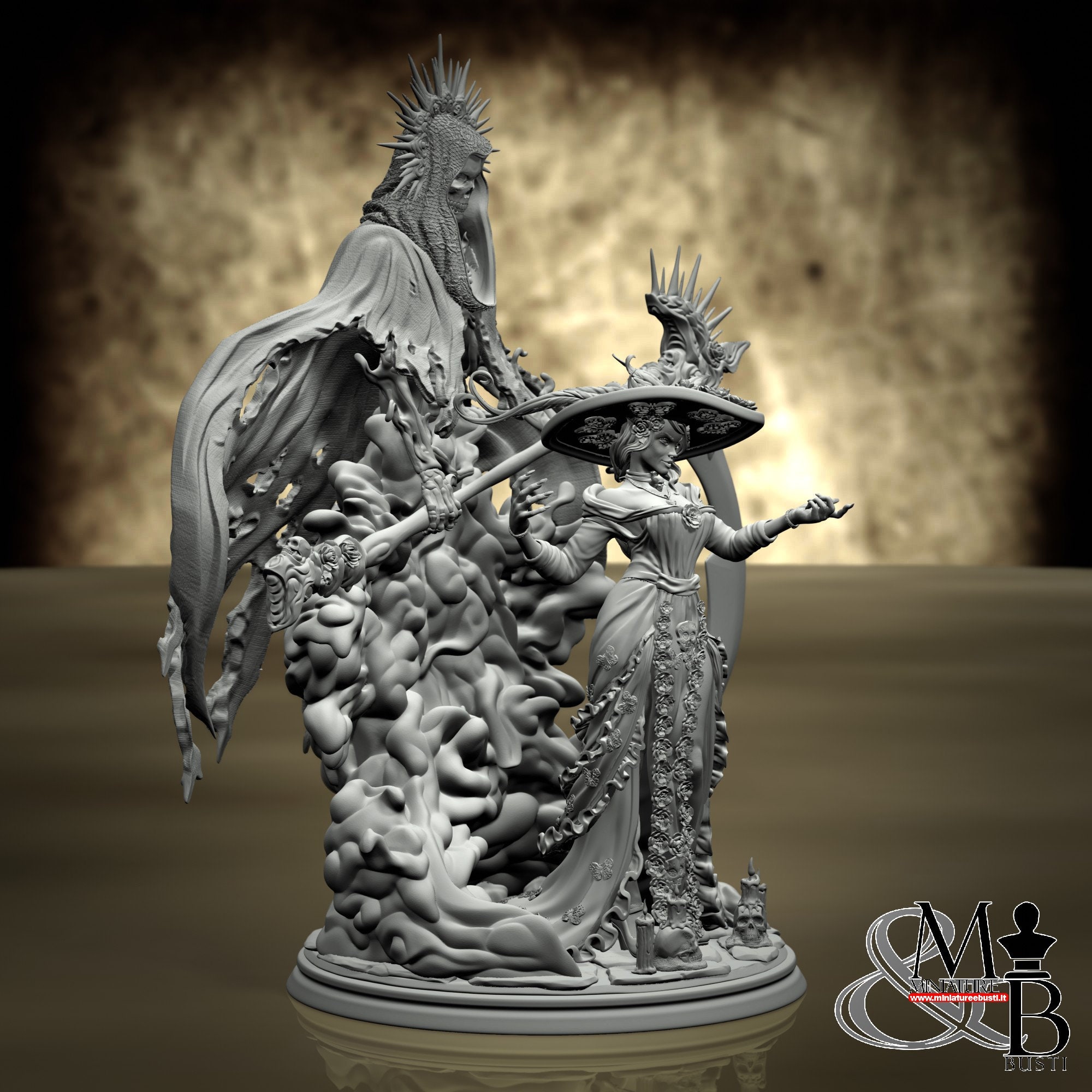 - Death (4 pieces) in Resin: Height: 103 mm, Width: 95 mm, Depth: 55 mm