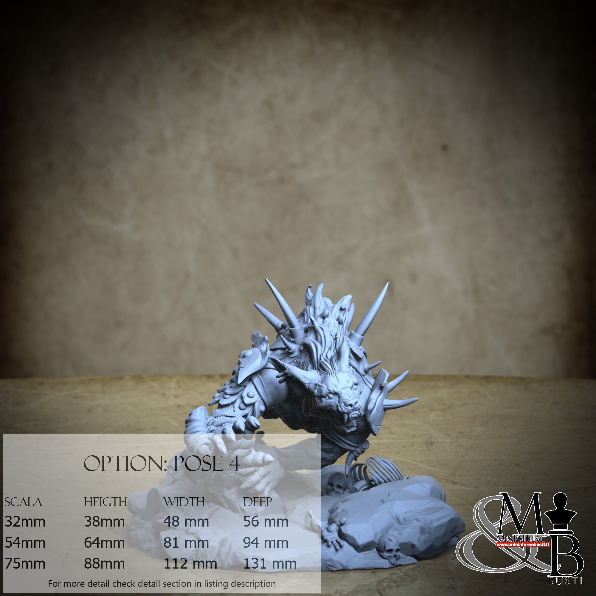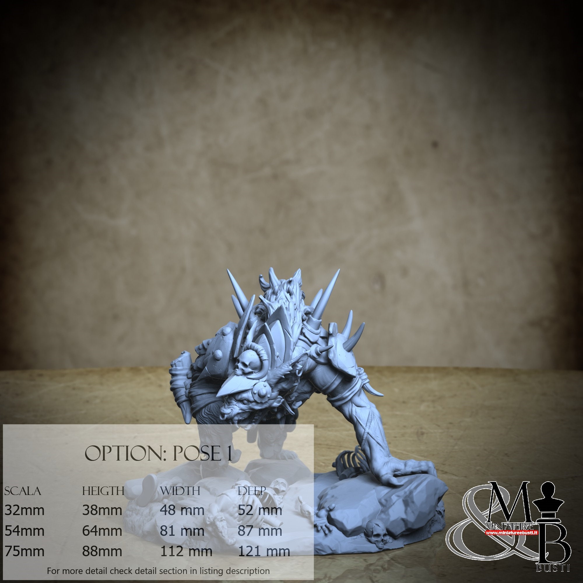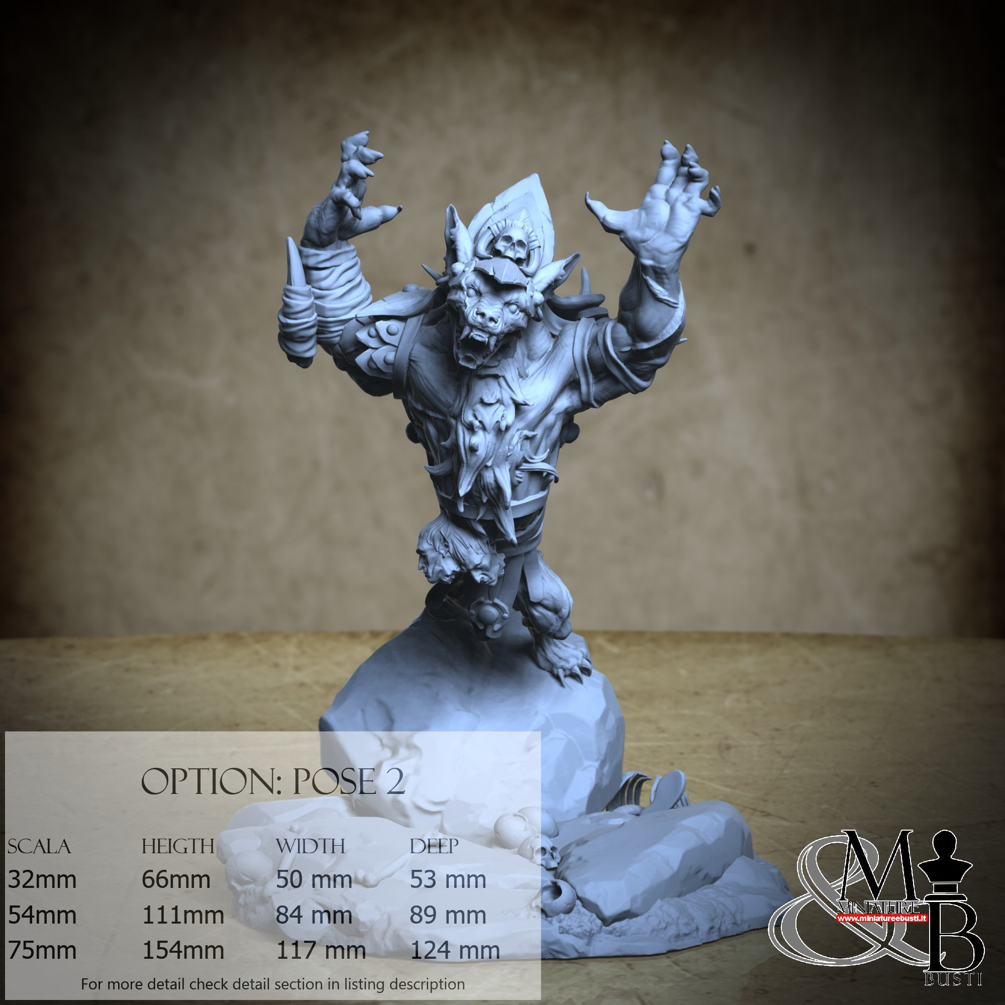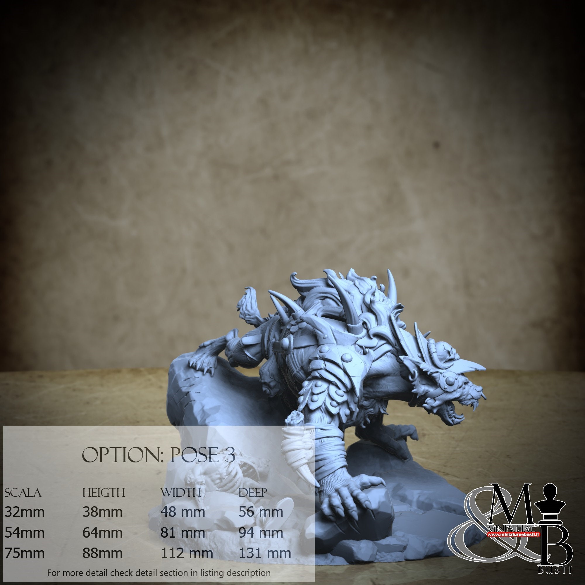 - Gnoll (1 pezzi) in Resina : Altezza: 109 mm, Larghezza: 62 mm, Profondità: 79 mm