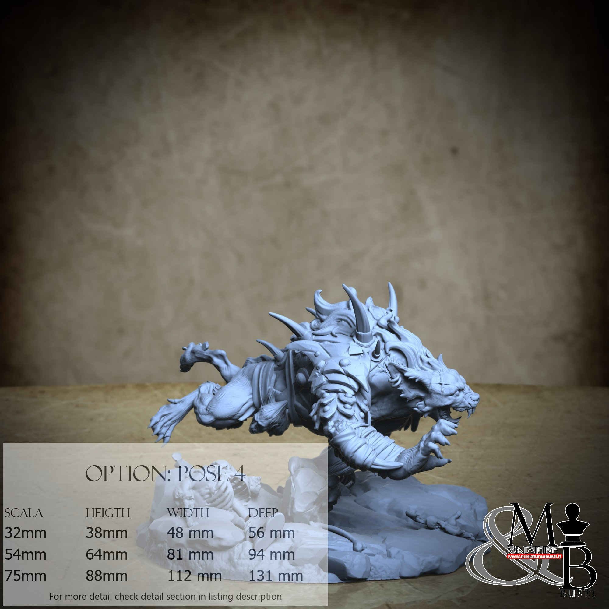 - Gnoll (1 pezzi) in Resina : Altezza: 32 mm, Larghezza: 39 mm, Profondità: 44 mm