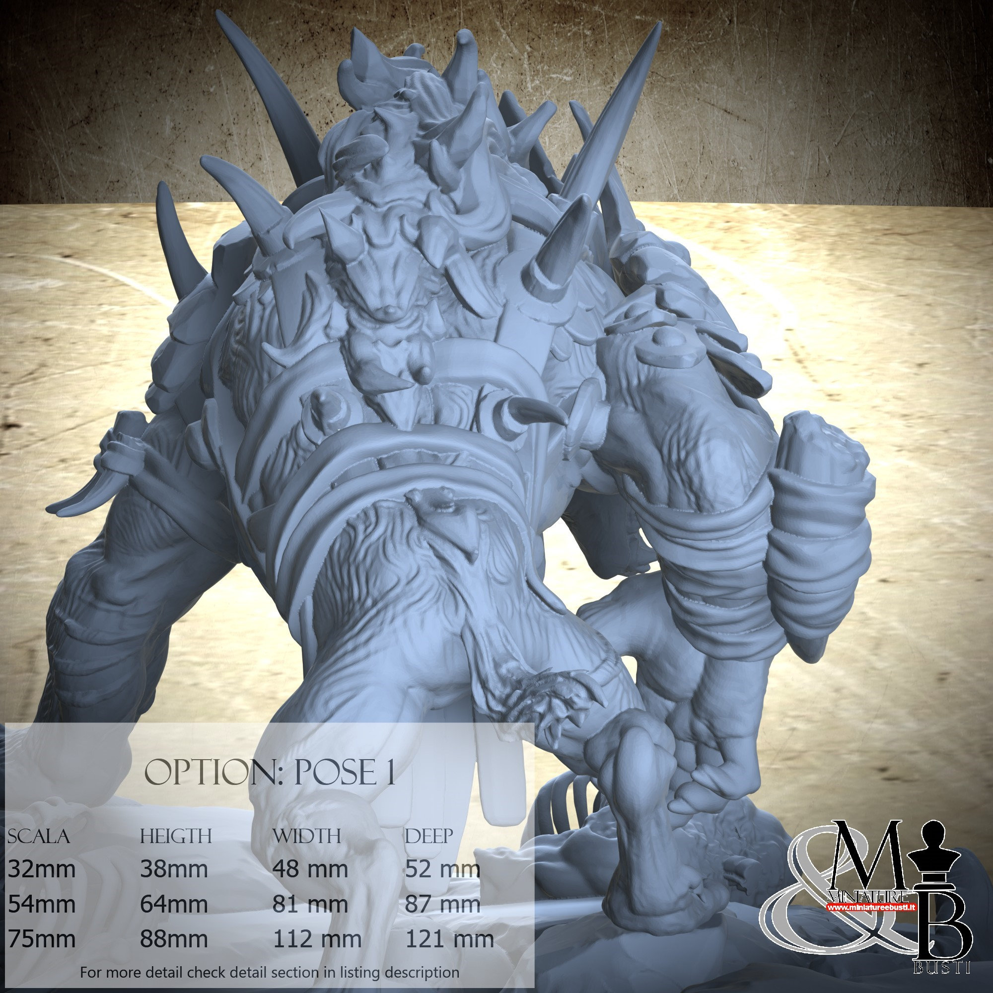 - Gnoll (1 pezzi) in Resina : Altezza: 54 mm, Larghezza: 70 mm, Profondità: 84 mm