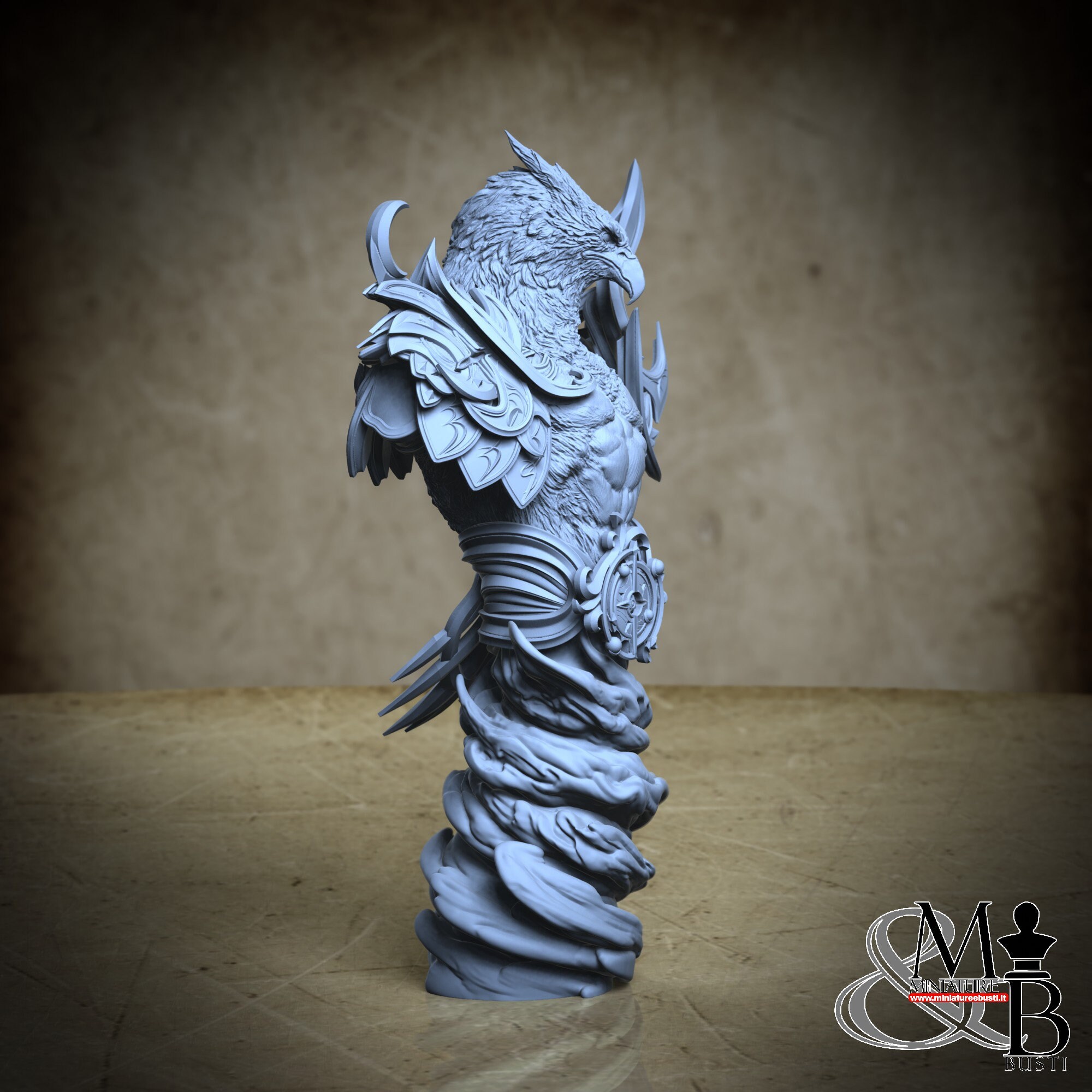 - Bust (1 piece) in Resin: Height: 108 mm, Width: 97 mm, Depth: 53 mm