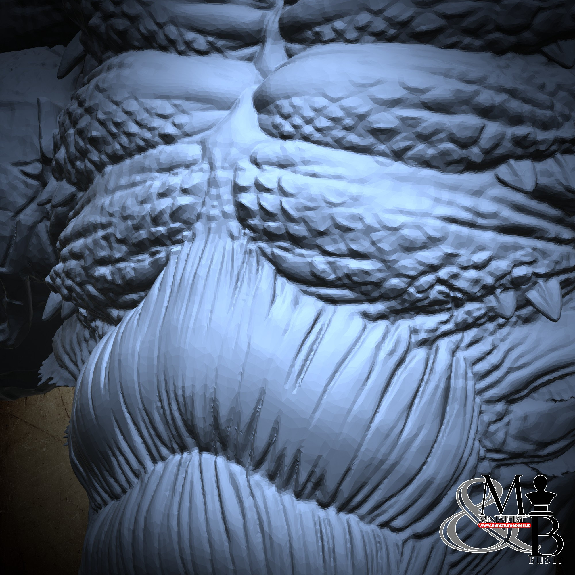 - Bust (1 piece) in Resin: Height: 92 mm, Width: 105 mm, Depth: 43 mm