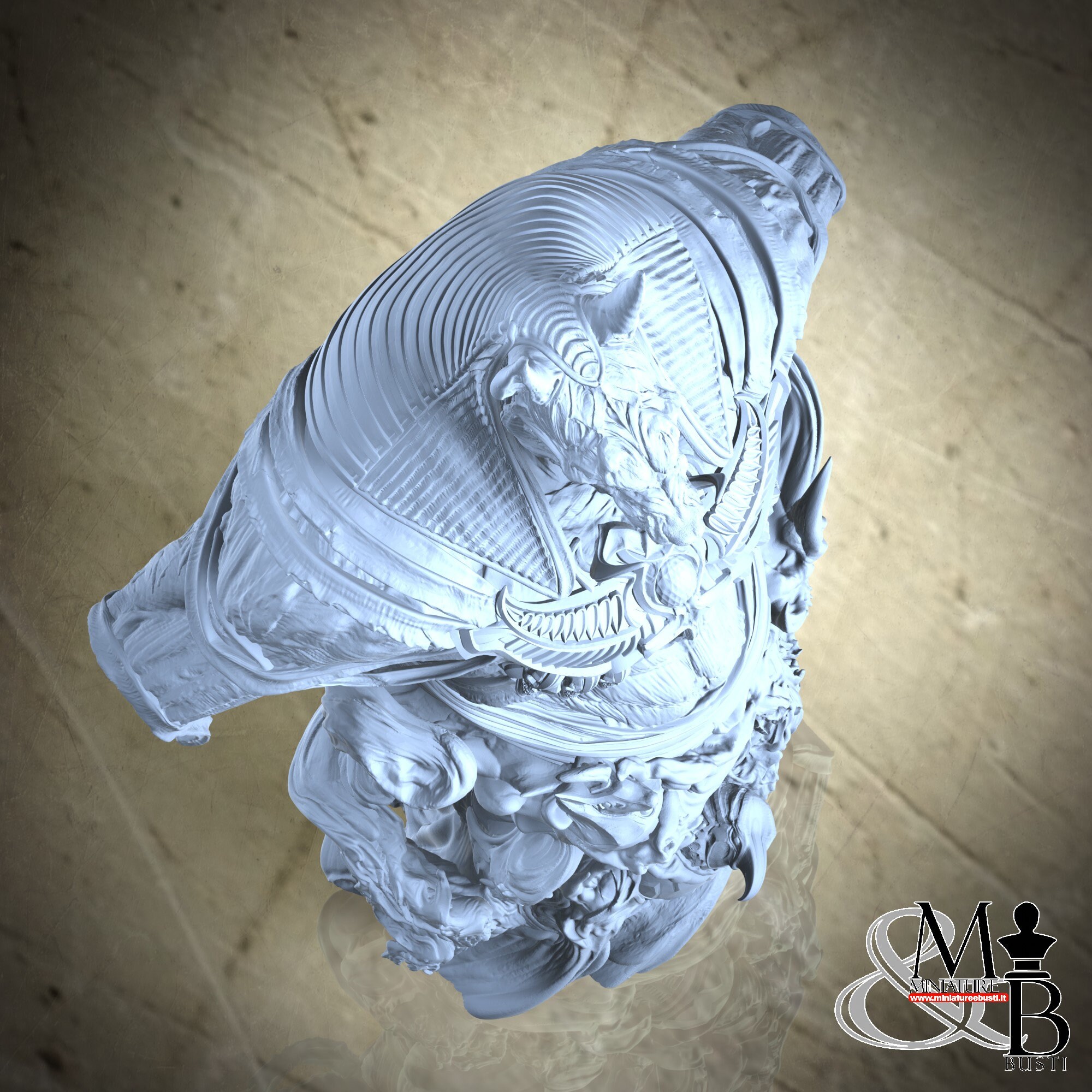 - Bust (1 piece) in Resin: Height: 96 mm, Width: 87 mm, Depth: 44 mm