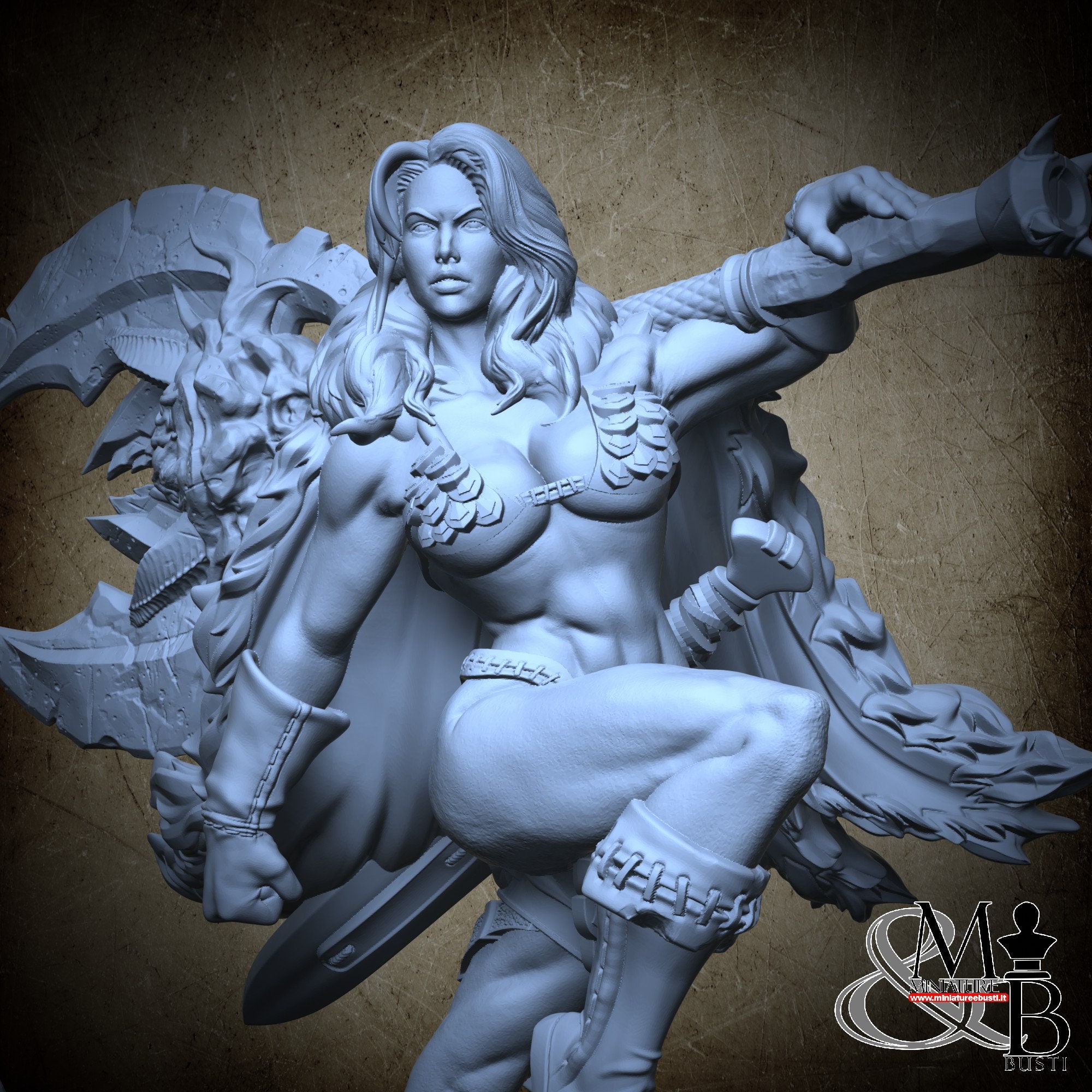 - Red Sonja (1 piece) in Resin: Height: 59 mm, Width: 59 mm, Depth: 30 mm