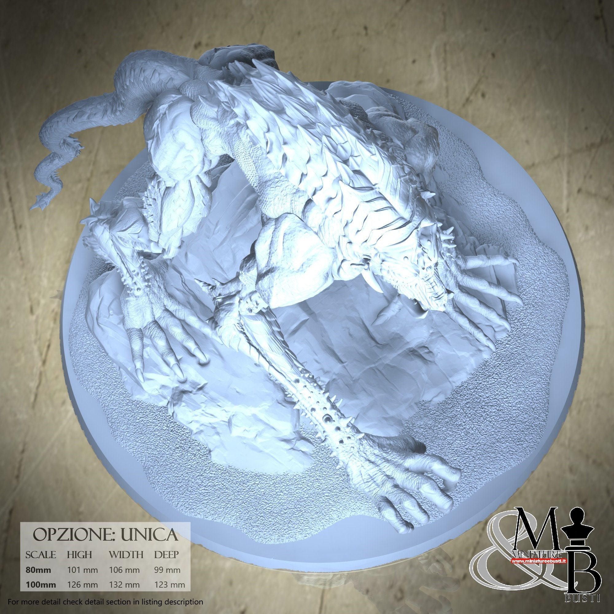 - Base (1 piece) in Resin: Height: 16 mm, Width: 123 mm, Depth: 123 mm