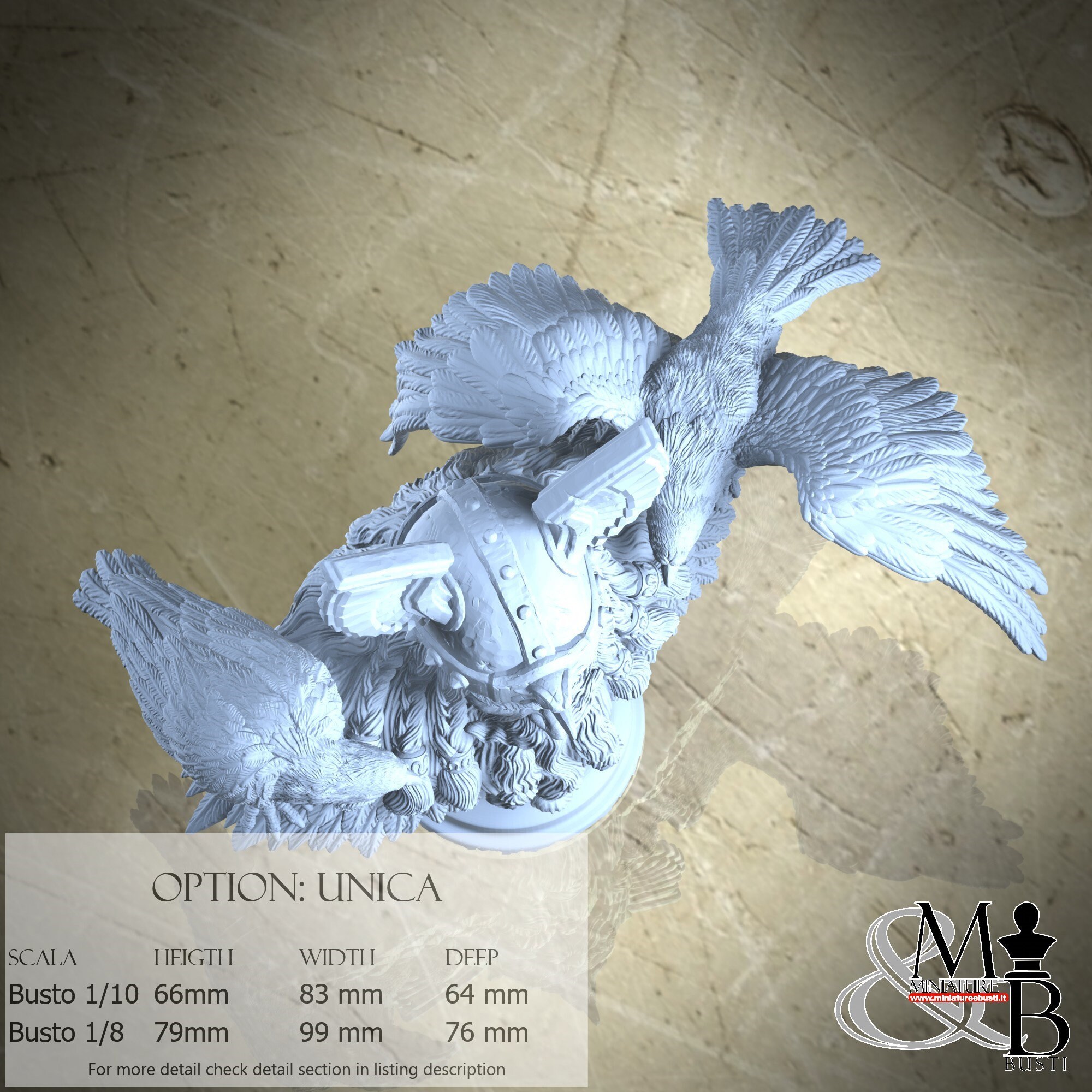 1/8 Bust Scale, cost €45.00 (Height: 79 mm, Width: 99 mm, Depth: 76 mm), composed of the following components: