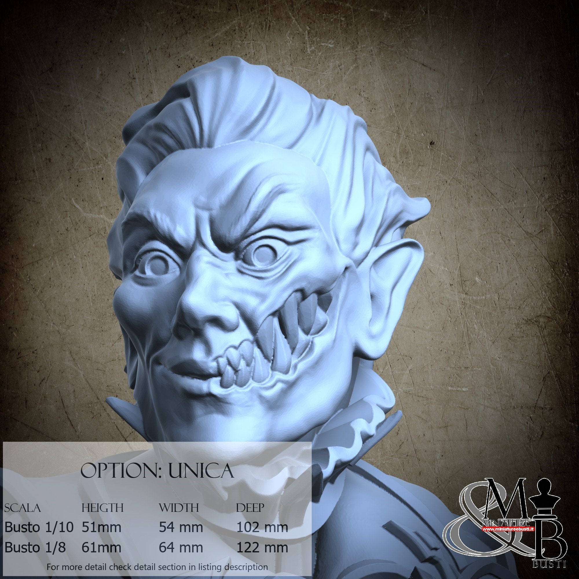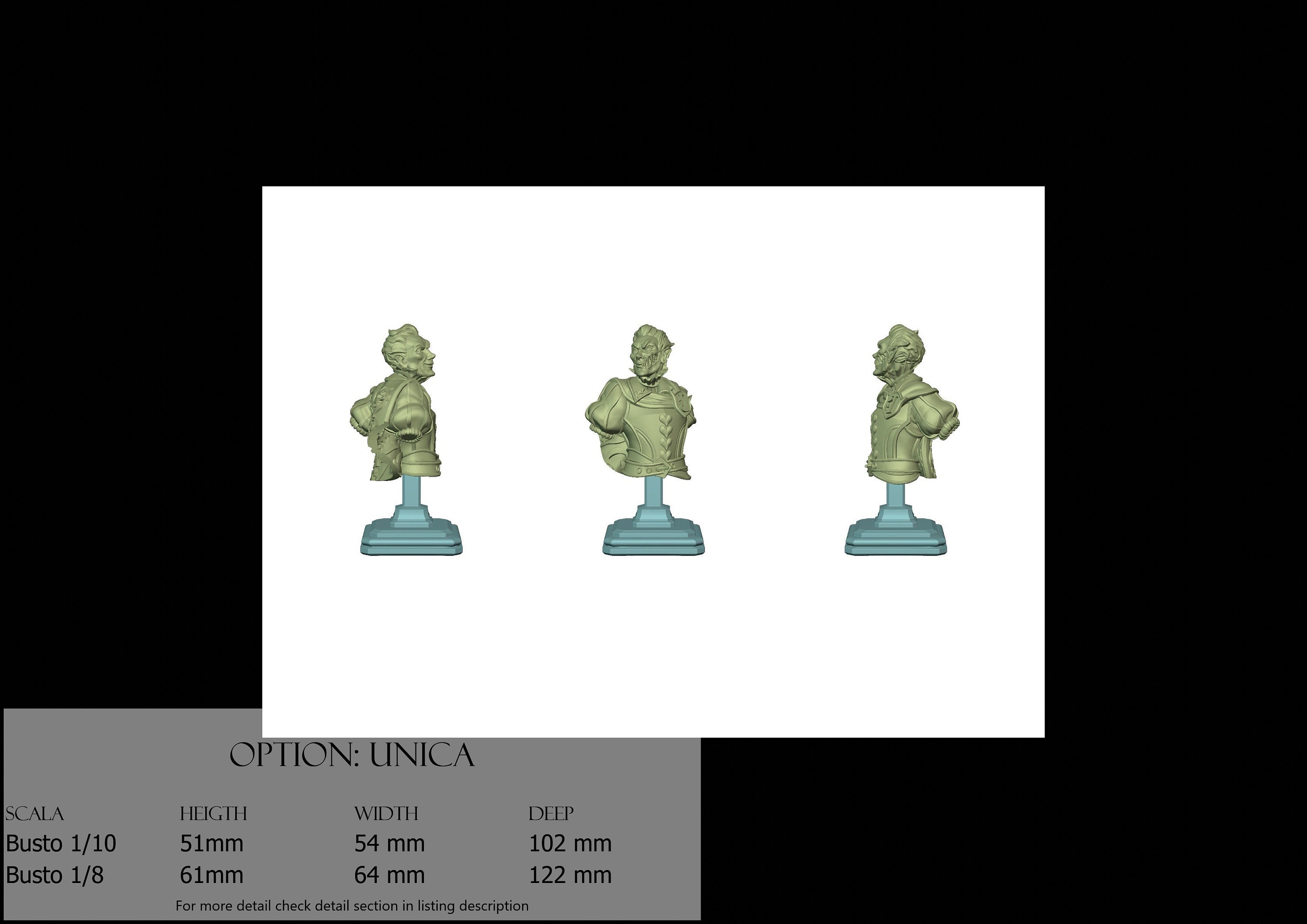 Bust Scale 1/10, cost €. 35.00 (Height: 51 mm, Width: 54 mm, Depth: 102 mm), composed of the following components: