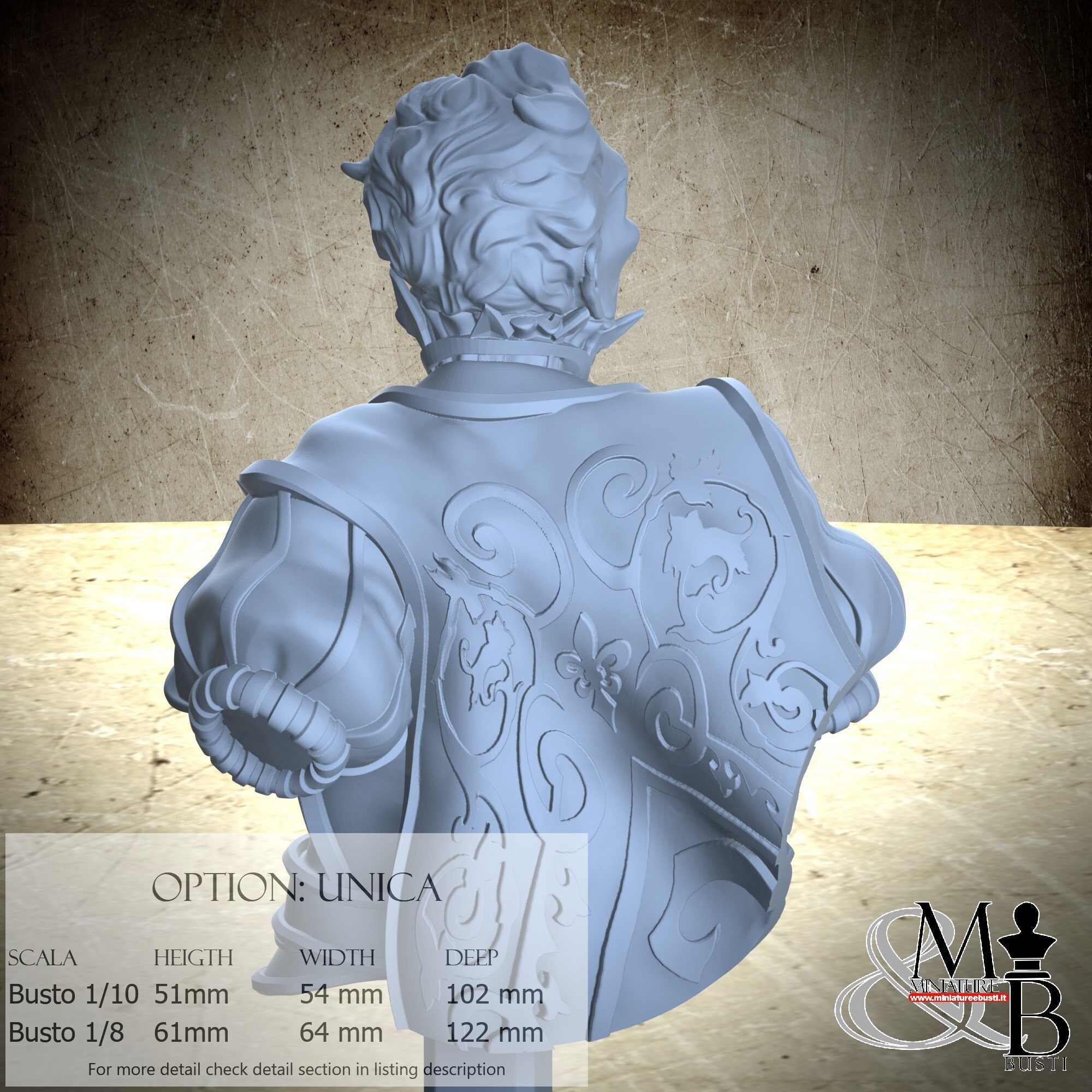 Bust Scale 1/8, cost €. 45.00 (Height: 61 mm, Width: 64 mm, Depth: 122 mm), composed of the following components: