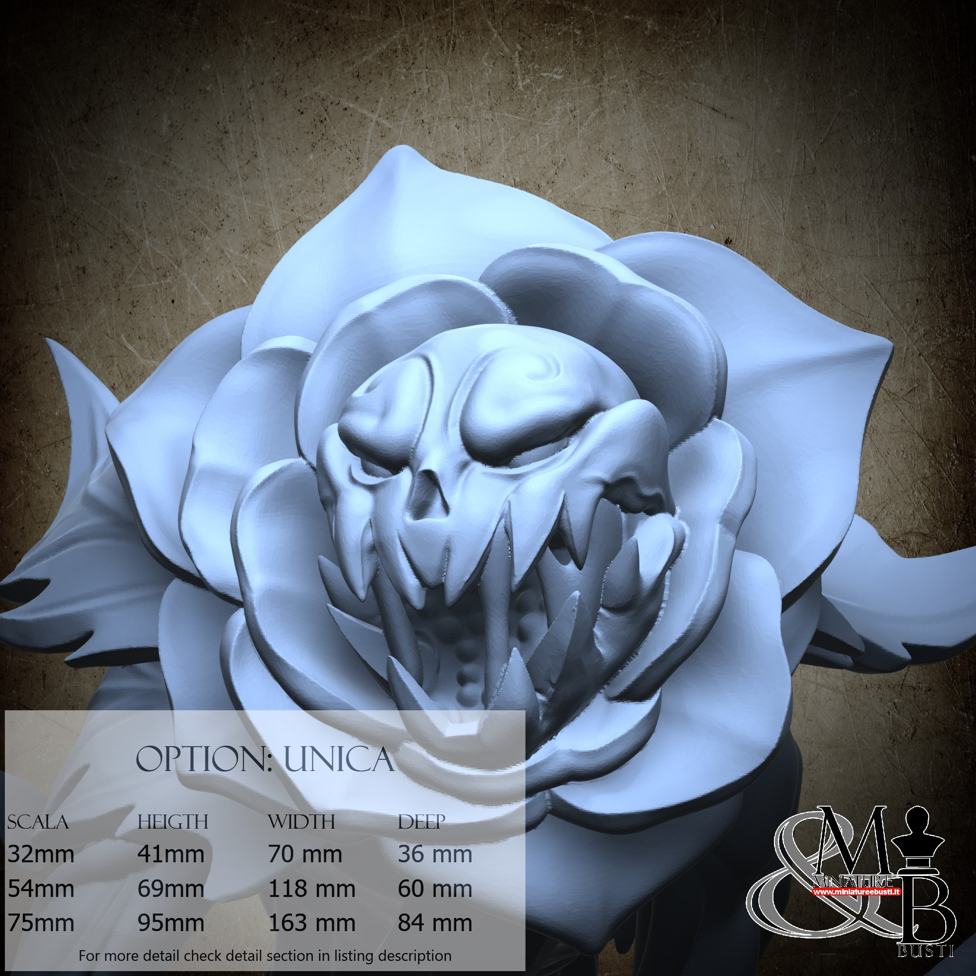 - Carnivorous (1 piece) in Resin: Height: 56 mm, Width: 37 mm, Depth: 32 mm