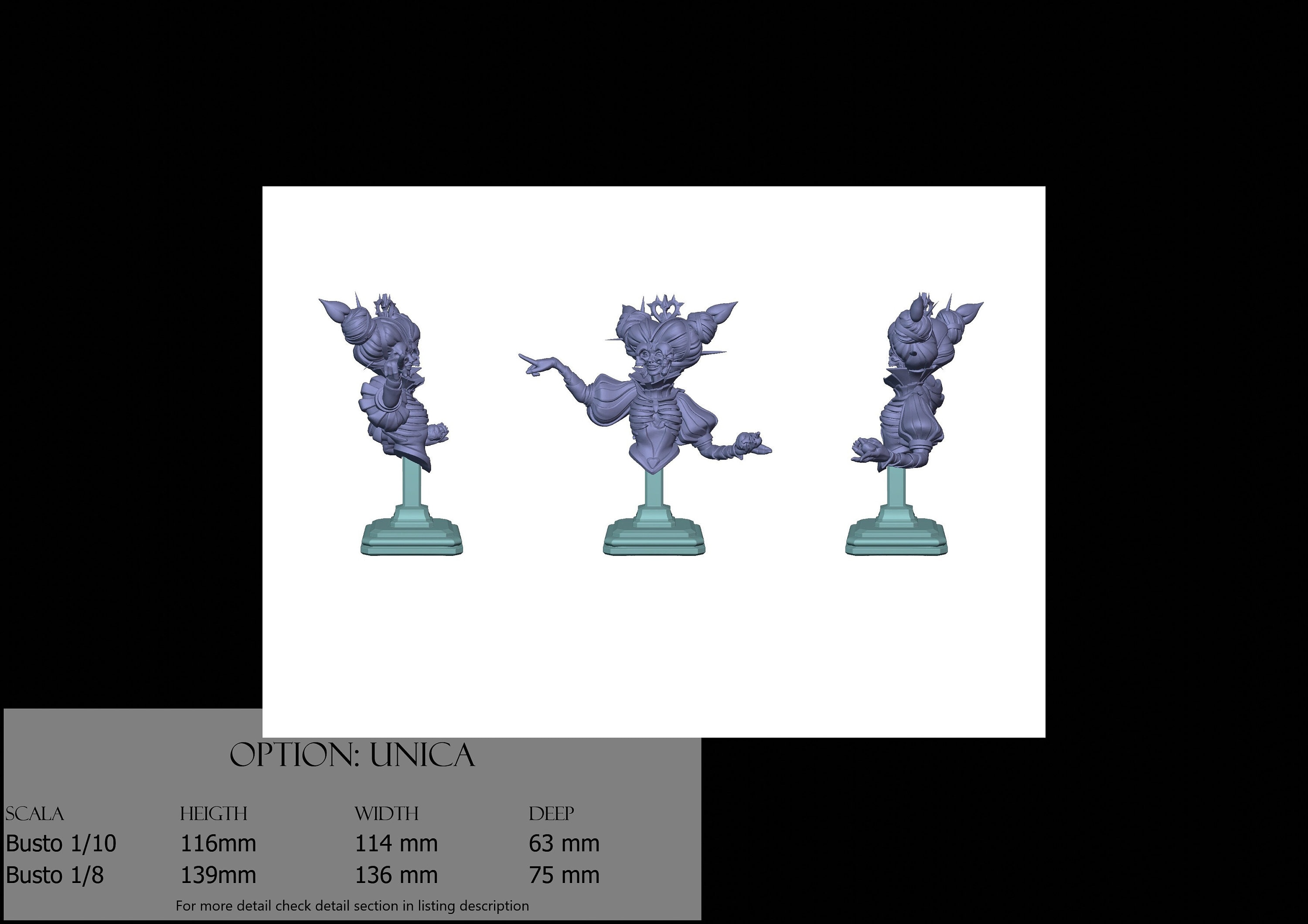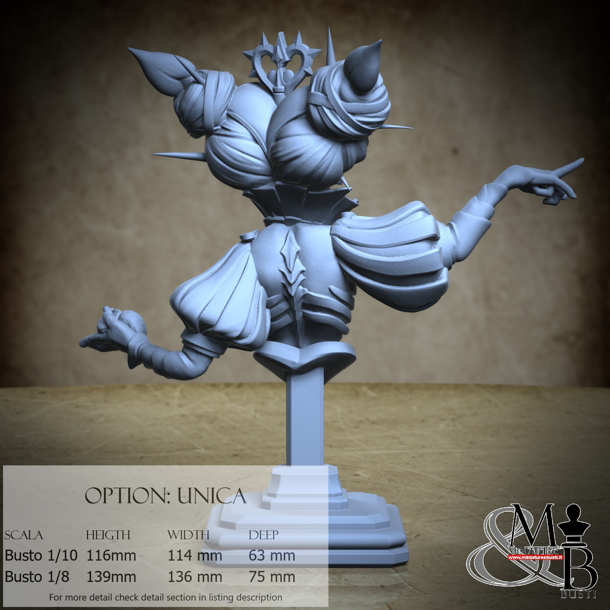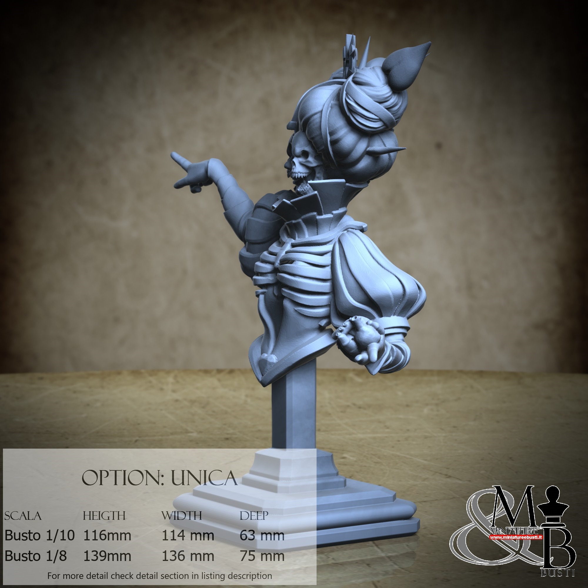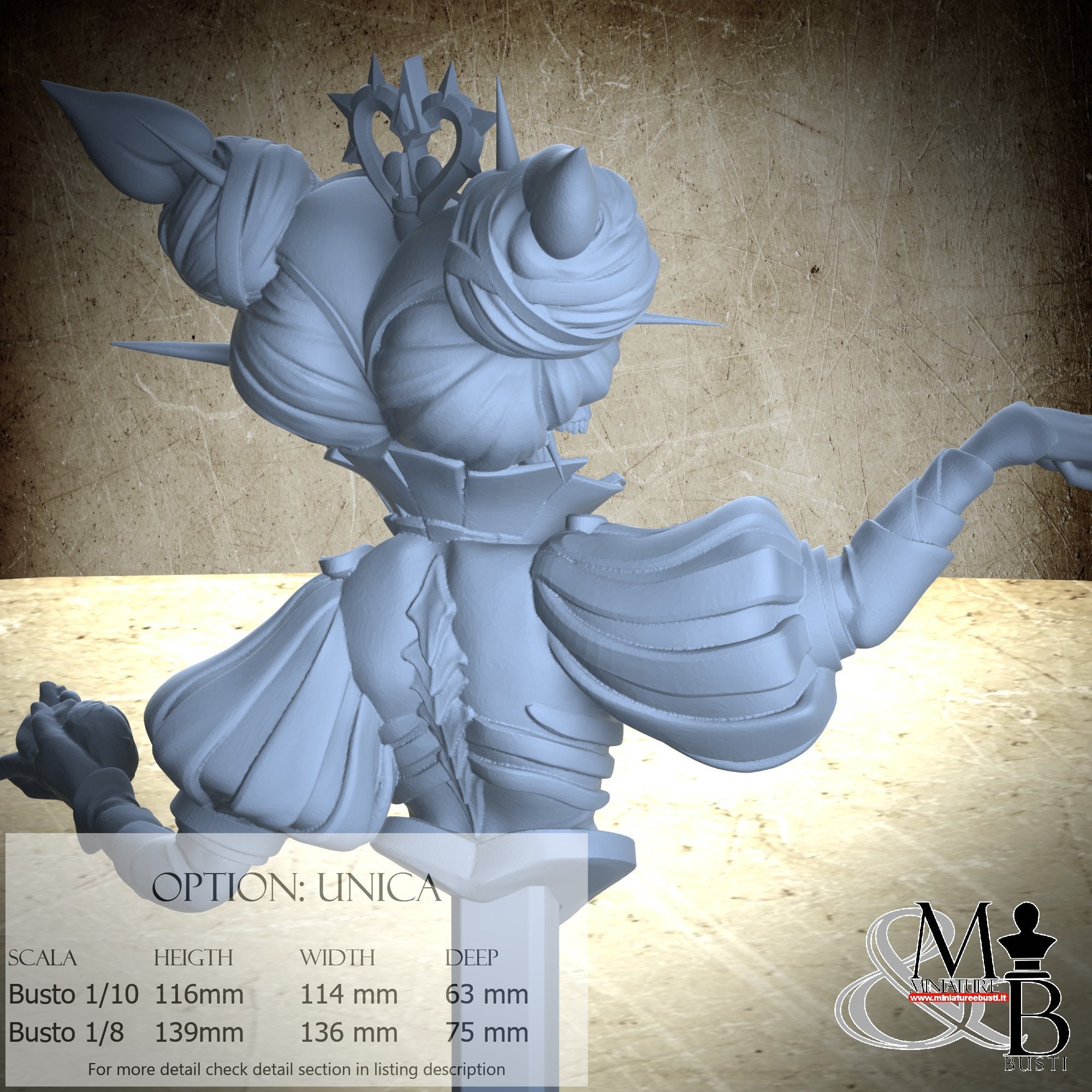 Bust Scale 1/10, cost €. 35.00 (Height: 116 mm, Width: 114 mm, Depth: 63 mm), composed of the following components: