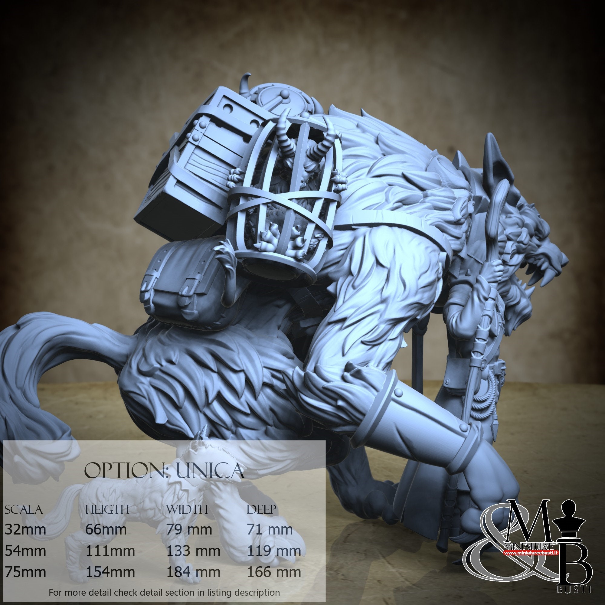 - Beast (6 pieces) in Resin: Height: 111 mm, Width: 133 mm, Depth: 119 mm