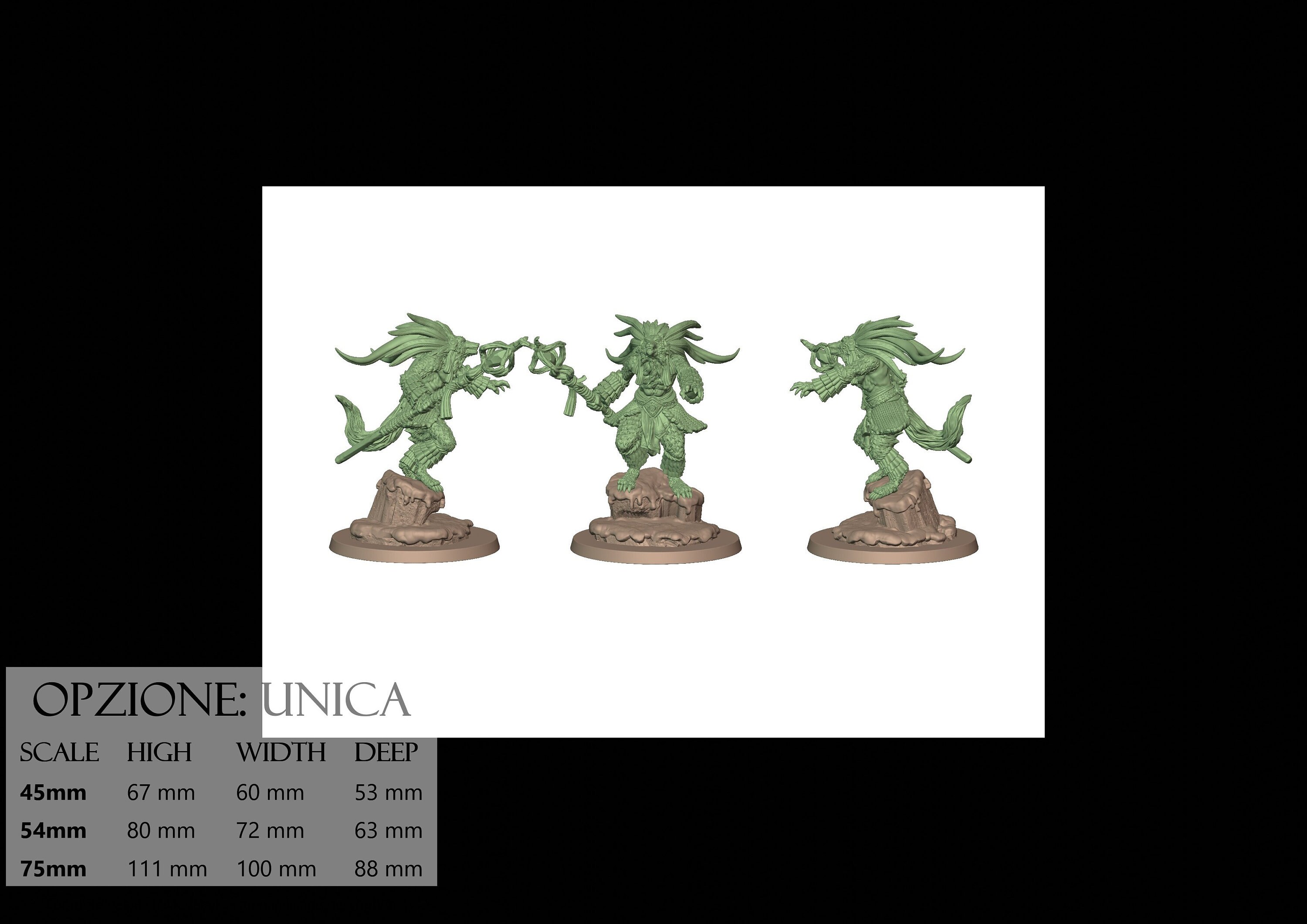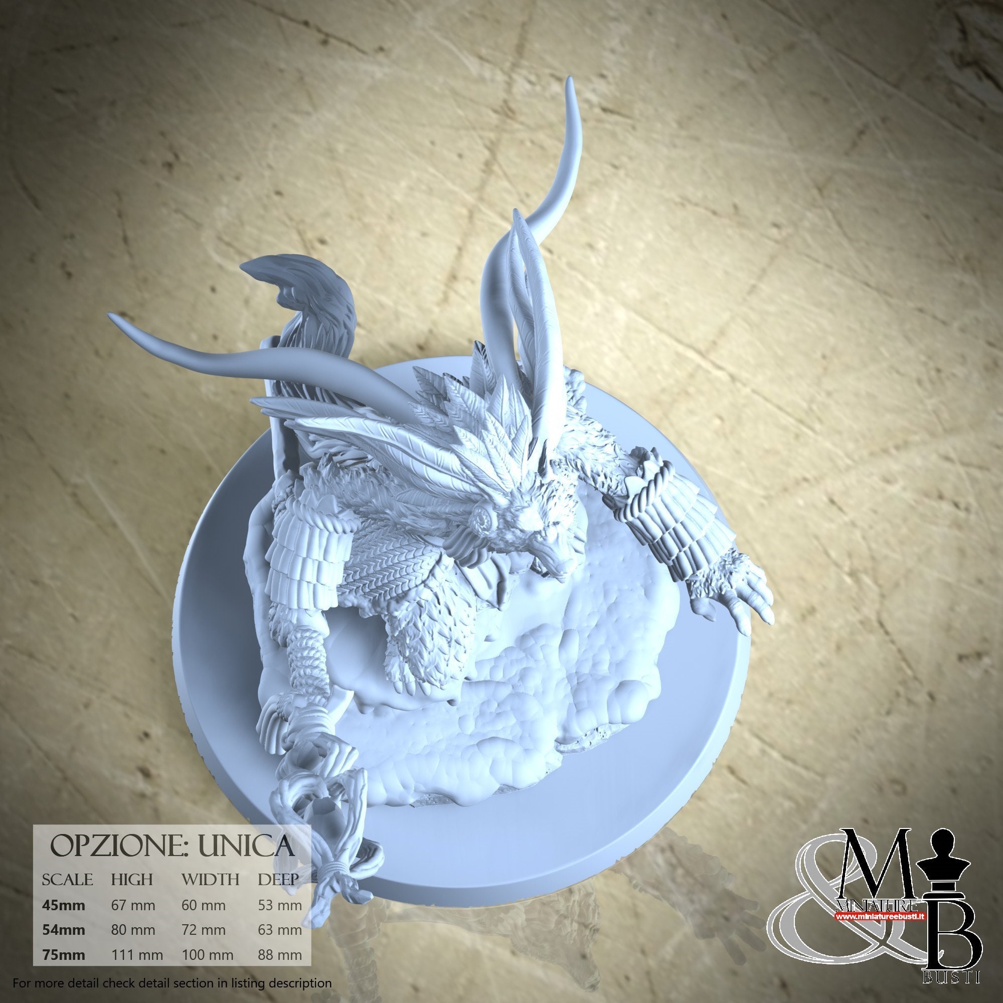 - Base (1 piece) in Resin: Height: 36 mm, Width: 81 mm, Depth: 81 mm