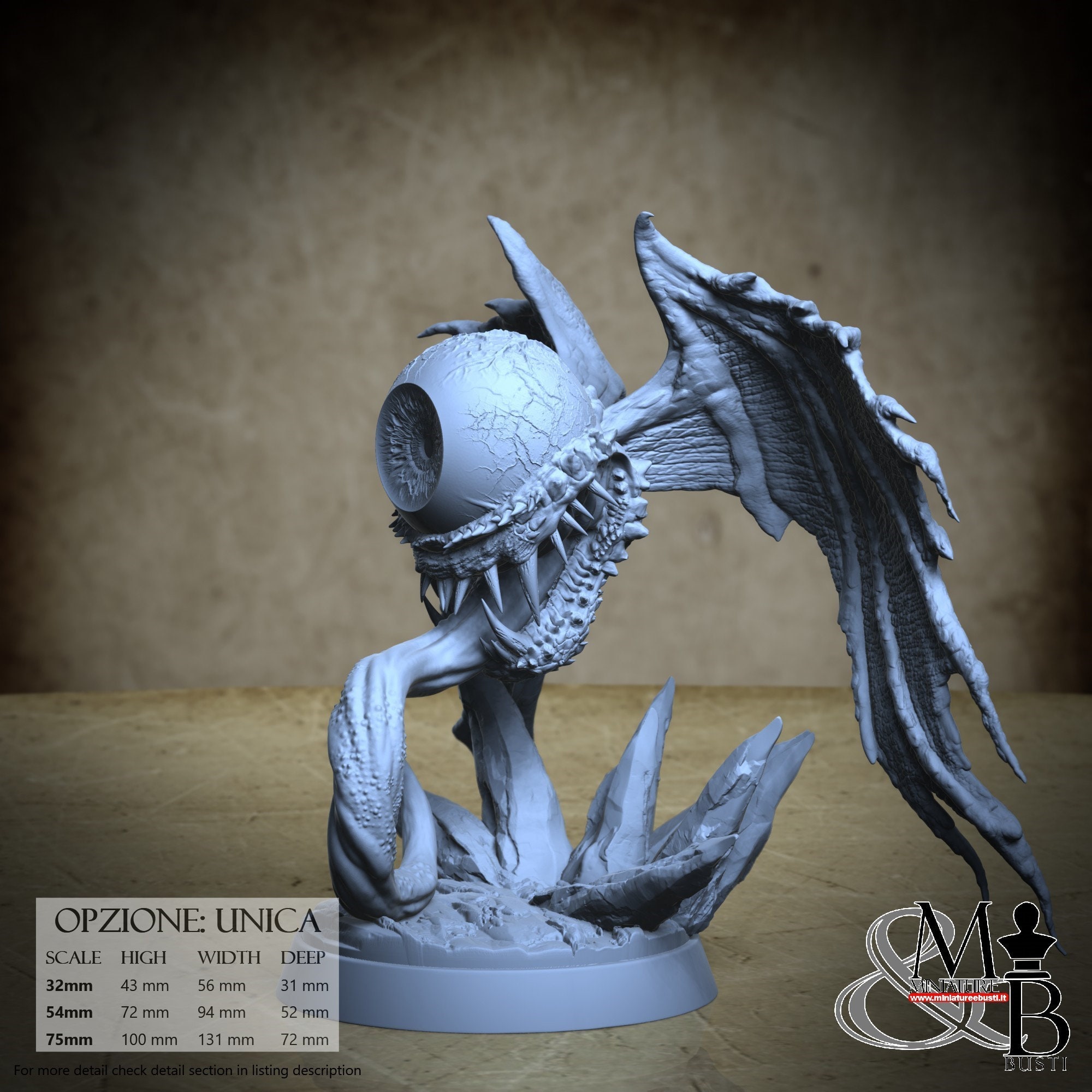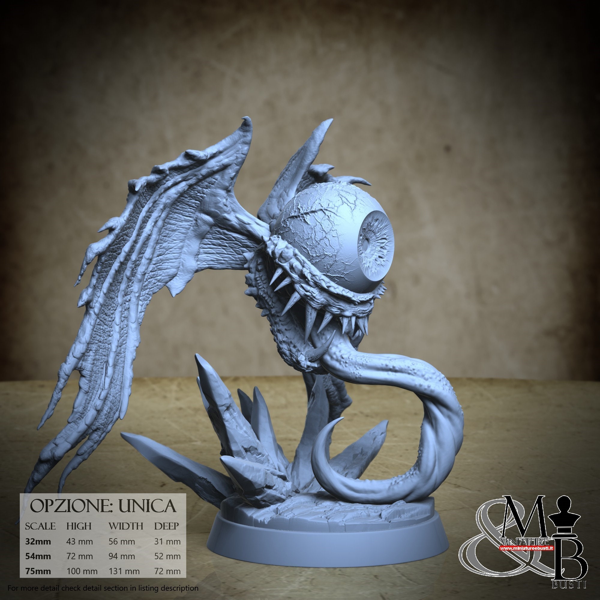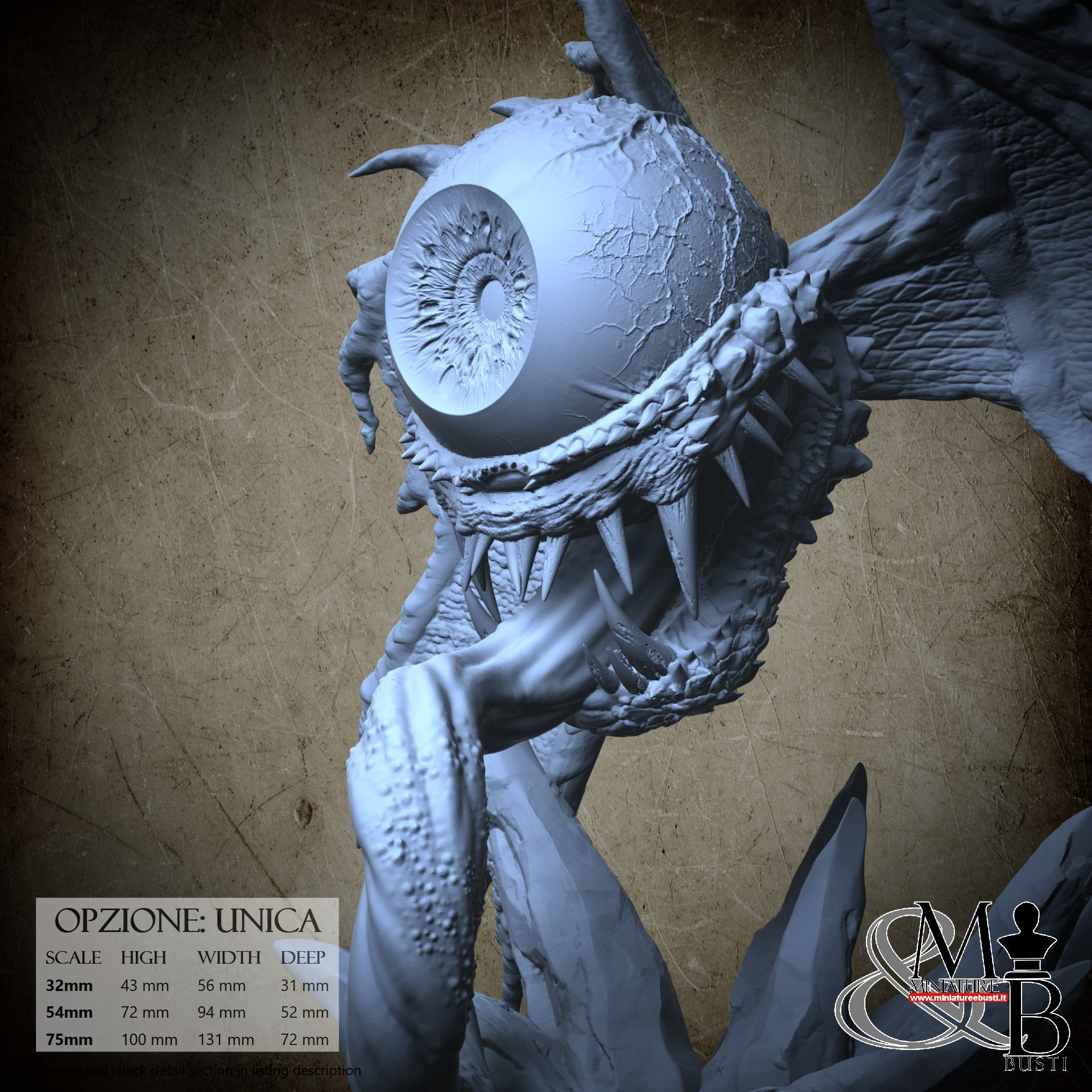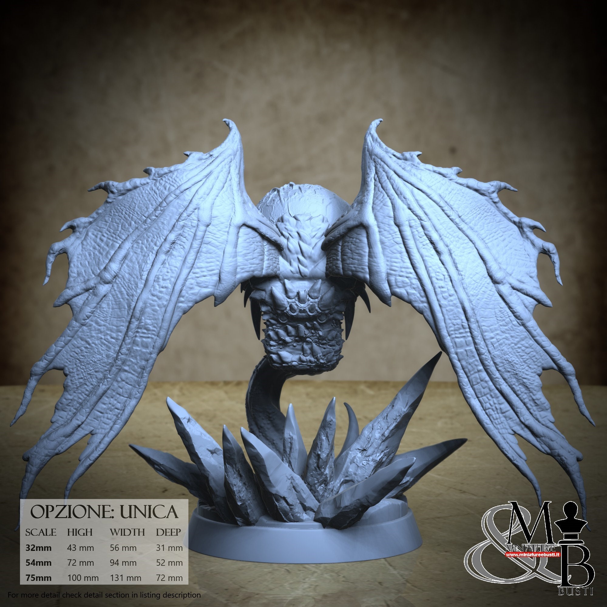 - Base (1 piece) in Resin: Height: 33 mm, Width: 57 mm, Depth: 52 mm
