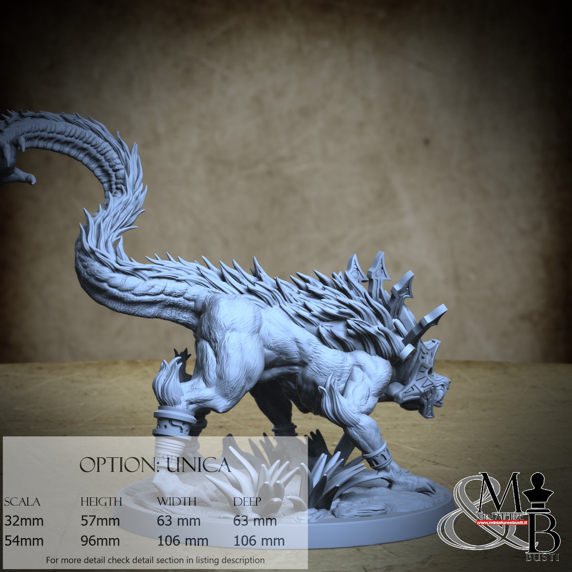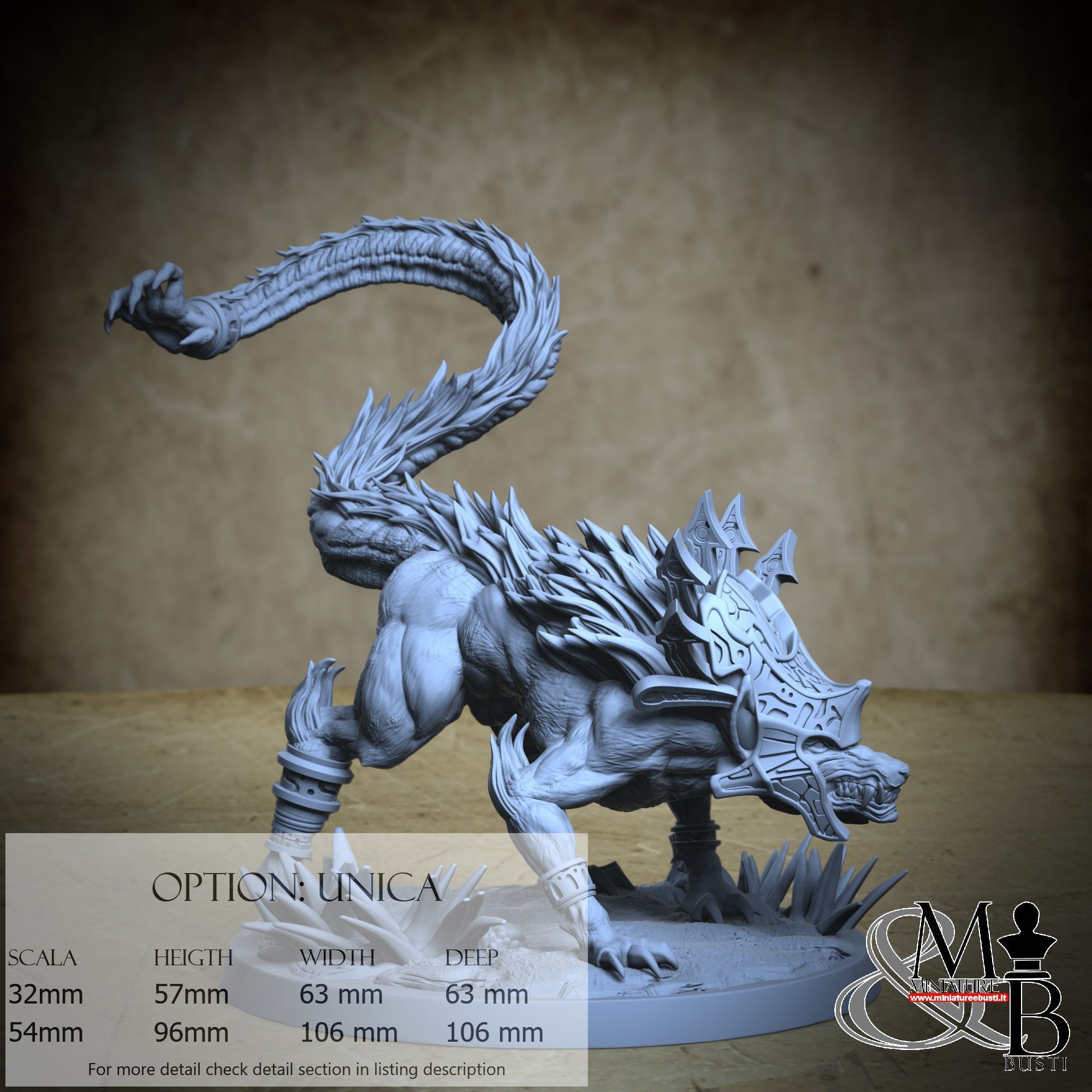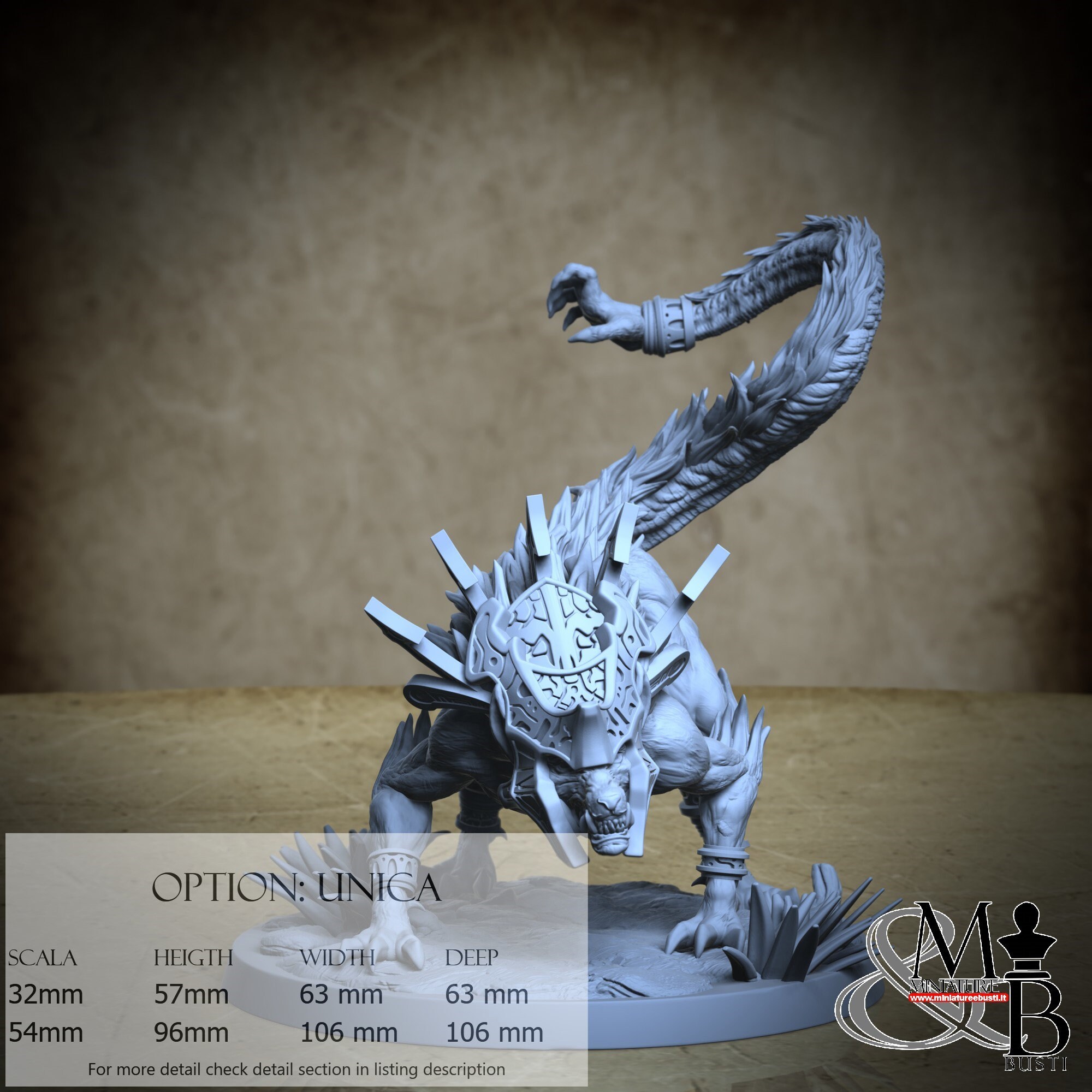 - Ahuizotl (1 piece) in Resin: Height: 89 mm, Width: 103 mm, Depth: 101 mm