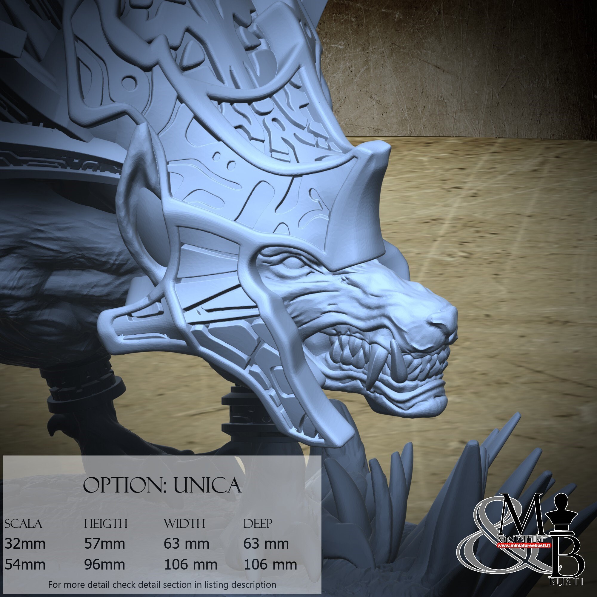 - Ahuizotl (1 piece) in Resin: Height: 53 mm, Width: 61 mm, Depth: 60 mm
