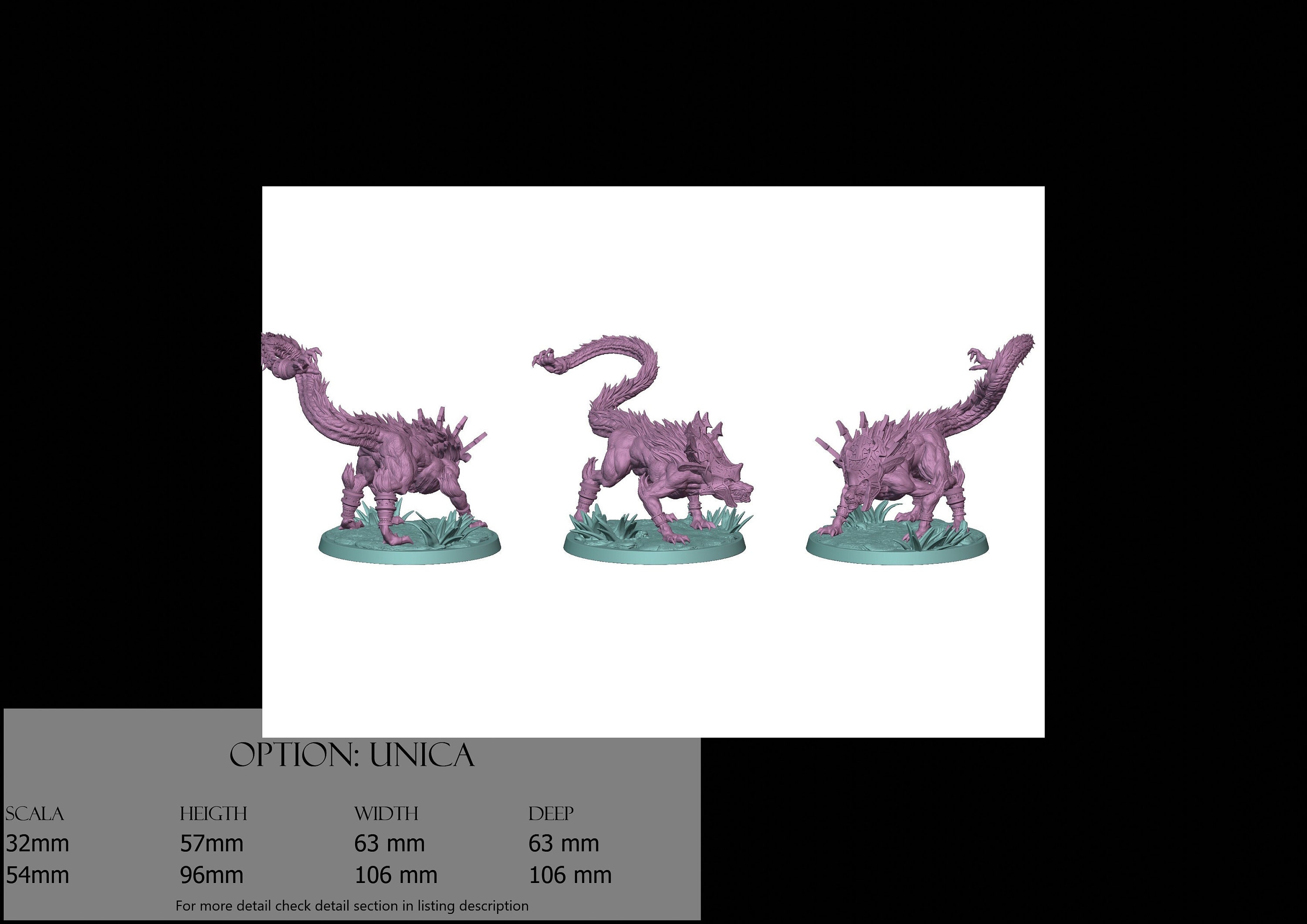 - Base (1 piece) in Resin: Height: 20 mm, Width: 86 mm, Depth: 82 mm
