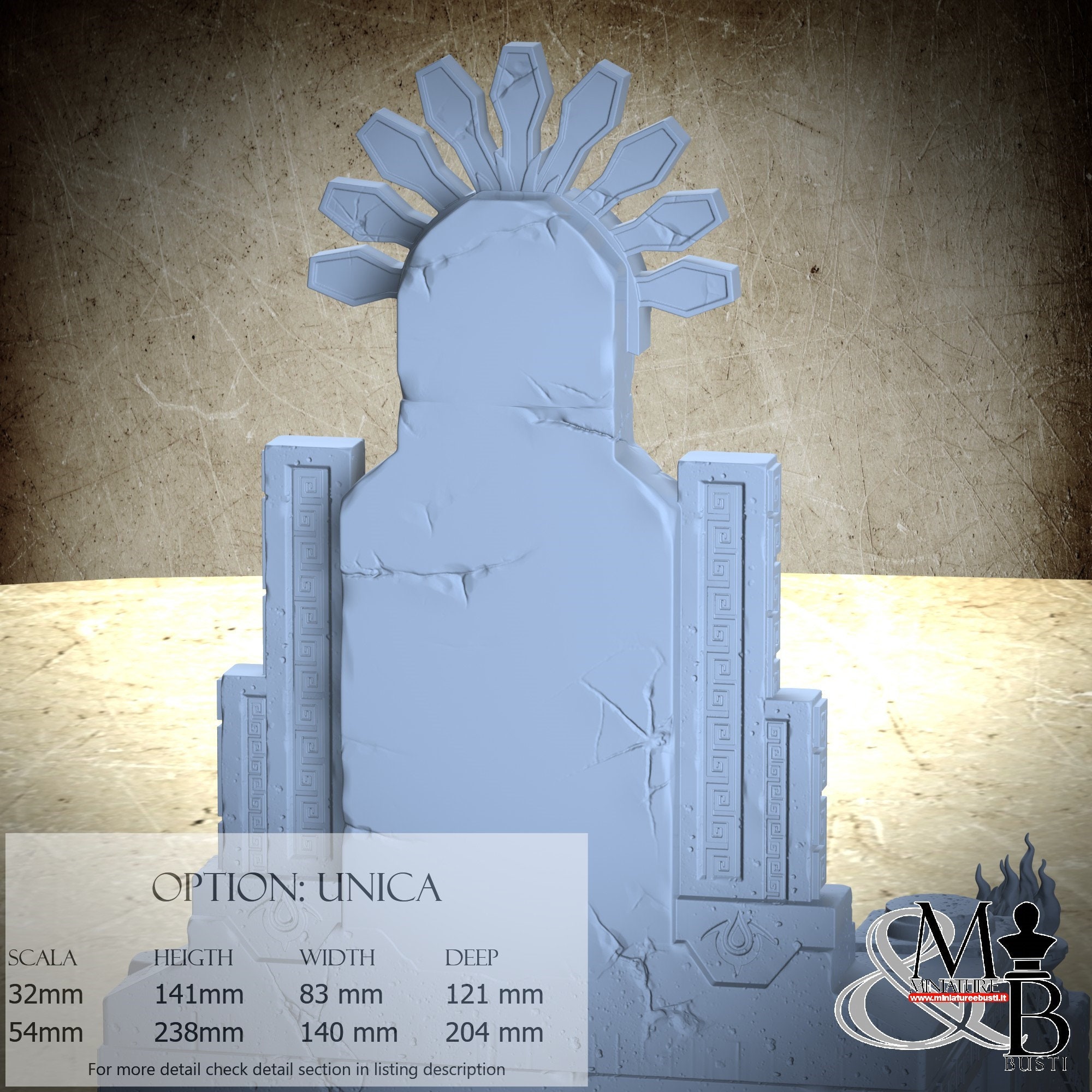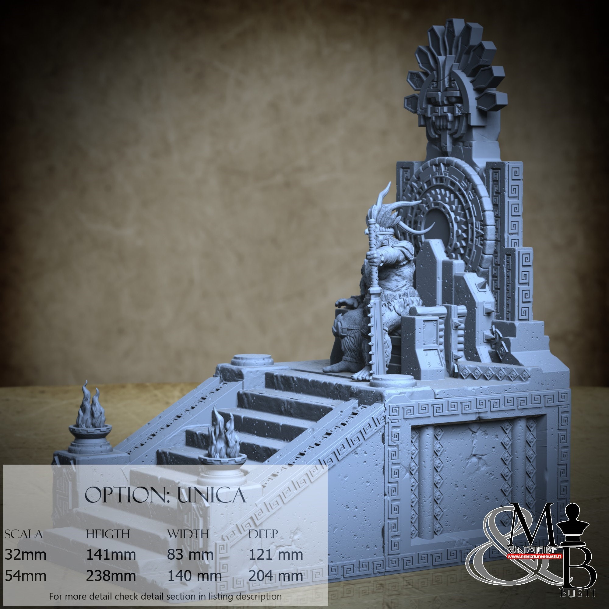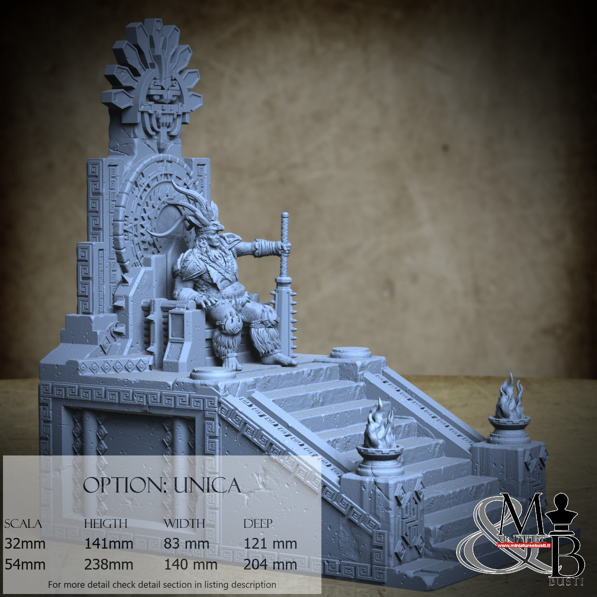 - Base and throne (5 pieces) in Resin: Height: 141 mm, Width: 83 mm, Depth: 121 mm